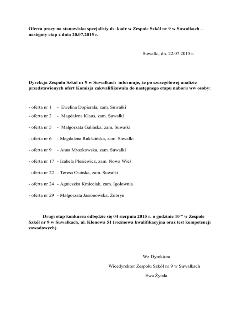 Oferta pracy na stanowisku specjalisty ds. kadr w Zespole Szkół nr 9