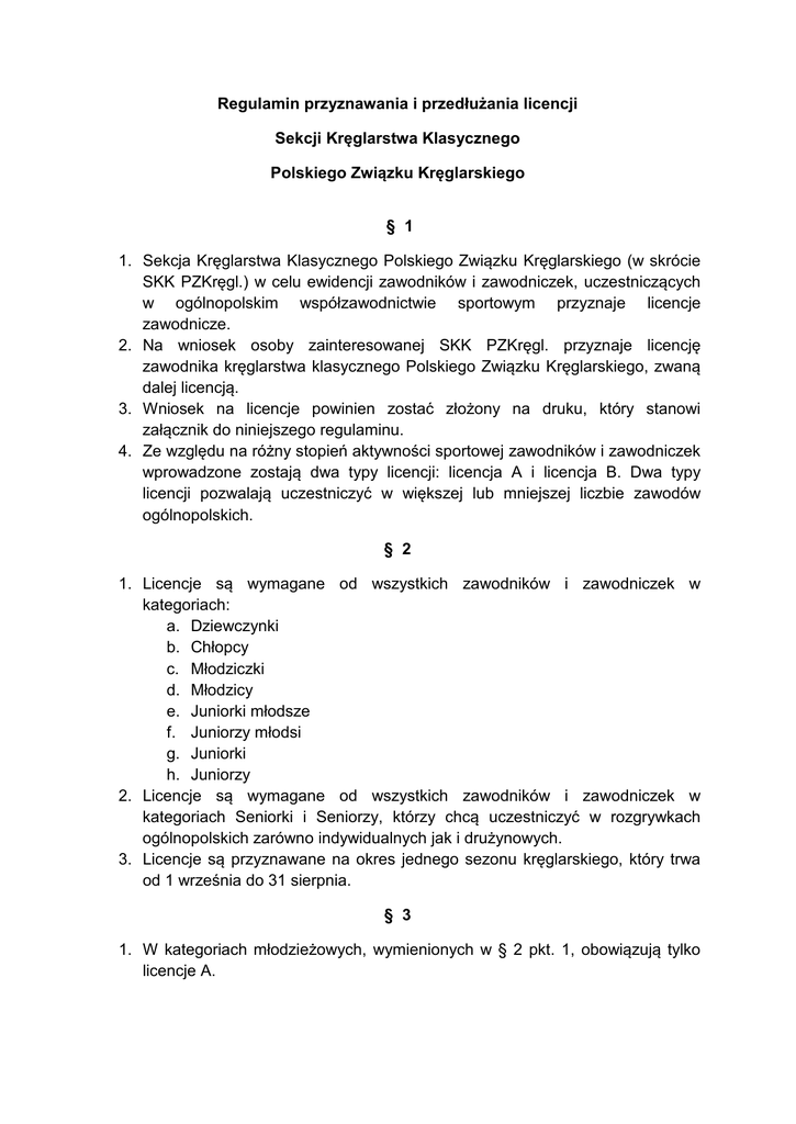 regulamin przyznawania licencji