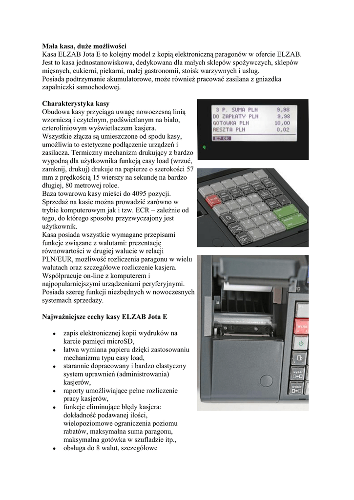 Mała kasa, duże możliwości Kasa ELZAB Jota E to kolejny model z