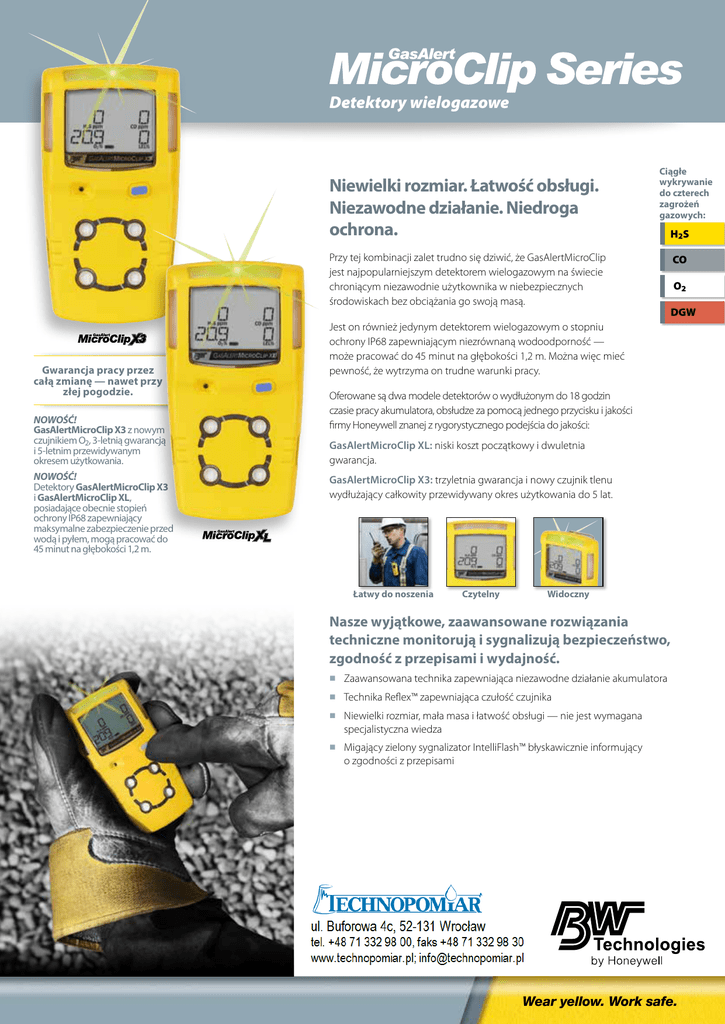 GasAlert MicroClip XL i X3 - Karta katalogowa