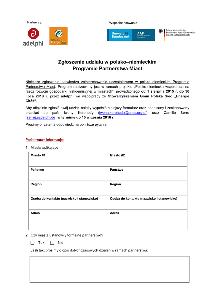 Formularz zgłoszeniowy do programu partnerstwa miast