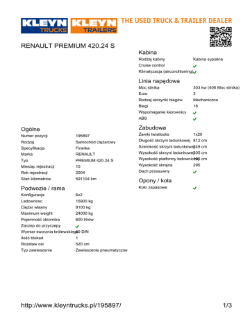 http://www.kleyntrucks.pl/195897/ 1/3 RENAULT PREMIUM 420.24 S