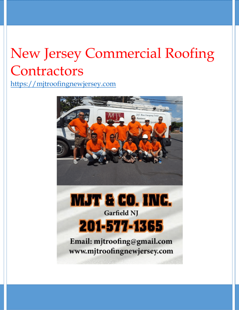 New Jersey Commercial Roofing Contractors https://mjtroofingnewjersey.com New Jersey Commercial Roofing Contractors There are many New Jersey roofers, but how do you find the right one? Our motor speaks for our workmanship from beginning to end. “Doing it right the first time” isn’t just about installing a roof. It includes the hard work that starts with the first time you call for help. It’s taking the time to talk to you about the roof and your expectations. From that moment, we perform a thorough inspection of the roof for free and provide an inspection report of our findings that includes photos. We are the leading commercial roofing contractors in New Jersey because of our dedication to finishing every single job perfectly. Our report will also include a scope of work on the correct solution to the problems the roof is having and competitive price. Roofers are just like any other industry, if you don’t find a reputable company, you’ll be stuck with someone that will cut corners. If a repair can provide a long-term solution, then our scope of work will clearly spell out what we’re doing and what your expectation should be. That can’t be said of all other roofers. Many times they’ll provide you with a scope of work that is convenient to them. Rather than taking the time to investigate the source of the problem, they’ll just say you need a new roof. Even when a new roof is warranted, they’ll choose the type of roof system based on what their men are capable of installing rather than what’s the best roof system for you and your building. That’s the difference between a sale and a solution. As a New Jersey roofing contractor, our experience tells us that all the advertising in the world can’t compare to a satisfied customer. Provide him with a good experience and a roof done right the first time and he’ll recommend you to his colleagues and if he has more work, call again. Click here for more information - https://mjtroofingnewjersey.com That’s our philosophy that we take very seriously. Because MJT Roofing is family owned and operated, don’t be surprised to see our owner on your roof making sure that the work promised is the work delivered. However, it not just about our management team, our men are employed by MJT and not mysterious workers with license plates from all over the United States or day laborers that don’t know the first thing about roofing. Whether it is service or a new installation, we’ll be there every step of the way from your first phone call to delivering the warranty and beyond. Doing it right the first time.