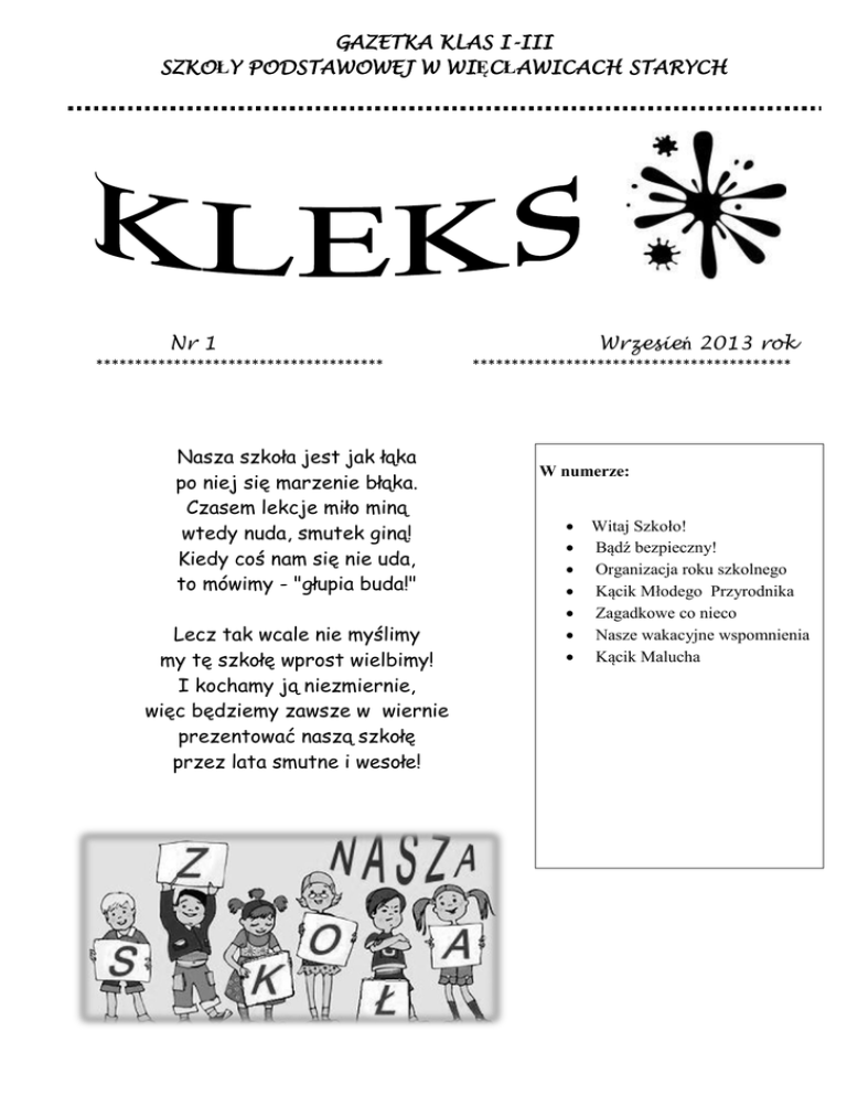 GAZETKA KLAS I-III SZKOŁY PODSTAWOWEJ W WIĘCŁAWICACH