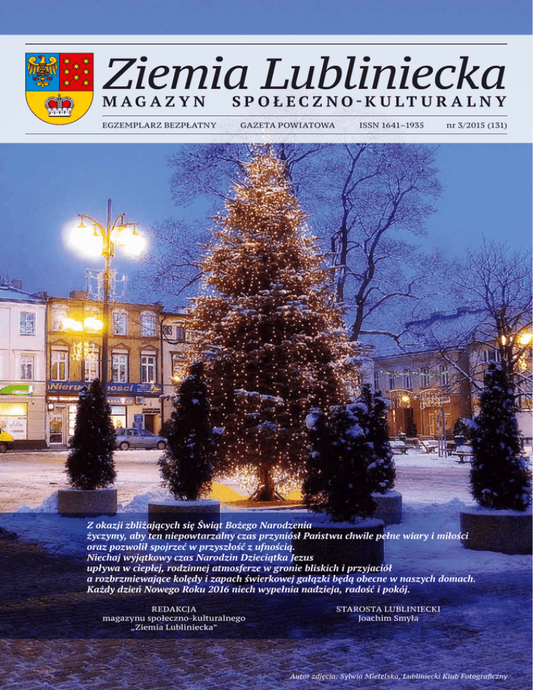Ziemia Lubliniecka m aga z y n EGZEMPLARZ BEZPŁATNY s p o ł e c z n o-k u lt u r a l n y GAZETA POWIATOWA ISSN 1641–1935 nr 3/2015 (131) Z okazji zbliżających się Świąt Bożego Narodzenia życzymy, aby ten niepowtarzalny czas przyniósł Państwu chwile pełne wiary i miłości oraz pozwolił spojrzeć w przyszłość z ufnością. Niechaj wyjątkowy czas Narodzin Dzieciątka Jezus upływa w ciepłej, rodzinnej atmosferze w gronie bliskich i przyjaciół a rozbrzmiewające kolędy i zapach świerkowej gałązki będą obecne w naszych domach. Każdy dzień Nowego Roku 2016 niech wypełnia nadzieja, radość i pokój. REDAKCJA magazynu społeczno-kulturalnego „Ziemia Lubliniecka” STAROSTA LUBLINIECKI Joachim Smyła Autor zdjęcia: Sylwia Mietelska, Lubliniecki Klub Fotograficzny ŚLADAMI HISTORII Dwory i pałace Ziemi Lublinieckiej Na przestrzeni dziejów ziemię naszą zamieszkiwali ludzie przynależący do różnych narodów. Władali nią różni właściciele zamieszkujący księstwa, królestwa, cesarstwa lub państwa. Wszyscy jednak, choć w różnych okresach, budowali i tworzyli jej piękno, bogactwo i kulturę. Na szczęście dla nas zachowały się dość liczne zabytki kultury świeckiej i sakralnej. Świadczą one o ludziach oraz kulturze materialnej i duchowej tej ziemi. Najbardziej widocznymi świadkami historii są kościoły, dwory i pałace, dzięki którym szczególnie chętnie wracamy do minionych czasów. Możemy poznać historię zabytkowych obiektów, podziwiać ich architekturę, ale także historię wielu rodzin i rodów. Poznać ich losy, a często zrozumieć ich motywacje i decyzje podejmowane w szerszym kontekście historycznym. Ze zrozumiałych względów najwięcej zachowało się wiadomości dotyczących rodów szlachty i arystokracji śląskiej. Na Ziemi Lublinieckiej zachowało się kilkanaście zabytkowych siedzib, których historię możemy poznać. Meandry i kaprysy historii sprawiły, że pozostały właśnie te, a inne zniknęły i historia o nich zapomniała. W niniejszym cyklu pragnę przybliżyć czytelnikom historię tych miejsc. Gmina Ciasna leży w północno-zachodniej części powiatu lublinieckiego, na wyżynie Woźnicko-Wieluńskiej, po wschodniej stronie tzw. Progu Woźnickiego na granicy borów Stobrawskich. Miejscowość Ciasna leży na północny-zachód od Lublińca w odległości ok. 10 km, przy drodze krajowej DK-11. Teren ten w średniowieczu należał do najsłabiej zaludnionych części północnego Śląska. Czas powstania wsi sięga przed 1500 rok. Przez kolejne wieki i lata należała ona do różnych śląskich rodów szlacheckich, m. in. Schick, Frankenberg, Koschitzki. Ostatnimi właścicielami Ciasnej była pochodząca z Branderburgii rodzina von Klitzing, po której pozostał do dzisiaj, wybudowany w latach 1904–1908, neoklasycystyczny pałac. Jednym z pierwszych osiadłych na Śląsku przodków rodu był Ludwik, którego bratanek Wilhelm w 1864 roku Herb rodziny von Klitzing kupił Sieraków na Górnym 2 Ziemia Lubliniecka • nr 3/2015 Śląsku, a następnie dokupił Ciasną, Jeżową i Molną. W latach 1873–1886 był starostą lublinieckim, a od 1886 roku, aż do śmierci w 1894 roku, był wybranym przez sejm prowincji starostą krajowym. Po śmierci ojca majątek w Ciasnej objął starszy syn Wilhelm, a młodszy Hans-Kacper osiadł w Sierakowie. Niebawem jednak część majątku przejął młodszy syn, który w 1889 r. ożenił się z pochodzącą z Wrocławie Meli Schoeller. Małżeństwo miało dwóch synów: Ditricha i Manfreda oraz córkę: Irmgardę. W 1910 r. zmarła najpierw córka, a później ojciec. Pierwsza wojna światowa srogo obeszła się z rodziną, zginęło wielu kuzynów, a w 1916 roku zmarł Menfred. Po śmierci męża i syna majątkiem zarządzała wdowa Meli von Klitzing. Na przełomie 1926/27 roku sprzedała ona majątek i wyjechała do syna Ditricha, który kupił na Dolnym Śląsku majątek Chróstnik. Po śmierci Ditricha spadkobiercą został 13-letni syn Hans-Kacper. Także II wojna światowa nie oszczędziła rodziny. Jednak w 1985 roku nazwisko stało się głośne, głównie w po tym jak Klaus-Olaf von Klitzing otrzymał Nagrodę Nobla w dziedzinie fizyki. W 1992 r. jedna z odkrytych planetoid otrzymała jego imię. W 1945 roku pałac przeszedł na własność państwa polskiego. Był użytkowany przez kilka instytucji, a od 1982 roku mieścił się w nim Dom Dziecka. W 2012 roku pałac, będący własnością Powiatu Lublinieckiego, został wystawiony na sprzedaż i czeka na następnych właścicieli. Bogusław Hrycyk Tablice pamiątkowe Ziemi Lublinieckiej (IV) Ś więtej Edycie Stein – jednej z patronek Europy oraz patronce Lublińca – mieszkańcy miasta poświęcili dwie tablice pamiątkowe. Zawieszono je na kamienicy będącej niegdyś własnością Salomona Couranta, dziadka Edyty. To tutaj spędzała ona z całą liczną rodziną wakacje, przyjeżdżała na rodzinne uroczystości. Dom dziadka był również jej rodzinnym domem. Nieprzypadkowo więc, w 2008 roku, w budynku otwarto Muzeum Pro Memoria Edith Stein upamiętniające postać męczenniczki. Gdy w 1999 roku Jan Paweł II ogłaszał ją, wraz ze św. Brygidą Szwedzką i św. Katarzyną ze Sieny, współpatronką Europy, tak pisał o jej życiu: „Edyta Stein – św. Teresa Benedykta od Krzyża – przenosi nas w zupełnie inny kontekst kulturowy, a mianowicie w samo centrum burzliwego stulecia, przypominając nadzieje, jakie z nim wiązano, ale ukazując też jego sprzeczności i klęski. Inaczej niż Brygida i Katarzyna, Edyta nie wywodziła się z rodziny chrześcijańskiej. Wszystko w niej było wyrazem udręki poszukiwania i trudu egzystencjalnego «pielgrzymowania». Nawet wówczas, gdy odnalazła już prawdę w pokoju życia kontemplacyjnego, musiała przeżyć do końca tajemnicę krzyża”. Ojciec Święty Jan Paweł II pisał również: „Ogłosić dzisiaj św. Edytę Stein współpatronką E
