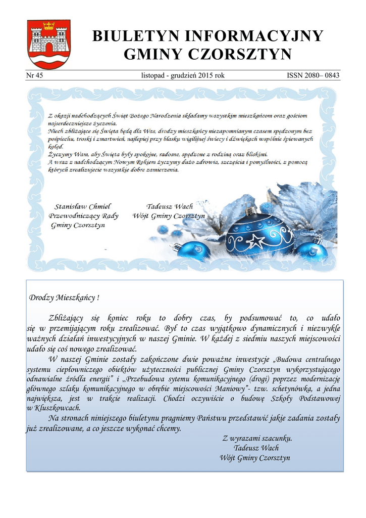 Biuletyn informacyjny Gminy Czorsztyn NR 45