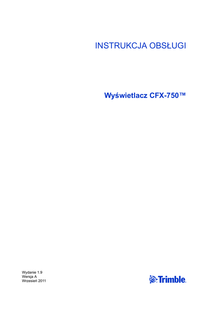 INSTRUKCJA OBSŁUGI Wyświetlacz CFX-750™ Wydanie 1.9 Wersja A Wrzesień 2011 F Agriculture Business Area Trimble Navigation Limited Trimble Agriculture Division 10355 Westmoor Drive Suite #100 Westminster, CO 80021 USA [email protected] www.trimble.com Legal Notices Copyright and Trademarks © 2010-2011, Trimble Navigation Limited. All rights reserved. Trimble, the Globe & Triangle logo, AgGPS, EZ-Boom, EZ-Guide, EZ-Steer, FmX, and Tru Count are trademarks of Trimble Navigation Limited, registered in the United States and in other countries. Autopilot, Autoseed, AutoSense, CFX-750, EZ-Office, FieldManager, Field-IQ, FreeForm, VRS, VRS Now, T2, Tru Application Control, TrueGuide, and TrueTracker are trademarks of Trimble Navigation Limited. GreenSeeker is a registered trademark of NTech Ltd. For STL support, the software uses the Moscow Center for SPARC Technology adaptation of the SGI Standard Template Library. Copyright © 1994 HewlettPackard Company, Copyright © 1996, 97 Silicon Graphics Computer Systems, Inc., Copyright © 1997 Moscow Center for SPARC Technology. Microsoft, Windows, ActiveX, Excel, and Internet Explorer are either registered trademarks or trademarks of Microsoft Corporation in the United States and/or other countries. Portions Copyright (c) 2009 Nokia Corporation and/or its subsidiary(-ies). Portions Copyright (c) 2003, Bitstream Inc. All other trademarks are the property of their respective owners. Release Notice This is the Wrzesie? 2011 release (Revision A) of the Instrukcja obsługi wy?wietlacza CFX-750. It applies to version 1.9 of the CFX-750 display software. Legal Notices The following limited warranties give you specific legal rights. You may have others, which vary from state/jurisdiction to state/jurisdiction. Product Limited Warranty Trimble warrants that this Trimble product and its internal components (the “Product”) shall be free from defects in materials and workmanship and will substantially conform to Trimble’s applicable published specifications for the Product for a period of two (2) years, starting from the earlier of (i) the date of installation, or (ii) six (6) months from the date of original Product shipment from Trimble. This warranty applies only to the Product if installed by Trimble or a dealer authorized by Trimble to perform Product installation services. Software Components All Product software components (sometimes hereinafter also referred to as “Software”) are licensed solely for use as an integral part of the Product and are not sold. Any software accompanied by a separate end user license agreement (“EULA”) shall be governed by the terms, conditions, restrictions and limited warranty terms of such EULA notwithstanding the preceding paragraph. During the limited warranty period you will be entitled to receive such Fixes to the Product software that Trimble releases and makes commercially available and for which it does not charge separately, subject to the procedures for delivery to purchasers of Trimble products generally. If you have purchased the Product from an authorized Trimble dealer rather than from Trimble directly, Trimble may, at its option, forward the software Fix to the Trimble dealer for final distribution to you. Minor Updates, Major Upgrades, new products, or substantially new software releases, as identified by Trimble, are expressly excluded from this update process and limited warranty. Receipt of software Fixes or other enhancements shall not serve to extend the limited warranty period. For purposes of this warranty the following definitions shall apply: (1) “Fix(es)” means an error correction or other update created to fix a previous software version that does not substantially conform to its Trimble specifications; (2) “Minor Update” occurs when enhancements are made to current features in a software program; and (3) “Major Upgrade” occurs when significant new features are added to software, or when a new product containing new features replaces the further development of a current product line. Trimble reserves the right to determine, in its sole discretion, what constitutes a Fix, Minor Update, or Major Upgrade. This Trimble software contains Qt 4.5 libraries licensed under the GNU Lesser General Public License (LGPL). The source is available from http://qt.nokia.com/downloads. A copy of the LGPL license is included in the appendices of this manual, and at ftp://ftp.trimble.com/pub/open_source/FmX. This software includes the DejaVu fonts, which are licensed under the Bitstream Vera license, terms available at http://dejavu-fonts.org/wiki/index.php?title=License and http://www.gnome.org/fonts/. 2 Instrukcja obsługi wyświetlacza CFX-750 GNU LESSER GENERAL PUBLIC LICENSE Version 2.1, February 1999 Copyright c 1991, 1999 Free Software Foundation, Inc. 51 Franklin Street, Fifth Floor, Boston, MA 02110-1301 USA Everyone is permitted to copy and distribute verbatim copies of this license document, but changing it is not allowed. [This is the first released version of the Lesser GPL. It also counts as the successor of the GNU Library Public License, version 2, hence the version number 2.1.] Preamble The licenses for most software are designed to take away your freedom to share and change it. By contrast, the GNU General Public Licenses are intended to guarantee your freedom to share and change free software-to make sure the software is free for all its users. This license, the Lesser General Public License, applies to some specially designated software packages-typically libraries-of the Free Software Foundation and other authors who decide to use it. You can use it too, but we suggest you first think carefully about whether this license or the ordinary General Public License is the better strategy to use in any particular case, based on the explanations below. When we speak of free software, we are referring to freedom of use, not price. Our General Public Licenses are designed to ma