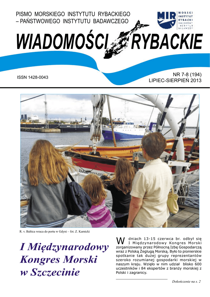 PISMO MORSKIEGO INSTYTUTU RYBACKIEGO – PAŃSTWOWEGO INSTYTUTU BADAWCZEGO WIADOMOŚCI RYBACKIE NR 7-8 (194) LIPIEC-SIERPIEŃ 2013 ISSN 1428-0043 R. v. Baltica wraca do portu w Gdyni – fot. Z. Karnicki I Międzynarodowy Kongres Morski w Szczecinie W dniach 13-15 czerwca br. odbył się I M i ę d z y n ar o d o w y Ko n g r es M o r s k i zorganizowany przez Północną Izbę Gospodarczą wraz z Polską Żeglugą Morską. Było to pionierskie spotkanie tak dużej grupy reprezentantów szeroko rozumianej gospodarki morskiej w naszym kraju. Wzięło w nim udział blisko 600 uczestników i 84 ekspertów z branży morskiej z Polski i zagranicy. Dokończenie na s. 2 I Międzynarodowy Kongres Morski w Szczecinie PISMO MORSKIEGO INSTYTUTU RYBACKIEGO – PAŃSTWOWEGO INSTYTUTU BADAWCZEGO Dokończenie ze s. 1 NR 7-8 (195) • LIPIEC-SIERPIEŃ 2013 SPIS TREŚCI I Międzynarodowy Kongres Morski w Szczecinie .................. 1 Konferencja naukowa: „Stan Zasobów i Rybołówstwa Bałtyku” .............................................................................. 5 Wyniki gospodarki rybnej w 2012 r. ........................................ 8 Zmiany personalne w dyrekcji MIR-PIB ................................. 13 R. v. Baltica – 20 lat w służbie nauki ....................................... 15 Polskie połowy komercyjne szprota bałtyckiego w latach 2011-2012 ich specyfikacja i uwarunkowania .................... 16 Polskie połowy rekreacyjne łososi metodą trollingową w Bałtyku ............................................................................ 21 Nowoczesny system zwiedzania już w Akwarium Gdyńskim 26 Projekt ARTWEI: Działania dotyczące wzmocnienia środowiskowej integralności wód przejściowych ................ 27 Projekt ODEMM: Warianty ekosystemowego zarządzania zasobami środowiska morskiego ........................................ 27 Z żałobnej karty – Witold Ludwik KLAWE ............................ 28 Nowe nabytki Biblioteki Naukowej MIR-PIB ........................ 29 Ciekawa konferencja w MIR ................................................... 30 Kutry z Wielkiej Wsi ............................................................... 30 Morski Instytut Rybacki – Państwowy Instytut Badawczy 81-332 Gdynia, ul. Kołłątaja 1 fax (058) 73-56-110, tel. (058) 73-56-232 E-mail: [email protected] www.mir.gdynia.pl; www.wiadomosci.rybackie.pl Przewodniczący Zespołu Redakcyjnego: Tomasz Linkowski Redaktor naczelny: Zbigniew Karnicki Sekretarz redakcji: Iwona Fey Skład i łamanie: Lucyna Jachimowska Konto bankowe Wydawcy: BANK MILLENNIUM S.A. ul. Stanisława Żaryna 2A, 02-593 WARSZAWA ODDZIAŁ 214 IBAN: PL 45 11602202 00000000 61917907 2 Kongres Morski Główne cele Kongresu to: – określenie stanu gospodarki morskiej w Polsce, jako kraju członkowskiego Unii Europejskiej, – opracowanie wytycznych dla doktryny polskiego państwa morskiego, – integracja gospodarki morskiej krajów regionu Morza Bałtyckiego. Gospodarka morska, w potocznym znaczeniu, obejmuje przede wszystkim transport morski, żeglugę morską, obszary morskie oraz porty i przystanie morskie, ale również, co nie wszyscy biorą pod uwagę, rybołówstwo morskie, racjonalne korzystanie z żywych zasobów morza, przetwórstwo ryb oraz ochronę środowiska morskiego. Właśnie te, tak ważne tematy, włączając w nie morską energetykę wiatrową, znalazły się w Bloku III Kongresu, zatytułowanym: „Wykorzystanie zasobów morza”, za którego organizację odpowiedzialna była dr hab. inż. Beata Więcaszek z Zachodniopomorskiego Uniwersytetu Technologicznego w Szczecinie (Wydział Nauk o Żywności i Rybactwa). Morska energetyka wiatrowa budzi wiele oczekiwań, ale też kontrowersji. O uwarunkowaniach prawnych, wymogach środowiska i finansowaniu energetyki wiatrowej w Polsce mówił Andrzej Jagusiewicz – Główny Inspektor Ochrony Środowiska. Zwrócił on uwagę, że w świetle zobowiązań Polski w stosunku do HELCOM, w tym m.in. ograniczenia emisji siarki do atmosfery oraz zakładanego przez UE wzrostu udziału energii odnawialnej do 20 procent w 2020 roku, istnieje konieczność rozwijania morskiej energetyki wiatrowej. 20 farm ma zatwierdzone lokalizacje, ale nadal istnieją biurokratyczne przeszkody legislacyjne. W trakcie dyskusji zwrócono uwagę, że w kontekście eutrofizacji Bałtyku i roli Polski w zrzucie biogenów, należy zrewidować dotychczasową metodologię HELCOM oblicza- nia polskich zrzutów biogenów, bowiem obecne kalkulacje ładunku azotu, wykonywane dla Odry na podstawie pomiarów w punkcie oddalonym o 100 km od ujścia są nieprawidłowe i powodują zawyżenie ładunku obciążającego polski bilans azotu. Entuzjastycznie o morskiej energii odnawialnej mówiła Dagmara Żygowska, Wiceprezes Polskiego Stowarzyszenia Energii Wiatrowej. Pokreśliła, że Morskie Elektrownie Wiatrowe są istotną szansą dla Polski, bo zaktywizują rejony nadmorskie i do 2020 roku nie będą generować kosztów dla budżetu, a przynosić zyski. Według raportu przygotowanego dla Polskiego Stowarzyszenia Energetyki Wiatrowej, istnieją trzy scenariusze, z których najlepszy zakłada osiągnięcie 6 GW mocy, przy uzyskaniu 32 000 miejsc pracy i 74 mld zł wpływów dla budżetu. O ewentualnych negatywnych skutkach wprowadzania morskiej energetyki wiatrowej dla rybołówstwa mówił Eugeniusz Andrulewicz z MIR-PIB przedstawiając referat przygotowany wspólnie z Piotrem Gajewskim z Instytutu Morskiego. Wskazał on na, nie tylko ograniczenie przestrzeni rybackiej, ale także wydłużenie drogi do łowisk, co będzie miało wymierne negatywne skutki ekonomiczne. Winny one być rekompensowane rybołówstwu i innym użytkownikom. Niezmiernie ciekawy referat pt. „Kręte ścieżki ochrony Bałtyku” przedstawił Marcin Węsławski z Instytutu Oceanologii PAN. Referat został przygotowany wspólnie z Tomaszem Linkowskim z MIR-PIB. Pokazał on, jak niektóre decyzje ochrony przyrody