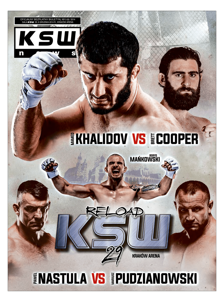 OFICJALNY BEZPŁATNY BIULETYN, NR 3 (8) / 2014 GALA K S W 29, 6 grudnia 2014 R., Kraków Arena n e w s n e w s 2 GALA KSW 29 6 grudnia 2014R. Kraków Arena www.kswmma.com SAM DO PARTERU NIE SCHODZĘ. JAK PRZECIWNICY CHCĄ IŚĆ DO PARTERU, TO IDĘ Z NIMI MAMED KHALIDOV REKORD KSW W KRAKOWIE? 18 TYSIĘCY WIDZÓW W KRAKÓW ARENIE BĘDZIE ŚLEDZIĆ NA ŻYWO ZMAGANIA NAJLEPSZYCH ZAWODNIKÓW MMA W EUROPIE PODCZAS OSTATNIEJ GALI KSW W TYM ROKU – KSW 29: RELOAD W MIKOŁAJKOWĄ SOBOTĘ 6 GRUDNIA. K NIE MNIEJ CIEKAWE WALKI W karcie walk również pojedynki: w wadze średniej Piotr Strus (9-3-1, 4 KO) kontra niebezpieczny Jay Silva (9-9, 6 KO, 2 Sub), a w wadze półciężkiej Chorwat Goran Reljic (134, 5 KO, 5 Sub) i reprezentant Berserkers Team Tomasz Narkun (9-1, 9 Sub). ibice w hali oraz przed telewizorami po raz kolejny w walce wieczoru będą mogli podziwiać najniebezpieczniejszego zawodnika MMA w Europie Mameda Khalidova (29-4-2, 11 KO, 17 Sub). Tym razem olsztynianinowi przyjdzie się zmierzyć z bardzo niebezpiecznym Amerykaninem, dysponującym nokautującym ciosem, Brettem Cooperem (20-10, 13 KO, 2 Sub). DOŚWIADCZENI ZAWODNICY Główną część gali otworzą dwa elektryzujące starcia w lekkich wagach: pojedynek jednego z największych talentów polskiego MMA niepokonanego Mateusza Gamrota (7-0, 2 KO, 2 Sub) z doświadczonym Łukaszem Chlewickim (12-3-1, 5 KO, 1 Sub) oraz starcie Artura Sowińskiego (14-7, 6 KO, 6 Sub) z Vaso Bakocevicem (16-71, 5 KO, 6 Sub). EMOCJI NIE ZABRAKNIE Również tego wieczoru kibice obejrzą długo oczekiwaną walkę legend kategorii ciężkiej Mariusza Pudzianowskiego (7-3, 2 KO, 2 Sub) i Pawła Nastuli (5-5, 3 KO, 2 Sub). Emocji dopełnią Mistrz KSW w wadze półśredniej i wschodząca gwiazda polskiego MMA Borys Mańkowski (15-5-1, 3 KO, 5 Sub) w starciu z Davidem Zawadą (9-1, 6 KO, 2 Sub). TEGO WIECZORU KIBICE OBEJRZĄ DŁUGO OCZEKIWANĄ WALKĘ LEGEND KATEGORII CIĘŻKIEJ MARIUSZA PUDZIANOWSKIEGO (7-3, 2 KO, 2 SUB) I PAWŁA NASTULI (5-5, 3 KO, 2 SUB) TRANSMISJE ON-LINE Tradycyjnie już całe wydarzenie będzie można oglądać na oficjalnej platfor- mie internetowej KSWTV. com. W internetowej relacji będzie można śledzić wszystkie pojedynki, dwa karty wstępnej oraz siedem karty głównej. Dodatkowo wszyscy subskrybenci KSW TV będą mogli zaglądać za kulisy gali, do szatni zawodników oraz naszych przepięknych ring girls. PRZEWIJAJ GALĘ W TRAKCIE JEJ TRWANIA, WYBIERZ JĘZYK KOMENTARZA Abonenci KSW TV będą mogli dowolnie zmieniać jakość transmisji oraz język komentarza z polskiego na angielski, którym już po raz kolejny zajmą się Will Vanders i Tomasz Marciniak. Tylko na KSW TV można przewijać galę w trakcie jej trwania oraz wszyscy mają dostęp VOD do nagrania gali przez następne 72 godziny. Zamów transmisję KSW 29 na www.kswtv.com. LUBIĘ WALCZYĆ Z MOCNYMI RYWALAMI ROZMAWIAMY Z BRETTEM COOPEREM - PRZECIWNIKIEM MAMEDA KHALIDOVA NA KSW 29. Wielu zawodników nie chce podjąć wyzwania jakim jest pojedynek z Mamedem Khalidovem. Ty zdecydowałeś się na walkę z najlepszym polskim zawodnikiem, dlaczego? BC: - Lubię walczyć z mocnymi rywalami. Nie widzę sensu startowania w tym sporcie, jeśli nie walczył bym z najlepszymi. Mamed to zawodnik klasy światowej. Jest atletyczny, wybuchowy, ma znakomite poddania i uderzenia. Jest też bardzo nieszablonowy. Jeśli jednak miałbym wskazać jedną z jego wad to jest Jak się czujesz przed walką z Mamedem na KSW 29? BC: - Czuję się świetnie, nie mogę się doczekać, że pokażę co potrafię przed polskimi fanami. To będzie moja pierwsza wizyta w Polsce, znam wasz kraj ze znakomitych zawodników i dobrej wódki. Czy słyszałeś wcześniej o KSW, co sądzisz o naszych galach? BC: - Tak oczywiście, że słyszałem, bo jestem fanem tego sportu. KSW organizuje świetne gale i jest jedną z najlepszych organizacji na świecie. MIEJSCE OTWARCIE BRAM KRAKÓW ARENA 6.12, GODZ. 17.30 TRANSMISJA PPV W TV: 19.30 CYFROWY POLSAT, UPC ORAZ NA INNYCH PLATFORMACH CYFROWYCH MAMED TO ZAWODNIK KLASY ŚWIATOWEJ. JEST ATLETYCZNY, WYBUCHOWY, MA ZNAKOMITE PODDANIA I UDERZENIA TRANSMISJA PPV W INTERNECIE: OD 19.30 KSWTV.COM ORAZ IPLA.TV n e w WWW.KSW.PRESSPEKT.PL s Biuletyn wydaje WYDAWNICTWO PRESSPEKT Bytom, ul. Łużycka 12, tel.: 32 720-97-07 www.presspekt.pl , [email protected] nią kondycja, co będę chciał wykorzystać, walcząc z nim w późniejszych rundach. KSW 29: Reload odbędzie się w największej hali widowiskowej w Polsce – Kraków Arenie, a na widownie zasiądzie prawie 18 tys. ludzi, z czego większość będzie przeciwko tobie. Jak się z tym czujesz? BC: - To nie ma dla mnie żadnego znaczenie. Wiem, że zdobędę fanów moim występem, a ich krzyki będą dla mnie tylko większą motywacją. Mamed do zobaczenia w klatce! DZIAŁ HANDLOWY TOMASZ KOKOSZKA, TEL. 536-999-459 DZIAŁ GRAFICZNY LESZEK WALIGÓRA, TEL. 530-57-97-57 DZIAŁ DYSTRYBUCJI KLAUDIUSZ ŚWIERKOT, TEL. 536-999-465 WSZELKIE PRAWA ZASTRZEŻONE. Redakcja nie odpowiada za treść reklam KRAKÓW CH CH CH CH Tesco, ul. Wielicka 259, tel. kom. 699 117 866 Zakopianka, ul. Zakopiańska 62, tel. kom. 699 405 237 Krokus, ul. Bora Komorowskiego 37, tel. kom. 699 405 465 M1, Al. Pokoju 67, tel. kom. 699 405 486 n e w s 4 GALA KSW 29 6 grudnia 2014R. Kraków Arena www.kswmma.com JAY, PRZECHODZĄC PRZEZ KRATY TEGO OKTAGONU, POCZUJESZ SIĘ JAK W PIEKLE, A NIE JAK W SWOIM DRUGIM DOMU PIOTR STRUS GŁÓWNE POJEDYNKI GALI vs vs vs NA PONIŻSZEJ STRONIE PREZENTUJEMY PAŃSTWU KARTY NAJWIĘKSZYCH WALK NAJBLIŻSZEJ GALI KSW. WALKA WIECZORU (WAGA ŚREDNIA, 84 KG): MAMED KHALIDOV VS BRETT COOPER MAMED KHALIDOV WYGRANE 11 KO/TKO 17 PODDANIE 1 DECYZJA PRZEGRANE 1 KO/TKO 2 PODDANIE 1 DECYZJA WZROST: 183 CM, WAGA: 84 KG REKORD MMA: 29-4-2 REKORD KSW: 14-0-2 KRAJ: POLSKA KLUB: ARRACHION MMA OLSZTYN / KSW TEAM N ajleps z y z a w o d n i k MMA w Polsce w Krakowie po raz kolejny zmier z y się z rywal e m z e Stanów Zjednoczonych. O swoje trz
