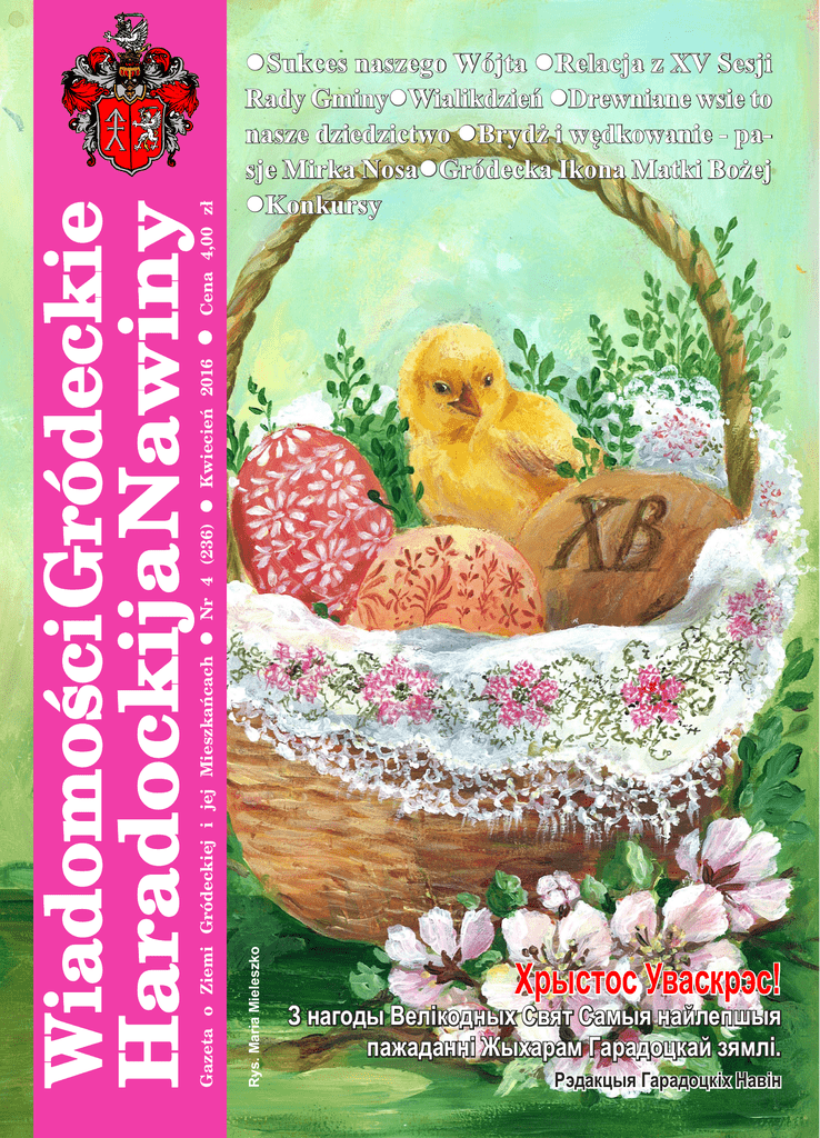 Rys. Maria Mieleszko Gazeta o Ziemi Gródeckiej i jej Mieszkańcach l Nr 4 (236) l Kwiecień 2016 l Cena 4,00 zł Wiadomości Gródeckie Haradockija Nawiny lSukces naszego Wójta lRelacja z XV Sesji Rady GminylWialikdzień lDrewniane wsie to nasze dziedzictwo lBrydż i wędkowanie - pasje Mirka NosalGródecka Ikona Matki Bożej lKonkursy Хрыстос Уваскрэс! З нагоды Вeлікодных Свят Самыя найлепшыя пажаданні Жыхарам Гарадоцкай зямлі. Рэдакцыя Гарадоцкіх Навін 2 Sukces naszego Wójta Miło nam donieść, że nasz Wójt Wiesław Kulesza jako jedyny reprezentant województwa podlaskiego został zakwalifikowany do grona 10 finalistów w dorocznym ogólnopolskim konkursie na „Wójta roku”, który ma na celu wyłonienie wójta z największymi osiągnięciami w pracy na rzecz swojej gminy. Organizatorem konkursu jest Redakcja Audycji Rolnych Programu 1 Telewizji Polskiej pod patronatem Ministra Rolnictwa i Rozwoju Wsi. Należało przesłać formularz zgłoszeniowy wypełniony pod względem osiągnięć na różnych płaszczyznach działania, listy referencyjne. Do tego etapu kandydatów zgłoszonych przez gminy wybierała kapituła złożona z przedstawicieli organizatora i patronów. Następny etap jest w naszych rękach. Od 21 marca do 4 kwietnia trwać będzie prezentacja sylwetek finalistów na antenie Programu 1 TVP. W tych dniach będzie można głosować na kandydatów poprzez wysyłanie SMSów. Zwycięzca głosowania otrzyma tytuł „Wójta roku 2015” i pamiątkową statuetkę. Pozostali finaliści zostaną uhonorowani równorzędnymi dyplomami. Uroczystość ogłoszenia wyników odbędzie się w sobotę 23 kwietnia 2016 r. w gmachu Telewizji Polskiej w Warszawie. Lista finalistów (wybranych spośród ponad dwustu kandydatów z całej Polski): Ryszard Kalkowski – gmina Szemud, woj. pomorskie, Antoni Karlak – gmina Jabłonka, woj. małopolskie, Jerzy Lewi Kiedrowski – gmina Tuchomie, woj. pomorskie, Marcin Kiwior – gmina Skrzyszów, woj. małopolskie, Sławomir Kopacz – gmina Bieliny, woj. świętokrzyskie, Wiesław Kulesza – gmina Gródek, woj. podlaskie, Iwona Agnieszka Łebek – gmina Długołęka, woj. dolnośląskie, Andrzej Puławski – gmina Murów, woj. opolskie, Tomasz Sadłoń – gmina Psary, woj. śląskie, Tadeusz Zakrzewski – gmina Chynów, woj. mazowieckie Zapraszamy do głosowania do 4 kwietnia 2016 r. KWIECIEŃ 2016 Fot. Marcin Litwin Wiadomości Gródeckie – Haradockija Nawiny Fot.Radosław Kulesza Fot.Magdalena Zawadzka WCZESNA WIOSNA W GRÓDKU SMS na numer: 7150 o treści:6 Od Redaktor Naczelnej Jeszcze o jajkach na wiosnę Za trzy tygodnie – na „Wierbnicu” – prawosławni mieszkańcy naszej gminy zostaną „wypalmowani” w niedzielny poranek i przywitani tradycyjną rymowanką: „Wierba bje, nie zabje, za tydzień Wielkidzień...”. Czy w Waszych domach kultywuje się jeszcze tę tradycję? Gdy podczas rozmowy na temat dawnych prawosławnych wielkanocnych zwyczajów zapytałam panie z klubu „Eurydyki”, po co to „bicie”, usłyszałam krótką odpowiedź – na szczęście i zdrowie. Rozmawiałyśmy w GCK o tych tra- dycjach w naszej gminie, one rozentuzjazmowane robiły decoupagowe jajka, którymi udekorują świąteczny stół. W Wielką Sobotę tradycyjnie w „cybulniku” pofarbują jajka do „święconki”. Temat jajek przewija się w naszej gazecie już od poprzedniego numeru, jako że w marcu świętowaliśmy katolicką Wielkanoc. Miesiąc temu o kolorowych jajkach i pasji do kur opowiadał pan Aleksy Łakiel. W ostatnim numerze „Tygodnika Powszechnego” (z 27 marca) jest świetny wywiad z Leonem Tarasewiczem o kurach o intrygującym tytule „ Hoduję modelki”. Na jedno z bardzo wielu pytań Kaliny Błażejowskiej: „To prawda, że im mniejsze jajko, tym smaczniejsze?”, odpowiada: „ Każde jajko ma w sobie tyle samo wartości odżywczych. Większe jest bardziej rozwodnione. Proszę spróbować strusiego – żadna atrakcja. Co innego przepiórcze. I czym mniejsze kury, tym smaczniejsze jajka. Ale znowu zależy, co kura je. Najlepiej, gdy chodzi luzem i skubie, co chce – wtedy smak jajka jest bogaty. A ta cała propaganda o zielononóż- kach – że ich jajka mają mniej cholesterolu… Cholesterolu jest tyle, ile potrzeba, żeby powstało życie. Kiedy spróbowano zmniejszyć jego poziom, z jajek nie wykluwały się kurczaki. […]”. Tak to właśnie wyjaśnił Leon Tarasewicz. A m.in. o zaletach jedzenia jajek mówi w krótkim wywiadzie Anna Kuczkin – dietetyczka, którą gościliśmy z okazji 8 marca w gródeckim GCK. A więc – jajka są zdrowe, jedzmy je! Jeśli ktoś ma ochotę na nieco bardziej wykwintne z nich dania niż jajecznica i gotowane na twardo, zapraszamy do kolejnego odcinka „W ogrodzie i kuchni”. Pod koniec marca wracałam z pracy na piechotę. Na ul. Szkolnej usłyszałam dochodzące z nieba odgłosy. Kilkanaście kluczy dzikich gęsi leciało na wschód. Nigdy nie widziałam aż tak rozkrzyczanego nieba. Zatrzymałam się i zapatrzyłam na tę cykliczną moc odwiecznych powrotów. Za kilka dni pewnie rozsiądą się bociany w swoich gniazdach. Potem pojawią się w nich jajka. Wiosna. O niej w jednym z artykułów mówią leśnicy z 3 naszego Nadleśnictwa Waliły. Jak najwięcej takich zatrzymań w biegu życzę Wam i sobie. Właśnie w kwietniu przypada nasz mały jubileusz. Od roku mam zaszczyt być redaktor naczelną WG-HN. Razem z Radkiem Kuleszą, który zajmuje się składem gazety oraz członkami redakcji staramy się, żebyście co miesiąc mieli lokalną gazetę, traktującą o naszych gródeckich małych i wielkich sprawach. Mam nadzieję, że ciekawą, ale ocena oczywiście należy do Was. To też czas dużego jubileuszu. W 2011 r. gazeta świętowała swoje XV-lecie. W tym roku wypada XX – tka. Z tej okazji m.in. ogłaszamy konkurs dziennikarski „Zwyczajne (