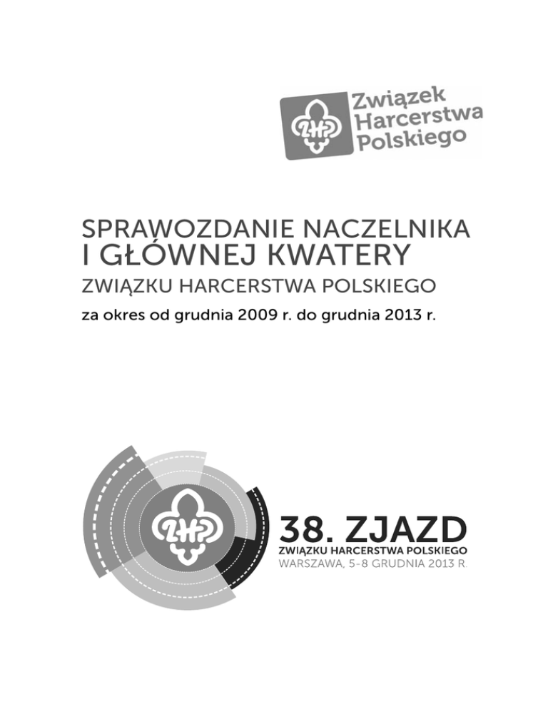 SPRAWOZDANIE NACZELNIKA I GŁÓWNEJ KWATERY ZWIĄZKU HARCERSTWA POLSKIEGO za okres od grudnia 2009 r. do grudnia 2013 r. 38 ZJAZD ZWIĄZKU HARCERSTWA POLSKIEGO Spis treści List Naczelnika ZHP...................................................................... 3 Działalność Głównej Kwatery ZHP ..................................................... 7 Kalendarium Głównej Kwatery ZHP. Wybrane zadania ............................ 25 Program................................................................................... 65 Kształcenie praca z kadrą ............................................................ 95 Wizerunek .............................................................................. 111 Współpraca zagraniczna ............................................................. 129 Kontakty zewnętrzne ................................................................. 153 Zarządzanie organizacją ............................................................. 161 Finanse ................................................................................. 173 Realizacja uchwał zjazdów i strategii ZHP ........................................ 205 Aneksy .................................................................................. 215 Aneks 1. Posiedzenia Głównej Kwatery ZHP 2009–2013 .................................. 216 Aneks 2. Wykaz uchwał Głównej Kwatery ZHP uchwalonych w latach 2010-2013............................................................................. 239 Aneks 3. Wykaz decyzji Naczelnika ZHP i Skarbnika ZHP wydanych w latach 2010-2013 ................................................................ 255 Aneks 4. Tematyka zbiórek komendantów chorągwi ...................................... 260 Aneks 5. Raport komendanta Jubileuszowego Zlotu Stulecia Harcerstwa: „Kraków 2010” ........................................................ 266 Aneks 6. Sprawozdanie z działalności Muzeum Harcerstwa w latach 2010-2013 ..... 287 Aneks 7. Miesięcznik instruktorów „Czuwaj” .............................................. 297 Aneks 9. Grupa ZHP ............................................................................ 300 Główna Kwatera Związku Harcerstwa Polskiego 00−491 Warszawa, ul. M. Konopnickiej 6 tel. 0 22 33 90 600 www.zhp.pl 3 Marz o rzeczach wielkich, to ci pozwoli zrobić kilka małych. Jules Renard DRUHNY I DRUHOWIE! W sto trzecim roku istnienia harcerstwa przychodzi nam dzisiaj podsumować ostatnie cztery lata pracy Związku Harcerstwa Polskiego. Z tej bliskiej perspektywy spoglądamy na działania i rezultaty działań podejmowanych przeze mnie i moją Główną Kwaterę od chwili wyboru na XXXVI Zjeździe ZHP w grudniu 2009 r. do dzisiaj. Jakie były te cztery lata? Jakie cele sobie postawiliśmy? Które udało się zrealizować? Jakie harcerstwo zostawiamy? Kiedy w 2010 roku na Rynku Głównym w Krakowie prawie 10 000 zuchów, harcerzy i instruktorów wspólnie uczestniczyło w otwarciu Jubileuszowego Zlotu Stulecia Harcerstwa, a premier rządu RP zadawał pytanie, na które my – instruktorzy doskonale znamy odpowiedź: „O ile piękniejszy byłby świat, gdybyśmy wszyscy byli harcerzami?” - byłam dumna z tego, że jestem naczelnikiem tej organizacji. Tych momentów, kiedy wszyscy byliśmy dumni z przynależności do ZHP, było wiele. W znamiennym roku 2010 cała harcerska Polska w życie wcielała słowa Przyrzeczenia – służyliśmy Bogu, naszemu krajowi i bliźnim – zarówno w trakcie wiosennych powodzi, jak i w dniach po katastrofie smoleńskiej. Pokazaliśmy, że nie tylko czuwamy, ale też gotowi jesteśmy pełnić służbę. W tych miesiącach budowaliśmy wielki kapitał zaufania społecznego, który dzisiaj zaczyna procentować. Na krakowskich Błoniach świętowaliśmy stulecie harcerstwa. Wtedy właśnie w Głównej Kwaterze ZHP mogliśmy postawić sobie cele, o których wcześniej długo rozmawialiśmy. Chcieliśmy, aby ZHP miało stabilną sytuację finansową. Chcieliśmy, by organizacja rozwijała się liczebnie, by jak najwięcej młodych ludzi mogło przeżyć harcerską przygodę i wspólnie ze swoimi rówieśnikami tworzyć lepszy świat. Chcieliśmy dobrego programu i stałej pracy z kadrą. Przez minione cztery lata budowaliśmy stabilizację finansową i gospodarczą szczebla centralnego ZHP, regulowaliśmy zobowiązania, układaliśmy się z naszymi wierzycielami, ustalaliśmy status prawny majątku i nieruchomości ZHP, rozdzielaliśmy działalność wychowawczą od gospodarczej. Opracowanie i wdrożenie planu naprawczego finansów szczebla centralnego ZHP pozwoliło rozpocząć długoterminowy proces wychodzenia z zapaści ekonomicznej. Dzięki wprowadzeniu surowej dyscypliny budżetowej Związek przestał się zadłużać, a my mogliśmy więcej energii włożyć w „robienie harcerstwa”. Za każdym razem, kiedy musieliśmy decydować o tym, czy z trudem pozyskane środki przeznaczyć 4 na spłatę zadłużenia, czy na szerszą działalność programową i kształceniową – nie były to łatwe wybory. W roku 2012 do wszystkich drużynowych wysłaliśmy nowo opracowane podręczniki metodyczne dla każdej metodyki. W taki sposób rozumiem wypełnianie postanowień Strategii ZHP na lata 2012-2017, która postawiła drużynowego w centrum działań organizacji. Takiego wsparcia chciałabym dawać jeszcze więcej… Temu zadaniu służy też nowo powołany Wydział Inspiracji i Poradnictwa. Silnie akcentując potrzebę podnoszenia jakości programu i pracy z kadrą, nie baliśmy się marzyć i czerpać inspiracji ze skautingu. Mając na uwadze, że naszej organizacji potrzeba celu, który zjednoczy wszystkie środowiska i harcerskie komendy oraz rozpali wyobraźnię do działania, wspólnie z przewodniczącym ZHP Druhem hm. Adamem Massalskim w obecności Pierwszej Damy RP Pani Anny Komorowskiej w Szwecji w sierpniu 2011 r. zadeklarowaliśmy, że Związek Harcerstwa Polskiego ubiega się o o