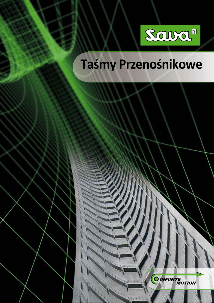 Taśmy Przenośnikowe SPIS TREŚCI TAŚMY PRZENOŚNIKOWE WIELOPRZEKŁADKOWE ......................................................................... 4 TAŚMY PRZENOŚNIKOWE TRUDNOZAPALNE .................................................................................. 6 TAŚMY PRZENOŚNIKOWE OLEJO I TŁUSZCZOODPORNE. ................................................................ 7 TAŚMY PRZENOŚNIKOWE TEMPERATUROODPORNE ........................................................................ 8 TAŚMY PRZENOŚNIKOWE ‘RIPCHECK’ .............................................................................................. 9 TAŚMY PRZENOŚNIKOWE ELEWATOROWE ............................................................................................10 TAŚMY PRZENOŚNIKOWE ŚLIZGOWE. ............................................................................................. 11 TAŚMY PRZENOŚNIKOWE SUPERGRIP, FINEGRIP I NOPPEN ........................................................... 12 TAŚMY PRZENOŚNIKOWE RUROWE. ................................................................................................ 14 TAŚMY PRZENOŚNIKOWE PROGOWE „CHEVRON” ........................................................................... 15 typ A (16 mm) i AH (25 mm). .............................................................................................. 18 typ F (32 mm) ..................................................................................................................... 20 typ L ( 8mm) ....................................................................................................................... 21 PŁYTY GUMOWE ................................................................................................................................. 22 PROFILE GUMOWE ............................................................................................................................. 25 ISO 9001 BUREAU VERITAS Certification ISO 14001 BUREAU VERITAS Certification ISO 18001 BUREAU VERITAS Certification 2 TAŚMY PRZENOŚNIKOWE SAVA Kontynuując 90-letnie doświadczenie spółka macierzysta SAVATECH w Kranj dostarcza szeroką gamę wysokiej jakości przemysłowych wyrobów gumowych. Wyróżnia nas innowacyjność oraz umiejętność dostosowania się do potrzeb klienta. Nasze produkty znajdują zastosowanie m.in. w przemyśle budowlanym, poligraficznym, motoryzacyjnym, rolniczym jak również w ochronie środowiska oraz akcjach ratowniczych. Od 1948 roku taśmy przenośnikowe są produkowane w fabryce w Kranj w Słowenii, natomiast wszystkie wyroby są sprzedawane na całym świecie. Taśmy przenośnikowe to produkt łączący doświadczenie oraz specjalistyczną wiedzę naszych inżynierów i technologów, dzięki czemu są one ciągle doskonalone. Nasz program produkcyjny obejmuje taśmy ogólnego zastosowania, taśmy elewatorowe jak również szeroką gamę taśm progowych typu chevron. Produkty te są cenione za ich jakość oraz długą żywotność. Kiedy poszukujesz właściwej taśmy przenośnikowej, a nie wiesz, którą dobrać do swojego przenośnika zadzwoń do nas. Dzięki zdobytemu doświadczeniu i posiadanej wiedzy z chęcią udzielimy pomocy. ISO 9001 BUREAU VERITAS Certification ISO 14001 BUREAU VERITAS Certification ISO 18001 BUREAU VERITAS Certification 3 TAŚMY PRZENOŚNIKOWE WIELOPRZEKŁADKOWE Konstrukcja wieloprzekładkowych taśm produkcji SAVA umożliwia zastosowanie ich we wszystkich dziedzinach transportu materiałów. Dzięki specjalnej konstrukcji rdzenia typu EP, taśma określana jest mianem „długodystansowca” ze względu na niezwykłą trwałość eksploatacyjną w skrajnie różnych warunkach użytkowania w przemyśle, w tym także przy dużych obciążeniach. Budowa taśmy wieloprzekładkowej: • • • • zmodyfikowany wieloprzekładkowy rdzeń typu EP ( poliestrowy wątek + poliamidowa osnowa) wykonana ze specjalnej mieszanki gumowej warstwa pośrednia o doskonałych własnościach adhezyjnych, wysokie parametry odporności na ścieranie ( ścieralność < 130mm3) dla okładek typu Y, inne typy przygotowujemy na zamówienie RODZAJ OKŁADEK Y X W WH Do transportu niezwykle twardego materiału Do transportowania wyjątkowo szorstkich materiałów < 55 mm3 < 35 mm3 62 +/- 5 Sh°A -50°C … +60°C 62 +/- 5 Sh°A -50°C … +60°C ZASTOSOWANIE Odporne na ścieranie Do transportu okładki do ogólnego niezwykle twardego, stosowania trącego materiału (piasku kwarcowego, suchego gipsu syntetycznego, stłuczki szklanej itp.) Odporne na ścieranie okładki do wyjątkowo szorstkich materiałów ŚCIERALNOŚĆ < 130 mm3 < 120 mm3 < 90 mm3 Do transportu bardzo twardego materiału, o ostrych, nieregularnych krawędziach oraz przy często powtarzanych procedurach mechanicznego czyszczenia taśmy < 90 mm3 TWARDOŚĆ 60 +/- 5 Sh°A -50°C … +60°C 65 +/- 5 Sh°A -50°C … +60°C 62 +/- 5 Sh°A -50°C … +60°C 75 +/- 5 Sh°A -50°C … +60°C TEMPERATURA OTOCZENIA WL SUPRA WL Taśmy wieloprzekładkowe używane są w następujących segmentach przemysłu: • • • • • • • • • ISO 9001 BUREAU VERITAS Certification ISO 14001 BUREAU VERITAS Certification ISO 18001 BUREAU VERITAS Certification • kopalniach piachu, żwiru kamienia, zakładach przetwórstwa mineralnego, cementowniach, betoniarniach, elektrowniach, elektrociepłowniach, ciepłowniach, zakładach utylizacyjnych, drogownictwie, maszynach drogowych, recycling’u, kompostowniach, przetwórstwie drewna i tartakach, rolnictwie, cukrowniach, kopalniach soli, przetwórstwie ziemniaków i produkcji skrobi, oczyszczalniach ścieków. 4 TAŚMY PRZENOŚNIKOWE WIELORZEKŁADKOWE ZALECANE MINIMALNE ŚREDNICE BĘBNÓW A - bęben napędowy (mm) B - bęben zwrotny (mm) C - bębny odchylające (mm) Zakres max. dopuszczalnych obciążeń Liczba przekładek WYTRZYMAŁOŚĆ TKANINY EP EP 125 65-100 % 30-60 % poniżej 30 % EP 160 EP 200 EP 250 - EP 315 EP 400 - EP 500 A B C 