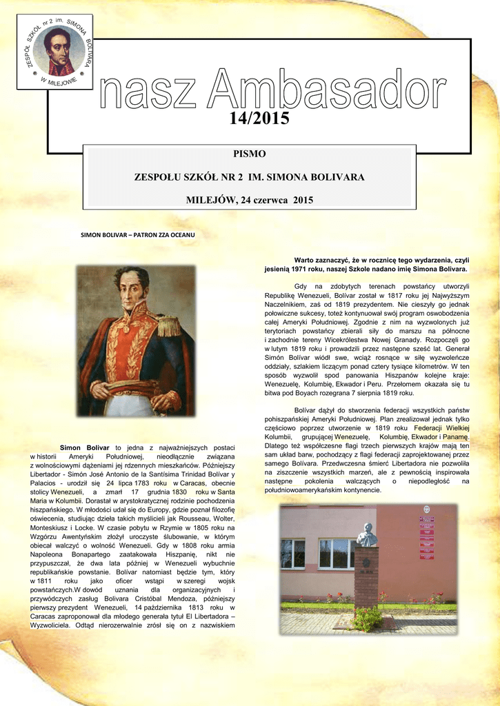 Nasz Ambasador - Zespół Szkół Nr 2 im. Simona Bolivara w Milejowie