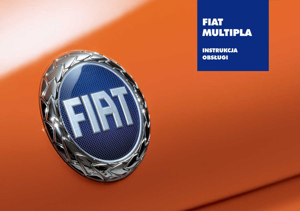 Szanowny Kliencie! Dzi´kujemy za preferowanie Fiata i gratulujemy wyboru Fiata Multipla. OpracowaliÊmy tà instrukcj´, abyÊcie zapoznali si´ z ka˝dym szczegó∏em Fiata Multipla i u˝ywali go w prawid∏owy sposób. Zapraszamy do przeczytania jej z uwagà przed rozpocz´ciem jazdy po raz pierwszy tym samochodem. Przedstawione sà w niej informacje, zalecenia i uwagi wa˝ne dla prawid∏owego u˝ywania samochodu, które pomogà w pe∏ni wykorzystaç mo˝liwoÊci techniczne Fiata Multipla. P rzypominamy ponadto o obowiàzku Fiata do „totalnego recyklingu“; gdy Wasz Fiat Multipla b´dzie musia∏ byç z∏omowany, Fiat umo˝liwi poddanie zu˝ytego samochodu prawid∏owej obróbce ekologicznej i recyklingowi jego materia∏ów (zgodnie z obowiàzujàcymi przepisami legislacyjnymi). Dla Êrodowiska naturalnego korzyÊç jest podwójna: nic si´ nie traci i nie rozprasza, a jednoczeÊnie zmniejsza si´ zu˝ycie surowców. Zalecamy uwa˝nie przeczytaç ostrze˝enia i wskazania mieszczàce si´ na dole stron, poprzedzone symbolami: bezpieczeƒstwo osób; integralnoÊç samochodu; ochrona Êrodowiska. W za∏àczonej Ksià˝ce gwarancyjnej podane sà ponadto us∏ugi jakie Fiat oferuje swoim Klientom. ❒ Potwierdzenie wykonania przeglàdów okresowych i wymian oleju. ❒ Zakres us∏ug dodatkowych zarezerwowanych dla Klientów Fiata. ˚yczymy mi∏ej lektury i szcz´Êliwej podró˝y! W tej Instrukcji obs∏ugi opisane sà wszystkie wersje Fiata Multipla, dlatego nale˝y wziàç pod uwag´ tylko informacje odnoszàce si´ do wyposa˝enia, silnika i wersji przez Paƒstwa nabytej. WARTO WIEDZIEå! TANKOWANIE K Silniki benzynowe: nape∏niaç zbiornik paliwa wy∏àcznie benzynà bezo∏owiowà o liczbie oktanowej (LO) nie mniejszej od 95. Silniki diesel: nape∏niaç zbiornik paliwa wy∏àcznie olejem nap´dowym odpowiadajàcym specyfikacji europejskiej EN590. URUCHAMIANIE SILNIKA Silniki benzynowe z manualnà skrzynià biegów: upewniç si´ czy dêwignia hamulca postojowego jest zaciàgni´ta; ustawiç dêwigni´ zmiany biegów w pozycji luz; wcisnàç do oporu peda∏ sprz´g∏a, nie naciskajàc peda∏u przyspieszenia, a nast´pnie obróciç kluczyk w wy∏àczniku zap∏onu w pozycj´ AVV i zwolniç go natychmiast jak tylko silnik si´ uruchomi. Silniki diesel: upewniç si´ czy dêwignia hamulca postojowego jest zaciàgni´ta; ustawiç dêwigni´ zmiany biegów w pozycji luz; wcisnàç do oporu peda∏ sprz´g∏a, nie naciskajàc peda∏u przyspieszenia; obróciç kluczyk w wy∏àczniku zap∏onu w po∏o˝enie MAR i zaczekaç, a˝ zgaÊnie lampka sygnalizacyjna m, obróciç kluczyk w pozycj´ AVV i zwolniç go natychmiast jak tylko silnik si´ uruchomi. PARKOWANIE NA ¸ATWO PALNYCH MATERIA¸ACH Podczas normalnego dzia∏ania katalizator osiàga bardzo wysokà temperatur´. Dlatego nie nale˝y parkowaç samochodu na ∏atwo palnym pod∏o˝u (sucha trawa, liÊcie, ig∏y sosny i inne): niebezpieczeƒstwo po˝aru. OCHRONA ÂRODOWISKA Samochód wyposa˝ony jest w system, który przeprowadza ciàg∏à diagnostyk´ elementów odpowiedzialnych za emisj´ zanieczyszczeƒ gwarantujàc najlepszà ochron´ Êrodowisku. U URZÑDZENIA ELEKTRYCZNE Je˝eli mamy zamiar zainstalowaç akcesoria dodatkowe wymagajàce zasilania elektrycznego w sposób ciàg∏y (co mo˝e spowodowaç stopniowe roz∏adowanie akumulatora), nale˝y zwróciç si´ do ASO Fiata, która okreÊli kompletny pobór pràdu i zweryfikuje instalacj´ elektrycznà w samochodzie czy wytrzyma wymagane obcià˝enie elektryczne. KARTA KODOWA „Code card“ Przechowywaç jà w bezpiecznym miejscu, nie w samochodzie. Wskazane jest aby mieç przy sobie odnotowany kod elektroniczny podany na karcie kodowej „Code card“. B´dzie konieczny przy ewentualnym awaryjnym uruchomieniu silnika. PRZEGLÑDY OKRESOWE Przeprowadzanie przeglàdów okresowych samochodu w wymaganych terminach zapewnia zachowanie bezpieczeƒstwa, ochron´ Êrodowisku i niskie koszty eksploatacji. W INSTRUKCJI OBS¸UGI SAMOCHODU... ... podano informacje, zalecenia i ostrze˝enia wa˝ne dla prawid∏owej obs∏ugi, bezpieczeƒstwa jazdy i dla utrzymania w dobrym stanie z up∏ywem czasu Waszego samochodu. Tak˝e zwróciç szczególnà uwag´ na symbole " (bezpieczeƒstwo osób), # (ochrona Êrodowiska), ! (integralnoÊç samochodu). DESKA ROZDZIELCZA I WY¸ÑCZNIKI LAMPKI SYGNALIZACYJNE URUCHAMIANIE W RAZIE AWARII I KOMUNIKATY SILNIKA I JAZDA BEZPIECZE¡STWO OBS¸UGA SAMOCHODU DANE TECHNICZNE SPIS ALFABETYCZNY 4 D E S K A R O Z D Z I E L C Z A I W Y ¸ ÑC Z N I K I DESKA ROZDZIELCZA .................................................. SYMBOLIKA..................................................................... SYSTEM FIAT CODE ....................................................... KLUCZYKI ....................................................................... ALARM ELEKTRONICZNY............................................. WY¸ÑCZNIK ZAP¸ONU ................................................ ZESTAW WSKAèNIKÓW................................................ WSKAèNIKI ..................................................................... WYÂWIETLACZ WIELOFUNKCYJNY REKONFIGUROWANY ................................................... SIEDZENIA ..................................................................... ZAG¸ÓWKI ..................................................................... KIEROWNICA ................................................................. LUSTERKA WSTECZNE ................................................ OGRZEWANIE/KLIMATYZACJA .................................... OGRZEWANIE I WENTYLACJA ..................................... KLIMATYZACJA MANUALNA ........................................ KLIMATYZACJA AUTOMATYCZNA ............................. ÂWIAT¸A ZEWN¢TRZNE............................................... CZYSZCZENIE SZYB ..................................................... LAMPA SUFITOWA ......................................