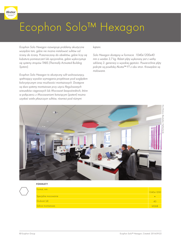 Niniejsza publikacja przedstawia produkty z asortymentu Ecophon oraz innych dostawców. Podane specyfikacje pełnią funkcję ogólnych wytycznych ułatwiających dobór najodpowiedniejszych produktów do ...