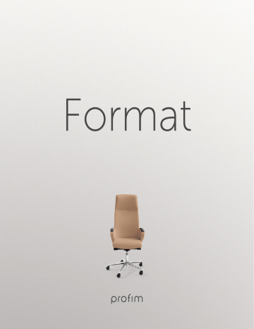 Format 3 FORMAT 10SL CHROM O 4 FORMAT 20E CHROM FORMAT 20F CHROM FORMAT 20F CHROM 5 Dostępne 2 rodzaje nakładek na podłokietniki: tapicerowane lub drewniane. 2 types of armpads are available: upholstered or wooden. FORMAT 10SL CHROM O 6 FORMAT 10SL CHROM O FORMAT 10SL CHROM H 7 Regulowane na wysokość podparcie odcinka lędźwiowego kręgosłupa. Lumbar support adjustment. 8 Mechanizm Synchro. Regulacja synchronicznego odchylania oparcia i siedziska. Regulacja głębokości siedziska. Synchro mechanism. Seat depth adjustment. Regulacja wysokości siedziska. Regulacja siły sprężystości odchylania oparcia i siedziska. Seat height adjustment. Tilt force adjustment. 9 FORMAT 10SL 700 660 430 - 480 190 480 - 570 *410 - 500 500 O, H 200 1210 - 1300 760 490 700 (ø 730) FORMAT 20SL 660 700 430 - 480 480 - 570 190 O, H 200 500 *410 - 500 940 - 1030 470 490 700 (ø 730) FORMAT 20E 700 660 450 490 190 470 - 600 *400 - 530 500 O, H 200 890 - 1020 470 *Seat height is measured according to PN EN 1335-1 norm (with seat burden). Wymiary mają charakter orientacyjny i mogą się różnić w zależności od wybranej konfiguracji produktu. Metoda pomiaru produktów dostępna do pobrania pod linkiem: www.profim.pl/Metoda_pomiaru_produktow.pdf The measurements are approximate and can differ depending on the product configuration. Measuring methodology is available at this link: www.profim.eu/Measuring_methodology.pdf 700 (ø 730) 10 *Wysokość siedziska zmierzona zgodnie z normą PN EN 1335-1 (z obciążeniem). PRZY ZAMÓWIENIU PROSIMY STOSOWAĆ SYMBOLE WEDŁUG KODU: PLEASE USE CODES AT ORDER Format 0 KOLOR TAPICERKI UPHOLSTERY COLOUR RODZAJ OPARCIA TYPE OF BACKREST PODŁOKIETNIKI ARMRESTS oparcie wysokie high backrest 1 oparcie niskie low backrest 2 TYP MECHANIZMU TYPE OF MECHANISM regulacja wysokości siedziska, regulacja synchronicznego odchylania oparcia / siedziska z możliwością dostosowania sprężystości odchylenia oparcia do ciężaru siedzącego, z dodatkową funkcją wysuwu siedziska SL adjustment of seat height, seat / backrest tilt movement synchronising mechanism with the possibility to adjust the resilience of the backrest tilt to the weight of the sitting person, with option of sliding seat O* nakładka tapicerowana upholstered pad H** nakładka drewniana wooden pad * nakładka tapicerowana: modele tapicerowane Skórą, Softline, Eco - nakładka w kolorze tapicerki fotela, modele tapicerowane tkaniną - zawsze czarny Softline * upholstered armpad: models with leather, Softline or Eco upholstery - armpad upholstered with the same colour, models with fabric upholstery - black Softline on the pad ** Nakładka drewniana H - wg standardowych kolorów (H5, H6, H7, H8, H11, H12). ** Wooden pad - standard colours of lacquer (H5, H6, H7, H8, H11, H12). regulacja wysokości siedziska, (tylko dla wersji z niskim oparciem) E seat height adjustment, (version with low backrest only) KOLOR STELAŻA FRAME COLOUR baza 4-ramienna (tylko dla wersji z niskim oparciem) F 4-leg base (version with low backrest only) CHROM - chrome FORMAT 20F 780 610 490 510 *440 690 940 500 O, H 700 470 460 570 (ø 780) 11