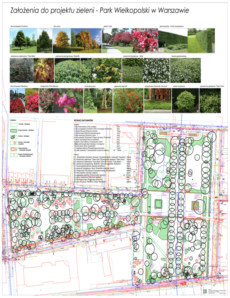 - Park Wielkopolski w Warszawie lipa europejska 'Euchlora' klon polny 'Troja Black' zadrzewnia bezogonkowa 'Butterfly' 'Nuuk' kalina hordowina LEGENDA: drzewa: 1. lipa drobnolistna (Tilia cordata) 3. topola Simona (Populus simonii) 78 /'Marathon' 4-5 szt/m 324szt. / 5szt. 3szt. 10szt. 1szt. 3szt. 1szt. 2szt. 9szt. 1szt. 3szt. 12szt. ok. 134szt. ) 6. buk pospolity 'Purpurea' (Fagus sylvatica 'Purpurea') 67 Drzewa - koncepcja 10. klon polny (Acer campestre) 11. daglezja zielona (Pseudotsuga menziesii) 261 12. grab pospolity 420 423 262 formowany do 1m. 260 259 /'Marathon' 4-5 szt/m 324szt. / 419 424 263 376 375 425 427 270 426 264 421 374 415 378 256 268 258 422 271 272 255 krzewy: 13. 22. kalina hordowina (Viburnum lantana) 417 276 380 257 273 381 277 274 382 252 431 278 265 371 432 279 383 280 266 250 284 450 433 87 73 84 83 81 80 74 458 104 106 105 465 102 77 109 369 285 289 88 86 85 82 70 101 91 65 11.daglezja 63 zielona 67 461 79 69 11.daglezja zielona 99 51 98 144 368 459 3. topola 44Simona 3. topola Simona 386 141 143 96 138 132 157 137 134 111 2. lipa europejska 'Euchlora' 466 133 129 128 136 10. klon polny 147 468 16023. hortensja 155 149 145 146 166 167 173 174 168 183 154 148 'Tilden Park' /120szt. / 163 153 185 151 121 162 152 /174szt./ 178 471 207 208 184 181 182 Chenaulta 'Hancock' /144szt. / 407 451 291 22 296 445 446 408 410 292 295 366 447 244 14 203 210 15. zadrzewnia 16. zadrzewnia bezogonkowa 'Troja Black' 'Butterfly' /75szt. / /63szt. / 8 476 /160szt. / 477 2 Chenaulta 'Hancock' /190szt./ Blizzard' roz. 293 357 452 9 12 243 406 298 299 242 20. lilak pospolity /5szt./- czerwony 401 11 361 300 10 353 239 356 358 360 241 205 475 201 7 294 444 13 /45szt. / 4 20. lilak pospolity /17szt./- 209 202 1 198 rezygnacja z opaski trawiastej 448 16 245 5 481 297 453 9szt/m /468szt./ 1. lipa drobnolistna 179 454 3. topola 3. topola Simona Simona 39 472 180 164 150 25 290 409 3. topola Simona 474 176 17 15 4. robinia 206 177 161 124 127 26 455 18 19 20 23 21 412 czerwony 411 246 37 3 159 126 2. lipa europejska 113'Euchlora' 118 473 175 169 156 10. klon polny 171 367 20. lilak pospolity /3szt./- 41 200 199 165 469 135 125 158 470 10. klon polny 130 28 27 204 170 172 140 110 23. hortensja36 196 195 191 190 186 139 131 3. topola Simona 3. topola Simona 29 11.daglezja30 zielona 40 3. topola Simona 194 192 189 188 283 46 47 142 413 20. lilak pospolity /7szt./- 288 247 31 24 38 187 3. topola Simona 33 42 43 11.daglezja 11.daglezja zielona 35 zielona 45 3. topola Simona 95 11.daglezja 54 zielona 34 480 193 jednoszyjkowy 112 50 93 94 97 49 48 52 53 11.daglezja zielona 62 462 55 11.daglezja zielona 61 60 11.daglezja zielona 92 100 56 11.daglezja 58 zielona 11.daglezja zielona 66 11. daglezja 64 zielona 2. lipa europejska 'Euchlora' 89 75 68 78 463 90 71 57 385 282 287 1. lipa 456 drobnolistna 32 76 384 449 1. lipa drobnolistna 457 72 103 370 281 286 108 354 359 6 443 478 Chenaulta 'Hancock' /28szt. / 301 240 352 355 303 400 363 362 351 304 197 442 211 /78szt. / 302 365 399 305 387 214 364 309 213 403 238 398 350 402 404 119 467 310 123 114 117 116 115 120 414 275 251 249 107 373 430 253 248 464 379 429 546szt. 552szt. 155szt. 75szt. 45szt. 468szt. 100szt. 32szt. ok. 231szt. 8szt. 2szt. 648szt. 20. lilak pospolity (Syringa vulgaris) 416 372 269 428 16. zadrzewnia bezogonkowa 'Butterfly' (Diervilla sessilifolia 'Butterfly') 1. lipa drobnolistna 460 59 377 267 254 1. lipa drobnolistna 7. jesion 418 122 Chenaulta 'Hancock' /184szt. / /20szt. / 405 349 397 306 237 347 345 212 346 311 307 215 216 308 312 441 234 344 'Liset' 236 'Liset' 313 348 6. buk pospolity f. purpurowa 341 343 320 235 342 314 15. zadrzewnia 22. kalina hordowina - grupa 'Troja Black' /92szt. / 438 218 219 439 228 217 'Liset' 319 233 436 315 226 230 229 317 325 338 7. jesion 392 334 390 333 331 339 337 329 479 czerwony 231 437 326 327 394 388 316 224 322 323 324 395 232 434 227 221 222 396 318 22. kalina hordowina - grupa 321 435 223 220 340 440 328 330 332 393 391 389 335 336 225 Ekoart pracownia: 02-798 Warszawa ul. Dukt Kabacki 7 lok.6 tel: 601945159, fax: 22.3988872 www.ekoart.com.pl [email protected]