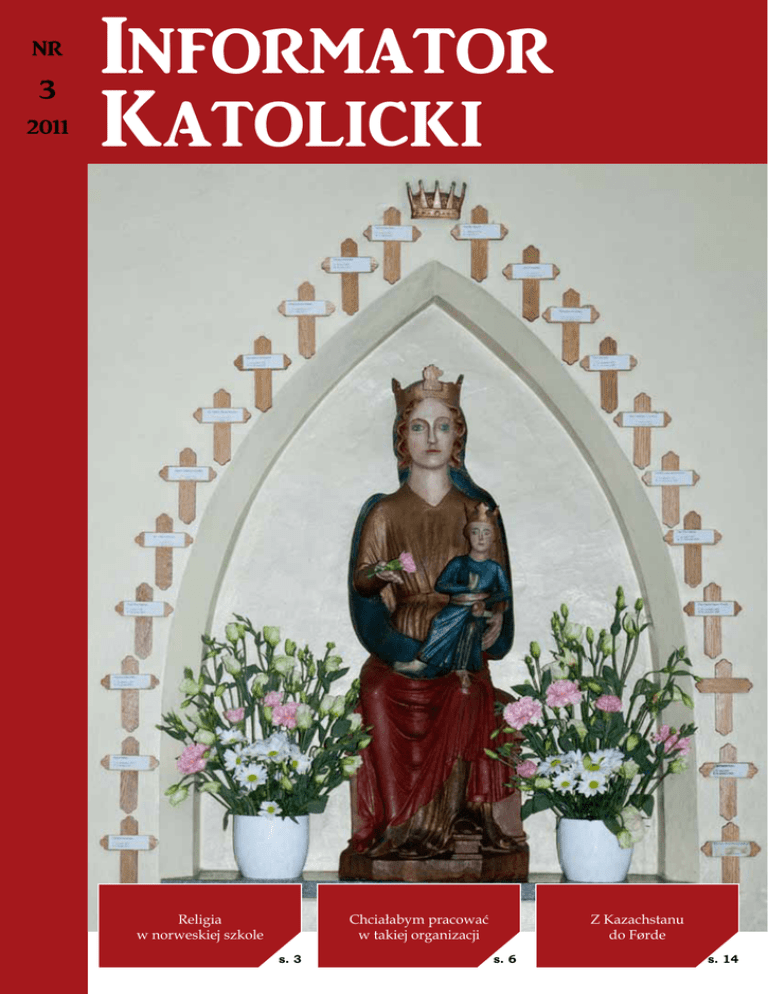 NR 3 2011 Informator Katolicki Religia w norweskiej szkole Chciałabym pracować w takiej organizacji s. 3 Z Kazachstanu do Førde s. 6 s. 14 Moi drodzy, kolejny numer ”Informatora Katolickiego” trafia do Waszych domów w Norwegii w drugiej połowie adwentu, czasu oczekiwania na Zbawiciela. Za kilka dni będziemy uczestniczyć w świętowaniu Tajemnicy Wcielenia Bożego Syna. Część z nas wyjedzie do swoich rodzin do Polski, cześć już tu w Norwegii będzie chciała zasiąść do wigilijnego stołu. Będzie biały obrus, będzie opłatek, będą życzenia, będzie może i tradycyjny karp w galarecie i kolędy, a potem pasterka. A może już bardziej po norwesku, bo zaprosili sąsiedzi i znajomi. Niezależnie od tradycji polskiej, czy norweskiej, Święta Bożego Narodzenia niezmiennie głoszą prawdę o wcieleniu Bożego Syna. Bóg z miłości do człowieka staje się jednym z nas, abyśmy mogli uczestniczyć w Jego chwale w niebie. Te Święta chcemy przeżyć jak najlepiej. Warto pamiętać, że Jezus rodzi się zawsze tam, gdzie panuje miłość i poświęcenie dla innych, gdzie pamięta się o samotnych, chorych, smutnych i wątpiących. Bo tak naprawdę jedna jest Miłość Boża dla wszystkich ludzi. Ks. Jan Twardowski tak pisze: Dlaczego jest święto Bożego Narodzenia? Dlaczego wpatrujemy się w gwiazdę na niebie? Dlaczego śpiewamy kolędy? Dlatego, żeby się uczyć miłości do Pana Jezusa. Dlatego, żeby podawać sobie ręce. Dlatego, żeby się uśmiechać do siebie. Dlatego, żeby sobie przebaczać. W imieniu wszystkich tworzących to pismo, życzę Wam Błogosławionych Świąt Bożego Narodzenia i Dobrego Nowego Roku 2012. o. Paweł Wiech SSCC Wikariusz biskupi ds. duszpasterstw narodowych w diecezji Oslo Informator Katolicki [email protected] Wydawca: Oslo katolske bispedømme Akersveien 5 0177 Oslo tel.: 23 21 95 00 faks: 23 21 95 01 2 Informator Katolicki 3 - 2011 Redaktor: Karol Michalczuk Akersveien 5 0177 Oslo Redakcja: Nasjonalsjelesorgen Druk: JMS Mediasystem Nakład: 16.500 egz. Wydanie zamknięte: 24.11 Następne wydanie: 01.03 Termin nadsyłania materiałów: 09.02 Zdjęcie na okładce: figura Madonny z Enebakk, katedra św. Olafa w Oslo, Fot. Redakcja Religia w norweskiej szkole - ”Wierzę we wszystkich pięciu bogów” >> Ewa Bivand Tak odpowiedział mały Jens na pytanie, czy wierzy w Boga. I według Aud Kvalbein z KRF 1 odpowiedź taka jest rezultatem nauczania przedmiotu „Religia-światopoglądetyka” (RLE- religion–livsynn-etikk), który wprowadzono w norweskiej szkole podstawowej i gimnazjum w wymiarze dwu godzin w tygodniu w 2009 roku2. Jest to przedmiot ważny i ciekawy dla ucznia i jego rozwoju rozumienia świata, ale może spowodować zamęt myślowy, jeśli nie towarzyszy mu poważna rozmowa w domu. Jest to przedmiot o zupełnie innym programie niż religia w polskiej szkole i warto zdać sobie z tego sprawę. Jest to także przedmiot obowiązkowy, choć rodzice mogą zwolnić dzieci z niektórych zajęć, jeśli uważają, że zbyt mocno są związane z praktykami religijnymi, np. ateista czy muzułmanin może zwolnić dziecko z uczestnictwa w nabożeństwie przed Bożym Narodzeniem, a chrześcijanin z uczestnictwa w modlitwie innej religii, jeśli szkoła by takową zorganizowała. Zwolnienie musi być pisemne, a powyżej 15 roku życia dziecko może zwolnić się samo. Zwolnienie to nie dotyczy zaś uczestnictwa w np. wizycie w meczecie czy kościele katolickim w celu uzyskania informacji3. Jak wynika z nazwy przedmiotu religia jest tu tylko jedną z trzech części, i dotyczy wszystkich głównych pięciu religii świata - chrześcijaństwa, judaizmu, islamu, buddyzmu i hinduizmu. „Chrześcijaństwo” zajmuje główną część programu, ale wszystkie religie mają być traktowane na równi pod względem jakościowym, cokolwiek by to oznaczało. Należy sobie oczywiście także zdać sprawę z tego, że w ramach „Chrześcijaństwa” omawiane jest przede wszystkim wyznanie luterańskie, jako że Norwegia wciąż jeszcze posiada luterański kościół państwowy – Statskirke. Dużo miejsca poświęca się też innym wyznaniom protestanckim (baptystom, metodystom, itd.) a tylko minimalnie Kościołowi katolickiemu czy prawosławnemu. Jest to więc nauka o różnych religiach, a nie katecheza – przekazywanie wiary jest na lekcjach de facto zabronione. Warto może pokrótce przedstawić, jak doszło do obecnej sytuacji. Od czasów powstania publicznego szkolnictwa w tym kraju w XVII wieku aż do lat 60-tych XX w. nauczanie religii w szkołach miało charakter wyznaniowy (luterański) i było w zasadzie obowiązkowe. Od lat sześćdziesiątych zaszły poważne zmiany w społeczeństwie, z jednej strony laicyzacja, a z drugiej imigracja. Laicyzacja spowodowała, że niewierzący rodzice uzyskali możliwość zwolnienia swoich dzieci z lekcji religii, a następnie zagwarantowano także alternatywne nauczanie etyki – i tzw. światopoglądu humanistycznego, czyli ateistycznego czy agnostycznego (humanizm chrześcijański w zasadzie nie istnieje jako pojęcie obiegowe). Również rodzice innych wyznań mogli skorzystać z tej możliwości i ewentualnie zorganizować nauczanie dla swoich dzieci poza szkołą. Ten stan rzeczy okazał się niezadowalający w związku z coraz liczniejszymi przybyszami innych wyznań. Uznano, iż aby zwiększyć integrację, wszystkie dzieci w Norwegii powinny uzyskać wiedzę o religiach swoich współziomków, a i przybysze powinni poznać podstawy chrześcijaństwa, które ma w Norwegii 1000-letnią tradycję. W związku z tym w reformie szkolnej w 1997 roku, zlikwidowano przedmiot „Chrześcijaństwo” (Kristendom) z możliwością uzyskania zwolnienia i powrócono do zajęć obowiązkowych dla wszystkich dzieci. Nowy przedmiot zwał się ”KRL - kristendomskunnskap med religions- og livssyns orientering”, czyli „Wiedza o chrześcijaństwie, z elementami wiadomości o religiach i świato