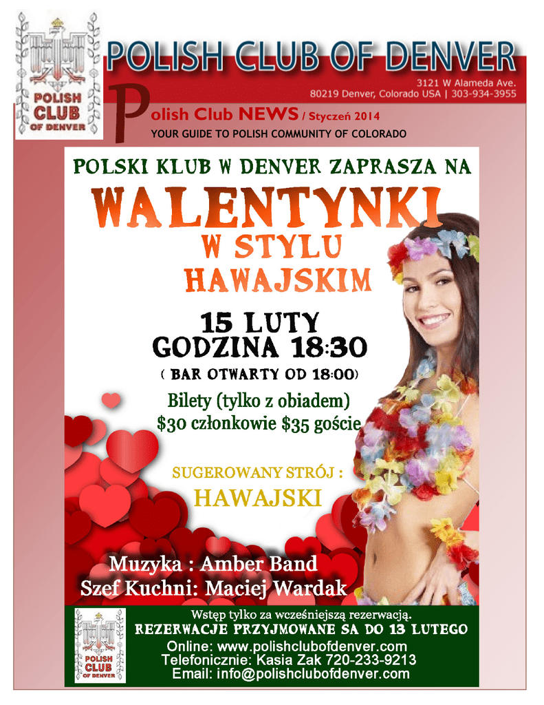 www.polishclubofdenver.com and subscribe to our email list. You can also send us an email with your