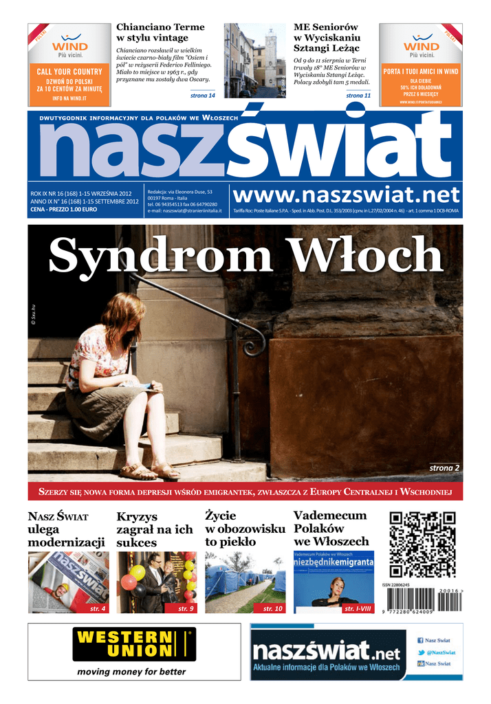 strona 14 © Blanka KI LS PO INFO NA WIND.IT strona 11 KI DZWON DO POLSKI ZA 10 CENTÓW ZA MINUTE Od 9 do 11 sierpnia w Terni trwały 18° ME Seniorów w Wyciskaniu Sztangi Leżąc. Polacy zdobyli tam 5 medali. LS CALL YOUR COUNTRY Chianciano rozsławił w wielkim świecie czarno-biały film "Osiem i pół" w reżyserii Federico Felliniego. Miało to miejsce w 1963 r., gdy przyznane mu zostały dwa Oscary. ME Seniorów w Wyciskaniu Sztangi Leżąc PO Chianciano Terme w stylu vintage PORTA I TUOI AMICI IN WIND DLA CIEBIE 50% ICH DOŁADOWAN PRZEZ 6 MIESIECY WWW.WIND.IT/PORTAITUOIAMICI ROK IX NR 16 (168) 1-15 WRZEŚNIA 2012 ANNO IX N° 16 (168) 1-15 SETTEMBRE 2012 CENA - PREZZO 1.00 EURO Redakcja: via Eleonora Duse, 53 00197 Roma - Italia tel. 06 94354513 fax 06 64790280 e-mail: [email protected] www.naszswiat.net Tariffa Roc: Poste Italiane S.P.A. - Sped. in Abb. Post. D.L. 353/2003 (cpnv. in L.27/02/2004 n. 46) - art. 1 comma 1 DCB-ROMA © Sxu.hu Syndrom Włoch strona 2 Szerzy Się nowa forma depreSji wśród emigrantek, zwłaSzcza z europy centralnej i wSchodniej naSz świat Kryzys ulega zagrał na ich modernizacji sukces str. 4 str. 9 Vademecum Życie w obozowisku Polaków we Włoszech to piekło str. 10 str. I-VIII naszświat ŻyCIE WE WłOSZECh 2 Nr 16 / 1-15 września 2012 3 Nr 16 / 1-15 września 2012 naszświat ŻyCIE WE WłOSZECh Szerzą się depresje także wśród eurosierot - dzieci osób pracujących za granicą Chorzy na ciele, psychice i duszy przez Włochy Na syndrom Włoch cierpią przede wszystkim Ukrainki, Rosjanki, Rumunki, Mołdawianki i Polki P rzez 10 lat zajmowałam się niesprawną fizycznie staruszką. Jak większość badante we Włoszech pracowałam 24 godziny na dobę jako opiekunka, pielęgniarka, sprzątaczka i kucharka. Wolne miałam tylko niedzielne popołudnie. Tak wygląda zresztą standardowy etat imigrantki-badante. Kiedy moja podopieczna zmarła, postanowiłam wrócić do Polski. Dzięki pracy we Włoszech udało mi się spełnić większość marzeń: posłać obie córki na studia, wyremontować i urządzić dom, kupić samochód i zaoszczędzić trochę pieniędzy na czarną godzinę, czyli przewidywany czas potrzebny na znalezienie nowej pracy. W ciągu trzech miesięcy po powrocie schudłam 15 kilo. Miałam non stop „doła”, nieludzkim wysiłkiem było dla mnie wykonanie prostych czynności domowych. Płakałam co noc. Uporczywie wracały mi w myślach upokorzenia, których doznałam we Włoszech, pogrzeb męża, który zapił się na śmierć, twarze sąsiadów, którzy patrzyli na mnie z pogardą, bo zostawiłam same nastoletnie córki i schorowaną matkę, żeby zaopiekować się obcą, zniedołężniałą kobietą. W piątym miesiącu po powrocie wylądowałam u psychiatry. Obecnie funkcjonuję tylko dzięki psychotropom – opowiada łamiącym się głosem 52-letnia Krystyna (vel Cristina) pochodząca z niewielkiego miasta na Podkarpaciu. Nie ma żadnych statystyk, które mówiłyby, jaki procent Polek, czy emigrantek w ogóle, pracujących we Włoszech jako opiekunki i pomoce domowe zapada na depresję. Jedno jednak jest pewne: praca 24 godziny na dobę, wieloletnia rozłąka z rodziną pozostawiają piętno na psychice każdej badante. Syndrom Włoch Andriy Kiselyov i Anatoliy Faifrych to dwaj psychiatrzy ze szpitala w Iwano-Frankiwsku na Ukrainie. W 2005 roku na ich oddział trafiły dwie młode kobiety cierpiące na głęboką depresję. Jedna z nich próbowała popełnić samobójstwo. Obie kobiety pracowały przez wiele lat jako opiekunki i pomoce domowe we Włoszech. Chociaż symptomy takie jak: obniżenie nastroju, brak apetytu, spadek wagi ciała, bezsenność i myśli samobójcze, uznawane są za klasyczne objawy depresji, obaj lekarze uznali, iż profil kliniczny tych dwóch pacjentek nie mieści się w standardowych opisach. Zauważyli, że obie pacjentki oprócz klasycznych symptomów depresyjnych manifestują również silnie zaburzone poczucie własnej tożsamości – nie potrafią określić swojego miejsca w świecie i w relacjach międzyludzkich. Kiselyov i Faifrych uznają, że patologiczne reakcje behawioralne i emocjonalne leczonych przez nie pacjentek należy opisać w nowych kategoriach. Postanawiają nadać odrębną Płacą utratą zdrowia za to, że za wszelką ceną chcą być dzielne Antonina Pieprzyk / fot. arch. prywatne Wiele polskich emigrantek pracujących we Włoszech cierpi na stany depresyjne. Nie szukają jednak pomocy psychologicznej. Dlaczego tak się dzieje, tłumaczy Antonina Pieprzyk, polska psycholożka prowadząca praktykę terapeutyczną w Turynie. W mojej pracy kilkukrotnie spotkałam się z przypadkami opiekunek z Europy Wschodniej i Środkowej, które w związku z wykonywanym zajęciem doświadczały cierpienia psychicznego, a w pewnym sensie także i fizycznego. W większości przypadków kobiety te nawiązywały ze mną wyłącznie kontakt telefoniczny, chcąc pozostać anonimowe. Należy tu podkreślić, że rzadko szukają one otwarcie pomocy lekarza lub psychologa, będąc jeszcze we Włoszech. Jest to związane z tym, że na ogół nie posiadają umowy o pracę i boją się rozmawiać z kimkolwiek o swoich problemach i o warunkach, w jakich pracują. Uważają, że muszą być „dzielne”, że ich dzieci, mężowie i bliscy nie mogą dowiedzieć się o tym, jak bardzo jest im ciężko. Nie chcą się do tego przyznać nawet same przed sobą, bo do tak obciążającej psychicznie pracy, jaką jest całodobowa opieka nad starszymi i schorowanymi osobami, potrzebna jest niemalże nadludzka siła. I one tej siły szukają w sobie, uruchamiając cały szereg kosztownych mechanizmów obronnych, które, w niektórych przypadkach, wystawiają później rachunek w postaci załamania nerwowego, depresji, chorób psychosomatycznych czy też uzależnień. Istnieje oczywiście cała grupa osób, które stosunkowo dobrze radzą sobie z tego rodzaju napięciem psychicznym, trzeba jednak pamiętać