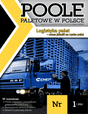 Poole Paletowe w Polsce Magazyn branży paletowej. Wydanie internetowe. Numer 1/2012 (1) Logistyka palet – nowa jakość na rynku palet w numerze: • Poole paletowe i prawidłowa gospodarka paletowa • Rozwiązanie versus problem • Otwarci na potrzeby klienta Nr 1 / 2012 ORYGINA£ JEST TYLKO JEDEN www.nissanforklift.pl Czo³owa seria DX Profesjonalny serwis GENERALNY DYSTRYBUTOR: Marubeni Machinery Distribution Poland Sp. z o.o., Tel. +48 22 868 36 28, fax +48 22 868 36 58, www.nissanforklift.pl DEALERZY: AMB Wózki Wid³owe, Olsztyn, Tel. (89) 533 93 72 / BiLift Polska Sp. z o.o., Falenty Nowe k/Warszawy, Tel. (22) 720 76 95, / CERAMIKA SERWIS, Opoczno, Tel. (44) 754 83 70, / Dagon, Suchedniów, Tel. (41) 254 61 04, / Detruck Sp. z o.o., Jas³o, tel. (13) 445 32 03 - Biuro Handlowe, Gliwice, Tel. (32) 302 20 01, / FHU Forklift Krzysztof Dro¿dzowski, Boles³aw, Tel. (32) 641 17 99, / FLT Service, Wroc³aw, tel. ( 71) 783 38 51, / Intex, Poznañ, Tel. (61) 865 14 06, / J.M.P. WÓZKI WID£OWE, Bia³ystok, Tel. (85) 742 97 37, / KMJ Centrum, Gdañsk, Tel. (58) 520 78 34, / Logis Komorniki k/Poznania, Tel. (61) 664 69 00 - Oddzia³ D³ugo³êka, tel. (71) 315 30 72, / Mechanika Service, Kostrzyn n/Odra Tel. (95)752 92 70, Oddzia³ Szczecin Tel. (91)469 22 83, Oddzia³ Wilków Tel. (76) 831 79 56, / NFK, R¹bieñ k/£odzi Tel. (42) 712 56 10, / POLSAD Jacek Korczak, Kutno, tel. (24) 254 92 46, Oddzia³ Rzgów k/ £odzi, Tel. (42) 227 86 70, Odzia³ Stare Miasto k/Konina, Tel. (63) 240 98 23, Oddzia³ Fabianów k/Kalisza, Tel. (62) 762 00 02, / PPUH Polkar, ¯ukowo, Tel. (58) 685 81 87, PROGI BIS CIEŒLAK S.C., Lublin,Tel. (81) 441 76 99, / Rolmix Sp. J., £osice, Tel. (83) 359 09 46, Romax, Kraków, Tel. (12) 267 20 80, / ROMAX Sp. J., Katowice, Tel. +48 604 205 040, / Z. Z. Ogrodniczego Warka Sp. z o.o., Warka Tel. (48) 665 10 00. B2B GOSPODARKI MAGAZYNOWEJ www.log4.pl POOLE PALETOWE W POLSCE NR 1/2012 (1) Najlepsi zarządcy Międzynarodowy Związek Kolejowy (Union Internationale des Chemins de fer – UIC) w 1961 roku, dla usprawnienia przepływu towarowego, określił standard palety używanej w obrocie towarowym, rozpoczął tym samym tworzenie otwartego poolu paletowego. Normalizacja spowodowała ustalenie wymiarów i kryteriów jakości, które gwarantują sprawny i bezpieczny transport towarów. Jak każde dobre rozwiązanie, znajduje wielu zwolenników, szybko rosła liczba uczestników tego pierwszego otwartego poolu paletowego. Standard palety EUR określono w dokumencie zwanym Kartą UIC 435-2 do której stosowania zobowiązani są wszyscy producenci palet typu EUR. W 1991 roku powstała organizacja EPAL, by chronić jakość i standardy palety EUR, poprzez narodowe komitety, obecna jest w całej Europie, w USA, Indiach, Chinach oraz Australii. Szacuje się, że firmy działające w strukturach EPAL w 2011 roku wyprodukowały ok. 67 mln palet typu EUR, w tym na polskim rynku 17,5 mln palet. W ramach tych struktur funkcjonuje otwarty pool paletowy tzw. „białych palet”, a firmy świadczą zaawansowane usługi logistyki palet dla swych klientów. Firmy EP Serwis i Palettenwerk zarządzają kilkoma milionami palet wykorzystując stworzone struktury do świadczenia usług logistyki palet. Firmą zarządzającą największym wolumenem własnych palet na świecie jest CHEP, która posiada w obrocie ponad 300 mln palet i opakowań transportowych, opracowując dla każdego z rynków narzędzia i techniki do efektywnego zarządzania. Nasz rynek się rozwija, choć spowolniony światowym kryzysem i będzie potrzebował nowoczesnych rozwiązań, które w obszarze kosztów opakowań transportowych, dają wymierne, pozwalające się oszacować korzyści. Logistyka palet to najefektywniejsze narzędzie do zarządzania paletami i nie tylko korzyści ekonomiczne, to przede wszystkim oddanie w zarząd obszaru, najlepszym specjalistom na rynku. Andrzej Szymkiewicz Redaktor naczelny 4 W numerze: 6 Poole paletowe i prawidłowa gospodarka paletowa 12 Rozwiązanie versus problem 18 Zarządzanie magazynem, dostawami i paletami 22 Otwarci na potrzeby klienta 26 Miliony palet WYDAWCA Portal log4.pl ul. Szarych Szeregów 27 lok.28 60-462 Poznań Redaktor naczelny Andrzej Szymkiewicz Współpraca Mateusz Boruta Marta Górska Partnerzy: Chep Polska Sp. z o.o. ul. Domaniewska 41 02-672 Warszawa Tel. +48 22 874 45 00 Fax. + 48 22 874 45 14 [email protected] www.chep.com EP Serwis Sp. z o.o. Łuczynów 98 A 26-900 Kozienice Tel. +48 48 614 46 10 Fax. +48 48 614 46 10 [email protected] www.epeserwis.com.pl Georg UTZ Sp. z o.o. ul. Nowowiejska 34 55-080 Katy Wrocławskie Tel. +48 71 3167760 Fax. +48 71 3167761 [email protected] www.georgutz.com Z.P.H. Palettenwerk Kazimierz Kozik ul. Przemysłowa 219 34-240 Jordanów Tel. +48 18 277 35 30 Fax +48 18 277 35 32 [email protected] www.palettenwerk.com.pl 5 »»»»» POOLE PALETOWE W POLSCE NR 1/2012 (1) Mateusz Boruta Poole paletowe i prawidłowa gospodarka paletowa W modelu tradycyjnym, przedsiębiorca dokonuje zakupu palet, które następnie wraz z towarem wysyłane są do odbiorcy, kolejnego ogniwa w łańcuchu dostaw. Później, w zależności od ustalonych zasad, palety są zwracane bądź rozliczane w inny sposób (np. odsprzedawane, wymieniane, wliczone w cenę towaru). By ułatwić wymianę palet, logistycy w wielu sektorach posługują się rozwiązaniami standardowymi – czyli np. paletami EUR, których cechy, właściwości fizyczne i funkcjonalność są ściśle określone. Dzięki temu zarządzanie paletami jest nieco łatwiejsze. Minione cztery lata to okres silnego rozwoju pooli paletowych w Polsce. Pool paletowy to powszechna nazwa dla zamkniętego systemu obrotu palet (a często także i innych opakowań zbiorczych – skrzynek plastikowych itp.). Różnica względem tradycyjnej gospodarki paletowej dotyczy własności palet, ich ro- W przypadku poolu paletowego (otwartego – opartego na standardowych dzaju i sposobu zarządzania nimi. 