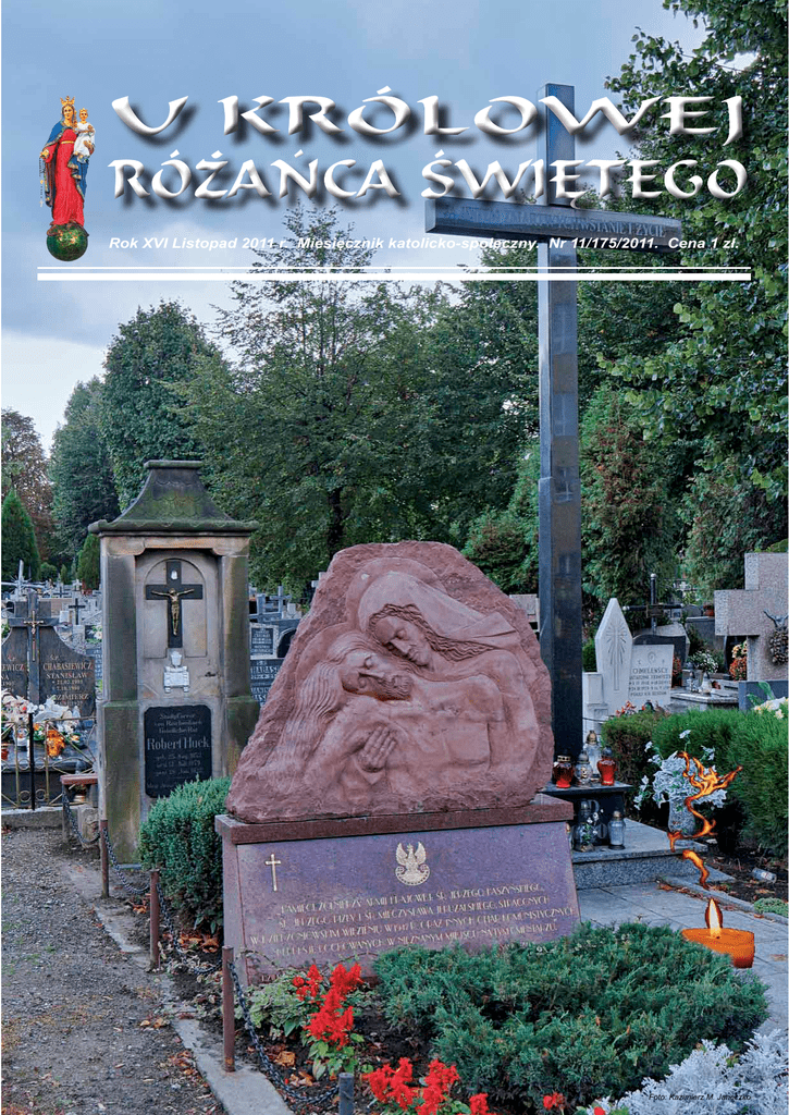 U KRÓLOWEJ RÓŻAŃCA ŚWIĘTEGO Rok XVI Listopad 2011 r. Miesięcznik katolicko-społeczny. Nr 11/175/2011. Cena 1 zł. Foto: Kazimierz M. Janeczko Foto: Kazimierz M. Janeczko MODLITWA ZA OJCZYZNĘ „Boże, Rządco i Panie narodów, z ręki i karności Twojej racz nas nie wypuszczać, a za przyczyną Najświętszej Maryi Panny, Królowej naszej, błogosław Ojczyźnie naszej, by – Tobie zawsze wierna – chwałę przynosiła Imieniu Twojemu, a syny swe wiodła ku szczęśliwości. Wszechmogący, wieczny Boże, wzbudź w nas szeroką i głęboką miłość ku braciom i najmilszej Matce, Ojczyźnie naszej, byśmy Jej i ludowi Twemu, swoich pożytków zapomniawszy, mogli służyć uczciwie. Ześlij Ducha Świętego na sługi Twoje, rządy naszego kraju sprawujące, by wedle Woli Twojej ludem sobie powierzonym mądrze i sprawiedliwie zdołali kierować. Przez Chrystusa Pana naszego. Amen.” (ks. Piotr Skarga). „Mówią, że są dwie drogi ratowania Polski: normalna i nadzwyczajna. Normalna to taka, że Matka Boska nas wyprowadzi z nieszczęścia, a nadzwyczajna, że my pogodzimy się z sobą, że damy sobie radę. Módlmy się do Matki Bożej, bo jedna i druga droga możliwa jest dzięki Jej wstawiennictwu. Matka Boża może najwięcej dać, bo najwięcej otrzymała.” (ks. Jan Twardowski). (-) Boże, Ty powołałeś mnie do życia z polskich rodziców i na polskiej ziemi. Dziedzictwo mego Narodu kształtowało moje myśli, chleb polskiej ziemi żywił moje ciało. Nie mogę kochać Twojego świata, nie kochając na pierwszym miejscu mojej Ojczyzny. Proszę więc, ześlij na Nią, błogosławieństwo Swoje. Niech rozkwita w pokoju i sprawiedliwości, a ja niech poznam moje wobec Niej obowiązki i z Twoją pomocą je wypełnię. Amen. Odzyskanie Niepodległości Polski - 11.11.1918 r. Święto Odzyskania Niepodległości - Najważniejsze polskie święto narodowe związane z odzyskaniem w 1918 roku , po 123 latach zaborów, niepodległości. Tło historyczne W XVIII w. silna niegdyś Rzeczpospolita zaczęła się chylić ku upadkowi, co doprowadziło do trzech rozbiorów (I - 1772 r.; II - 1793 r.; III - 1795 r.). Przez 123 lata, aż do 1918 roku, kiedy to 11 listopada Rada Regencyjna (organ sprawujący władzę nad Królestwem Polskim) przekazała władzę nad wojskiem Józefowi Piłsudskiemu, który dzień wcześniej powrócił z internowania w Magdeburgu, a w trzy dni później rozwiązała się, przekazując mu pełną władzę ustanawiając go Naczelnikiem Państwa. Powstała Druga Rzeczpospolita. Święto Niepodległości i obchody. Dzień 11 listopada ustanowiono świętem państwowym po raz pierwszy dopiero w 1937 roku. W latach 1939-44 podczas okupacji hitlerowskiej oraz w okresie od 1945 do 1989 roku, w czasie rządów komunistycznych, obchodzenie święta 11 listopada było zakazane. Dopiero w roku 1989, ustawą Sejmu, przywrócono obchody tego święta; od tego roku Święto Niepodległości jest najważniejszym świętem państwowym, a dzień 11 listopada jest dniem wolnym od pracy. Święto obchodzone jest w całym kraju lecz najważniejsze obchody odbywają się w Warszawie na placu Józefa Piłsudskiego przy Grobem Nieznanego Żołnierza. Opr: kmj Opowiedz nam, moja Ojczyzno jak matka dzieciom ciekawym, o latach znaczonych blizną, na wiekach chwały i sławy. O wojach Mieszka nam powiedz, o słupach nad Odrą stawianych. Niech niesie Twoją opowieść wiatr halny i morskie szkwały. Matczynej ucz nas miłości, Jak ojciec w życie wprowadzaj, Nie żałuj serdecznej troski, Za trudy szczodrze nagradzaj. Biel śniegu i żar czerwieni i orły dumne, piastowskie, to wieczne symbole tej ziemi najbliższej sercu, bo polskiej! Wytłumacz nam, tak jak umiesz, skąd biel i czerwień sztandarów. Niech ludzie żyją tu w dumie, że taki wydał ich naród. (Janusz Szczepkowski – „Opowiedz nam Ojczyzno”) „I naucz mnie życiem dziękować…” Foto: Dorota Malinowska Już po raz trzeci nasza oaza miała okazję przeżywać swoje rekolekcje w Rzeszowie. Tegoroczny wyjazd różnił się jednak od poprzednich. Po pierwsze: było nas zdecydowanie więcej niż zazwyczaj (63 osoby). Po drugie: dzieci Boże odkrywały i pogłębiały swoją wiarę w Jezusa Chrystusa wraz z Oazą Nowego Życia I0, a młodzież uczyła się od najmłodszych radości i gorliwości.[...] Efekty pobytu oazowiczów zamieszczone są na str. 7, 8 i 12. red NASZE UROCZYSTOŚCI ODPUSTOWE Z PIESZEJ PIELGRZYMKI DO KIEŁCZYNA (11.09.) Z DZIEĆMI NA RÓŻAŃCU W październiku dorośli liczniej niż zazwyczaj uczestniczyli w modlitwie różańcowej o godz. 18.00 każdego dnia. Dla dzieci prowadzone były osobne nabożeństwa o godz. 17.00 od poniedziałku do piątku. Na te nabożeństwa dzieci przynosiły swoje intencje modlitewne wypisane na własnoręcznie wykonanych papierowch serduszkach, składanych w koszyczku przed nabożeństwem. Wypisanymi intencjami dzieci obejmowały wszystkie sprawy według wrażliwości ich serc: modliły się za zmarłych członków ro- dłoni nie wytrzymają. Modlitwa kończyła się błogosławieństwem, a po nim następowało losowanie kapliczek Maryjnych, które wylosowane i szczęśliwe dzieci zabierały do domów na cały dzień, następnego dnia przynosząc je na powrót do kaplicy. Wszystkie dzieci każdego dnia otrzymywały samoprzylepne obrazeczki będące fragmentami większego obrazka. (AKo) dziny, za dzieci z domu dziecka, za koleżanki, rodziców, księży, panie katechetki i nauczycieli, za chorych.... Intencje wyczytywał ksiądz prowadzący nabożeństwo przed każdą z trzech dziesiątek różańca (bo tyle dzieci odmawiały). W modlitwie pomagały dzieciom wyświetlane ilustracje do poszczególnych tajemnic, a także wprowadzenie poczynione przez księdza. Były też zapytania do dzieci i różne formy odmawiania modlitwy, bo wiadomo: dzieci to naród ruchliwy, pół godziny na klęczkach z różańcem w Foto: Agnieszka Kotowska DZIERŻONIÓW W BUDOWIE - STAN 