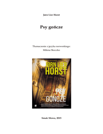Jørn Lier Horst Psy gończe Tłumaczenie z języka norweskiego: Milena Skoczko Smak Słowa, 2015 1 Deszcz bębnił w szybę. Woda spływała po oknach i skapywała z dachu na stoliki ustawione na zewnątrz. Silne podmuchy wiatru szarpały nagimi gałęziami topoli, które chrobotały o ścianę. William Wisting siedział przy stoliku i patrzył przez okno. Wiatr porwał z mokrego chodnika klejący jesienny liść. Po drugiej stronie ulicy stała w strugach deszczu furgonetka do przeprowadzek. Podbiegła do niej para młodych ludzi z kilkoma dużymi kartonami, po czym młodzi szybko zawrócili do bramy. Wisting lubił deszcz. Sam do końca nie rozumiał, jak to się dzieje, ale deszcz zmniejszał tempo życia. Sprawiał, że człowiek mógł opuścić ramiona i uspokoić oddech. Miękkie jazzowe dźwięki mieszały się z odgłosem deszczu z szumem spadających kropel. Wisting odwrócił się do baru. Płomienie świec rzucały drżące cienie na ściany. Suzanne uśmiechnęła się do niego, wyciągnęła rękę w stronę półki i ściszyła muzykę. Nie byli sami w lokalu. Przy stoliku na końcu kontuaru siedziały trzy młode osoby. Intymny nastrój panujący w tej nowoczesnej, miejskiej kawiarni sprawiał, że stała się miejscem spotkań studentów nowo otwartego wydziału Wyższej Szkoły Policji. Znowu skierował wzrok na okno. „Święty spokój” – brzmiał łukowaty napis utworzony z odwróconych, zmarzniętych liter. „Galeria i bar kawowy”. To było największe marzenie Suzanne. Jak długo nosiła je w sobie, tego nie wiedział. Pewnego zimowego wieczoru odłożyła książkę, którą właśnie czytała, i opowiedziała mu o przewoźniku na rzece Hudson. Przez całe życie kursował między Nowym Jorkiem a Jersey, tam i z powrotem, tam i z powrotem. Dzień do dniu, rok po roku. Aż pewnego dnia podjął odważną decyzję. Zawrócił prom i obrał kurs na pełne morze, cała naprzód, w stronę oceanu, o którym zawsze marzył. Następnego dnia kupiła lokal na kawiarnię. 2 Spytała go wtedy, jakie jest jego wielkie marzenie, ale nie odpowiedział. Nie dlatego, że nie chciał, po prostu nie znał odpowiedzi. Lubił swoje życie. Był policjantem i nie chciał tego zmieniać. Praca śledczego dawała mu poczucie, że robi coś ważnego i pożytecznego. Uniósł filiżankę, przyciągnął do siebie niedzielne wydanie gazety i spojrzał w jesienny mrok za oknem. Zwykle siadał w głębi lokalu, gdzie prawie nikt nie zwracał na niego uwagi. Tym razem jednak mógł siedzieć spokojnie przy oknie, nie ryzykując, że ktoś z przechodniów rozpozna go i wejdzie do środka, żeby uciąć sobie z nim pogawędkę. W taką pogodę ludzie niechętnie opuszczali domy. Z czasem przyzwyczaił się do tego, że jest rozpoznawany na ulicy. Zdarzało się to zresztą jeszcze częściej po tym, jak zgodził się wystąpić w telewizyjnym talk-show i opowiedzieć o jednej z prowadzonych przez siebie spraw. Młody mężczyzna siedzący z kolegami przy stoliku przed kontuarem spojrzał na Wistinga, gdy ten wszedł do środka, i trącił łokciem swoich dwóch towarzyszy. Wisting również go rozpoznał. Chłopak uczył się w szkole policyjnej. Na początku semestru poproszono Wistinga o wygłoszenie odczytu na temat etyki zawodowej. Chłopak był jednym z tych, którzy siedzieli w pierwszym rzędzie. 3 Wisting skupił się na gazecie. Pierwsza strona składała się głównie z porad dotyczących odchudzania, z ostrzeżenia przed dalszymi opadami deszczu oraz z intryg w popularnym telewizyjnym reality show. Niedzielne wydania rzadko zawierały najświeższe informacje. Konserwy – tak Line nazywała gotowe materiały, które leżały w redakcji przez całe dni i tygodnie, zanim ukazywały się w druku. Jego córka pracowała w „VG” od prawie pięciu lat. Zawód dziennikarza wymagał ciekawości świata i odpowiedniej dozy krytycyzmu, których Line nie brakowało. Przeszła przez różne działy, ale od jakiegoś czasu pracowała w sekcji kryminalnej. Zdarzało się więc, że ona i jej redakcyjni koledzy zajmowali się tymi samymi sprawami, co Wisting. Występowanie w tej podwójnej roli nie nastręczało mu jednak żadnych trudności, wręcz przeciwnie – świetnie sobie radził jako oficer wydziału kryminalnego i ojciec dziennikarki śledczej. W ścieżce kariery, jaką wybrała Line, nie podobało mu się tylko jedno: myśl, że w pracy będzie miała do czynienia z całą ludzką nędzą. On sam był policjantem od trzydziestu jeden lat. W tym czasie zdążył zetknąć się z niemal wszystkimi formami przemocy i brutalności, a bezsennych nocy nie był w stanie zliczyć. Właśnie tego chciał oszczędzić swojej córce. Minął strony z komentarzami i przejrzał pobieżnie wiadomości. Nie spodziewał się znaleźć żadnego artykułu Line. Rozmawiał z nią przed weekendem i wiedział, że miała wolne. Coraz bardziej cenił sobie możliwość dyskutowania z Line na bieżące tematy, którymi żyło całe społeczeństwo. Niełatwo mu było się do tego przyznać, ale dzięki rozmowom z córką mógł w inny sposób odnieść się do swojej roli policjanta. Jej trzeźwe spojrzenie na niego i na grupę zawodową, którą reprezentował, spojrzenie osoby z zewnątrz, nieraz zmusiło go do zrewidowania nieco skostniałych poglądów na temat samego siebie. Właśnie ostatnio, podczas wykładu dla słuchaczy szkoły policyjnej, gdy mówił o tym, jak ważne dla poczucia bezpieczeństwa i zaufania obywateli jest to, aby policja w swoich działaniach kierowała się prawością, przyzwoitością i sumiennością, zdał sobie sprawę, że punkt widzenia Line stanowił dla niego ważne źródło inspiracji. Starał się wytłumaczyć swoim przyszłym kolegom, jak ważne w życiu policjanta są podstawowe wartości moralne. Że zawód ten wymaga rzetelności i obiektywizmu, uczciwości i prostolinijności, i ciągłego poszukiwania prawdy. 4 Gdy doszedł do ostatniej strony z p