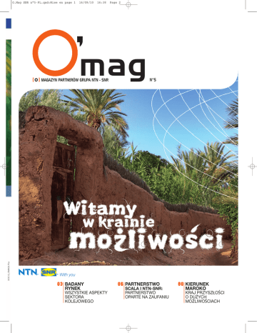 O.Mag SNR n°5-PL.qxd:Mise en page 1 16/09/10 16:38 Page 2 ’mag [ O ] MAGAZYN PARTNERÓW GRUPA NTN - SNR N°5 . ‘ mozliwosci Witamy DOC.G_OMAG5.PLa w krainie With you O 3 BADANY RYNEK WSZYSTKIE ASPEKTY SEKTORA KOLEJOWEGO O6 PARTNERSTWO SCALA I NTN-SNR: PARTNERSTWO OPARTE NA ZAUFANIU 08 KIERUNEK MAROKO KRAJ PRZYSZŁOŚCI O DUYCH MOLIWOŚCIACH O.Mag SNR n°5-PL.qxd:Mise en page 1 16/09/10 Od redakcji 16:38 Page 3 08 10 Nasza strategia efekty! przemysłowa O6 ju przynosi Najważniejsze miejsce w strategii rozwoju grupy NTN-SNR zajmują bardzo wyraźnie przedsiębiorstwa przemysłowe. Naszą ambicją jest tworzenie nowych, trafnych rozwiązań dla określonych rynków, np. rynku kolejowego, energii wiatrowej, maszyn i narzędzi, czy też sektora budowlanego. Stawiamy się na miejscu klientów Mianowaliśmy dyrektora ds. rynku dla każdego z tych sektorów. We współpracy z zespołami operacyjnymi (handlowymi, badawczo-rozwojowymi itp.) dyrektorzy ci zajmują się wykrywaniem w pragmatyczny sposób pytań dotyczących kwestii, „które nie dają klientom spać w nocy” oraz tworzeniem dla tych klientów dostosowanej do ich potrzeb oferty, globalnej, innowacyjnej i konkurencyjnej. Jakie konkretne wyniki ma ta działalność? Dział „Experts & Tools” podchodzi w innowacyjny sposób do produktów z dziedziny smarów. Warto też wspomnieć o nowego typu szkoleniach wykorzystujących elementy zabawy, zadziwiających przyjazną atmosferą, skutecznością i zgodnie wychwalanych przez naszych klientów. Mobilizujemy wszystkie siły Magazyn SNR Roulements RCS Annecy B 325 821 072 Dyrekcja wydania: C. Donat Koncepcja/realizacja: Service publicité NTN-SNR Dziennikarz: J. Traverse Współpraca: F. Travostino, D.Parayre, Y.Souteyrand, D. Sépulchre de Condé, A.Benvenuti, A.Rocher, J.B. Sandrini, R. Dannoun, M. Chadid, P.Deprez, E.Ould Sidi Cheikh, M.Marchand. Zdjęcia: NTN-SNR - P. Flouriot - Pedro Studio Zdjęcia - NTV - Shutterstock. Numer depozytowy: N° ISSN 1961-4306 Kopiowanie magazynu, również częściowe, wymaga naszej zgody Wydrukowano we Francji - 07/2010. Nasz nowy kierunek działania spotkał się z entuzjastycznym przyjęciem ze strony wszystkich działów firmy, od najwyższego kierownictwa po działy handlowe, przez jednostki biznesowe i dział badawczo-rozwojowy, który w przeszłości był podstawą naszych sukcesów. W efekcie nasza strategia jest rozumiana i popierana przez wszystkich, co ułatwia podejmowanie decyzji w zakresie inwestycji. Dowodem tego jest fakt, że w pełnym kryzysie zainwestowaliśmy ponad 13 mln euro w nowe linie produkcyjne. Działamy w sposób jasny i czytelny dla klientów Ustrukturyzowana organizacja działalności zapewnia również jasną komunikację z klientami, co okazuje się prawdziwym strzałem w dziesiątkę. Nasza strategia działalności na rzecz przedsiębiorstw przemysłowych już przynosi pierwsze owoce, na przykład w sektorze kolejowym, któremu poświęciliśmy w tym numerze kilka artykułów. Na stronie 4 znajduje się m.in. artykuł o partnerstwie strategicznym, umowę, o którym podpisaliśmy niedawno z firmą Alstom. Pociąg ruszył zatem z miejsca i jesteśmy przygotowani na zaskakiwanie klientów! Aby zapoznać się z dynamiką działalności firmy, można udać się np. pod koniec września na InnoTrans, najważniejsze targi kolejowe oraz na targi energii wiatrowej Husum Windenergy. Yohan Souteyrand BU Industry OEM Manager NTN-SNR ROULEMENTS With You O3 I BADANY RYNEK O6 I PARTNERSTWO WSZYSTKIE ASPEKTY SEKTORA KOLEJOWEGO SCALA I NTN-SNR PARTNERSTWO OPARTE NA ZAUFANIU Spis treści O’MAG I N°5 O8 I KIERUNEK 10 I REPORTAŻ MAROKO, KRAJ PRZYSZŁOŚCI O DUŻYCH MOŻLIWOŚCIACH KOPALNIE W MAURETANII Lipiec 2010 r. SNR Roulements przekształca się w NTN-SNR ROULEMENTS: to nowa nzwa dla wspólnej przyszłości.. > HRE Didier SEPUNLC DE CO DÉ O.Mag SNR n°5-PL.qxd:Mise en page 1 16/09/10 16:40 Page 4 BADANY RYNEK O3 WSZYSTKIE ASPEKTY SEKTORA KOLEJOWEGO SEKTOR KOLEJOWY: światowy rynek o stałym, regularnym wzroście > ziałalność rynku kolejowego, oparta na wielu uczestnikach i dużych, długoterminowych inwestycjach, ma zdecydowanie długotrwały charakter. OSTINO Zapewnia to temu Francis TRAV sektorowi lepszą niż innym widoczność i ułatwia planowanie działalności. Więcej na ten temat w rozmowie z ekspertem, Francisem Travostino, zajmującym stanowisko Railway Market Manager w NTN-SNR Europe. D ŚWIAT O WIELU OBLICZACH Z WYRAŹNYMI RÓŻNICAMI „Termin ‘sektor kolejowy’”, wyjaśnia F. Travostino, należy traktować w znaczeniu bardzo ogólnym. W rzeczywistości obejmuje on bowiem szeroki zakres, w skład którego wchodzi transport miejski, tramwaje i metro, fracht i przewóz materiałów, lokomotywy, koleje lokalne i krajowe, koleje dużych prędkości itd. Warto zwrócić uwagę na jedną nietypową rzecz: dużą rolę odgrywa tu czynnik czasu. Sektor ten żyje w rytmie innym niż pozostałe gałęzie przemysłu. Tworzenie nowych urządzeń zajmuje kilka lat, od pięciu do siedmiu. Czas eksploatacji i wymiany części to z kolei parę dekad, tj. około trzydziestu lat. Inną cechą wyróżniającą rynek kolejowy jest to, że regulują go ścisłe normy i zasady homologacji. Aby spełnić wymagania regulacyjne, należy mieć wizję i angażować się w tę działalność w perspektywie długoterminowej. Wszystkie te czynniki wyjaśniają, dlaczego tak niewiele dużych podmiotów działa w tej branży na skalę międzynarodową. Rynek kolejowy został dotknięty kryzysem w niewielkim stopniu lub wręcz wcale. Na rynku nowego sprzętu w krajach rozwijających się i rynku wymiany starego sprzętu w krajach wysoko rozwiniętych następuje globalny wzrost, który choć nie jest spektakularny, ma jednak stały, regularny rytm.” NTN-SNR: PRODUCENT ŁOŻYSK RÓŻNEGO TYPU „Dzięki szybkiemu rozwojowi”, ciągnie F. Travostino, „na tym globalnym tle wartość rynku łożysk w Europie jest szacowana na 180 ml