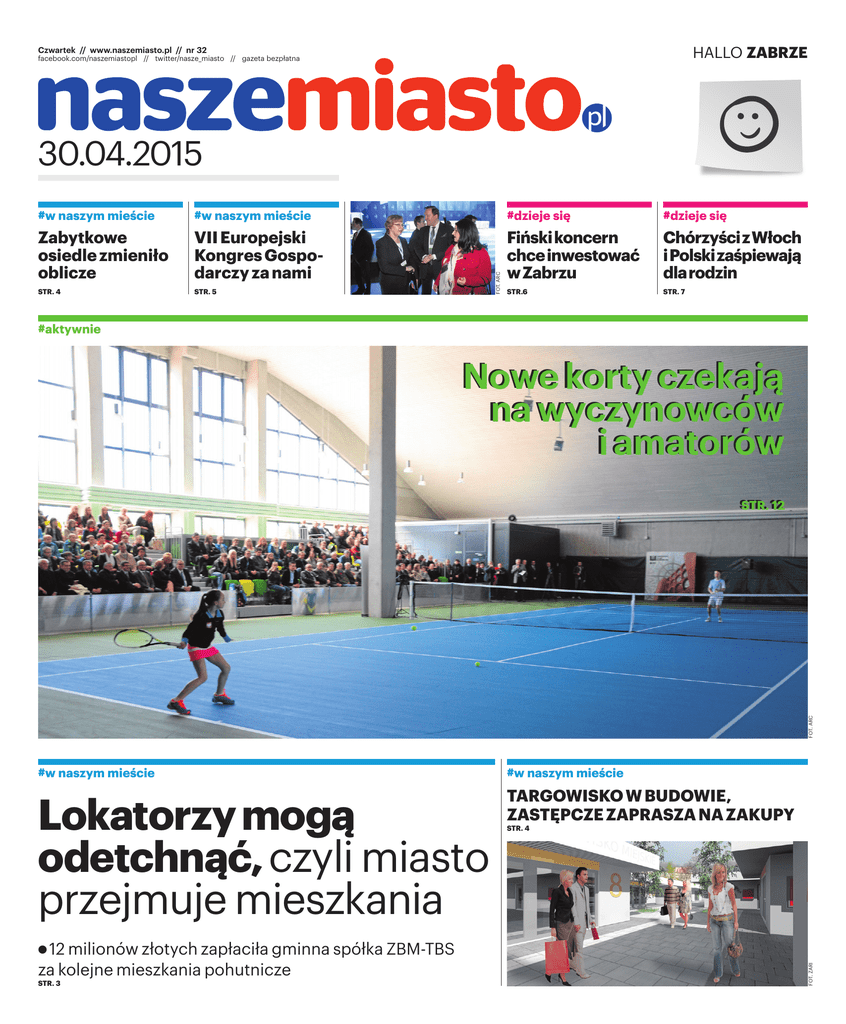 HALLO ZABRZE Czwartek // www.naszemiasto.pl // nr 32 facebook.com/naszemiastopl // twitter/nasze_miasto // gazeta bezpłatna 30.04.2015 #w naszym mieście #dzieje się #dzieje się Zabytkowe osiedle zmieniło oblicze VII Europejski Kongres Gospodarczy za nami Fińskikoncern chceinwestować wZabrzu ChórzyścizWłoch iPolskizaśpiewają dlarodzin STR. 4 STR. 5 STR.6 STR. 7 FOT. ARC #w naszym mieście #aktywnie Nowe korty czekają na wyczynowców i amatorów FOT. ARC STR. STR. 12 12 #w naszym mieście Lokatorzy mogą odetchnąć, czyli miasto przejmuje mieszkania #w naszym mieście TARGOWISKO W BUDOWIE, ZASTĘPCZE ZAPRASZA NA ZAKUPY STR. 4 za kolejne mieszkania pohutnicze STR. 3 FOT. ZARI a 12 milionów złotych zapłaciła gminna spółka ZBM-TBS 2 #hallo zabrze CZWARTEK, 30 KWIETNIA 2015 NASZEMIASTO www.naszemiasto.pl 02 OKAZUJESIĘ,ŻEMODAJESTJUŻTERAZTAKBARDZODEMOKRATYCZNA,ŻENIEMAPRZEZNACZONYCHRZECZYDLAWIEKU JOANNA PRZETAKIEWICZ DLA AGENCJI NEWSERIA #hallo zabrze #rekord Krzysztof Hołowczyc, kierowca rajdowy FOT. GRZEGORZ JAKUBOWSKI Nie boję się ryzyka. Nauczyłem się żyć z bólem i go przezwyciężać Z sosem smakują najlepiej Uczestnicy akcji przygotowali 14.141 klusek możnawkonkursie„Podwórko NIVEA”.Głosywramachpierwszegoetapurywalizacjioddawać możnado30kwietnianastronie www.nivea.pl/podworko.Plebiscytwyłonidwadzieściazwycięskichlokalizacji.Kolejnych20poznamyzkońcemmaja.Stawką wkonkursiesąnowoczesne iestetyczneplacezabaw,których łączniepowstaćma40. Śląsk uporządkowany Utrwalali świat na kliszy DO 8 maja w Galerii Miejskiego ŚRODOWISKO ikulisypracysłyn- nychśląskichfotografówprasowychprzybliżaksiążka„Poziom nadwałamy.Śląskafotografia prasowaw„TrybunieRobotniczej”i„DziennikuZachodnim” 1960-1989”.JejautorArkadiusz Gola,nacodzieńfotoreporter „DziennikaZachodniego”,opowiadałoniejpodczasspotkania zorganizowanegowMiejskiej BibliotecePublicznejwZabrzu. Książkapowstałanapodstawie rozmówprzeprowadzonych m.in.zJózefemMakalem,StanisławemGadomskim,WładysławemMorawskim,Jackiem Tomeczkiem,ZygmuntemWieczorkiemczyBogdanem Kułakowskim,którzypracowali wtamtymczasiewdwóchnajwiększychśląskichdziennikach regionalnych.Znalazłosięwniej wieleunikatowychzdjęć,które zpewnościąwartozobaczyć. JUL #zagłosuj Dla zrozumienia autyzmu Ośrodka Kultury podziwiać można wystawę grafiki profesora Romana Staraka „Opowieść o Śląsku”. Prezentowane prace przedstawiają industrialny krajobraz, sprowadzony do uporządkowanych form czarnych płaszczyzn, pionów i poziomów. Prof. Roman Starak uprawia rysunek, malarstwo i grafikę warsztatową. Jest członkiem Związku Polskich Artystów Plastyków okręgu gliwicko-zabrzańskiego. Jego prace podziwiali wielbiciele sztuki m.in. w Wielkiej Brytanii, Brazylii, Włoszech, Francji, Szwecji, Belgii, Meksyku oraz na Węgrzech. Grafiki Romana Staraka znajdują się m.in. w Muzeum Narodowym w Warszawie, Muzeum Górnośląskim w Bytomiu, Muzeum Okręgowym w Bielsku-Białej, Muzeum we Wrocławiu, Muzeum Śląskim w Katowicach, Muzeum w Skopie, Muzeum Sztuki Nowoczesnej w Brazylii czy Muzeum Narodowym w Montrealu. Wstęp na wystawę w MOK jest bezpłatny. #zdrowie Byływystępymuzyczne, przedstawienia,aprzede wszystkimokazjadoporozmawianiazosobami,które zproblememautyzmuspotykająsięnacodzień.Naplacu Wolnościzorganizowanyzostał9kwietniahappening „Autyzmwchmury”.Przygotowanogowramachkampaniiinformacyjno-edukacyjnej „NiebieskieZabrze”. # jul Happening na pl. Wolności #profilaktyka „Grajmywjednejdrużynie!” tohasło15.jużedycjiogólnopolskiejkampaniiprofilaktycznejZachowajTrzeźwy Umysł.Jejzabrzańskaodsłonazostałazainaugurowana15 kwietniawsiedzibiePoradni JUL Laureaci konkursu „Pokażcie się!” Psychologiczno-Pedagogicznej. FOT. ARC Jedna z prac artysty zwracają uwagę, że dziecko jest niegrzeczne, piszczy, krzyczy. A to nie jest przejaw złego wychowania, tylko choroby. Mam nadzieję,żedziękitakimakcjomjak ta, zmieni się mentalność ludzi i będzie więcej zrozumienia i tolerancji dla tej choroby – mówi Ewelina Rogoń, mama 6-letniego Oskara. Kwietniowy happening został zorganizowanyprzezUrządMiejski,PoradnięPsychologiczno-Pedagogiczną,StowarzyszenieKontaktorazZespółSzkółSpecjalnych nr41wZabrzu. Pomagają w trudnym wieku dorastania Czekają place zabaw NA zieleniecpomiędzyulicami Grzybowską29-35iKosmowskiej 45-55wRokitnicyorazskwer uzbieguulicWitkacegoiPrusa wdzielnicyHelenkagłosować aa-Zauważyliśmy,żecośjestnie tak, kiedy syn miał półtora roku. Nie reagował na nasze wołania, błądziłwzrokiem,słabobyłouniego z mową. Okazało się, że przyczynątychzachowańjestautyzm –opowiadaIzabelaSpojda,mama 4-letniegoDaniela.-Będącrodzicemautystycznegodziecka,trzebamiećwsobiemnóstwocierpliwościisamozaparcia.Trzebawalczyć,bydzieckojaknajlepiejprzystosować do życia. Najgorsza jest nietolerancja otoczenia – dodaje. - Ludzie nie mają pojęcia, z czym wiąże się autyzm i często FOT. ARC #przeczytaj FOT. ARC #wybierz się FOT. ARC Arkadiusz Gola FOT. ARC JUL P ÓŁtonyziemniaków,120kilogramówmąki,200jajekiponad stoparrąkdopracytozestaw,dziękiktóremuwZabrzupadłwyjątkowyrekord.UczniowieZespołu SzkółSpożywczychorazkucharze zrestauracji„NiezłeZiółko”iStowarzyszeniaArtGastronomica ustanowiligowkulaniuklusekśląskich.Wciągu3,5godzinyprzygotowaliichdokładnie14.141.Rekordznajdziesięwnajbliższym wydaniuksiążki„Polskierekordy iosobliwości”. -Myśleliśmyotakiejakcjijużrok temu.Chcieliśmysięznaleźć wksiędzerekordówGuinessa,ale usłyszeliśmy,żekluskiśląskienie sąznanenaświecieimamyrobić zwykłekluski.Amytakichnie chcieliśmy,bopromujemyZabrze iŚląsk-mówiUrszulaSurelHildebrand,dyrektorZespołu SzkółSpożywczychwZabrzu. Ajakzgodniepodkreślaliuczestnicyzabawy,wklusceśląskiejnajważniejszajestdziurkanasos.Im większa,tymlepiej! aa - Dobre wzorce są niezwykle istotne.Takampaniaświetniewpisuje się w dzi