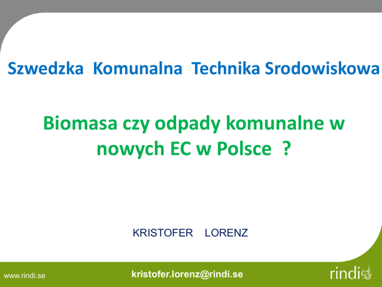 Szwedzka Komunalna Technika Srodowiskowa Biomasa czy odpady komunalne w nowych EC w Polsce ? KRISTOFER www.rindi.se LORENZ [email protected] Vårgårda Rindi Energi AB Spolki w Szwecji 100% Rindi Flen AB Rindi Västerdala AB Kombinat Energetyczny Rindi Hörby AB Rindi Sjöbo AB Rindi Tomelilla AB Rindi Vingåker AB Rindi Gnesta AB Rindi Sunne AB Vansbrofästet AB Spolki zagraniczne Rindipol S A Polska Cieplownia, Elektrocieplownia Biopal Sp z.oo Polska Produkcja biomasy Sunne Energi AB Rindi EC Kolobrzeg Polska Elektrocieplownia Rindi Vadstena AB Daimyo Rindi Energy AS Norwegia Odpady komunalne Rindi Älvdalen Kombinat Energetyczny RINDIBEL Bialorus Serwis lesny, Produkcja biomasy energetyka Spolki w Szwecji 50% z udzialem komunalnalnym Filipstads Värme AB Vårgårda Värmecentral AB Bysjön 1975 Zasady regulujace gospodarke odpadami Ramy prawne 100 przepisów ustawowych i wykonawczych Instrumenty ekonomiczne Podatki skladowiskowe i podatki od spalania Informacja-Edukacja / Opinia publiczna FAKTY –SZWECJA 2002 • Zakaz deponowania odpadow mozliwych do produkcji energii-frakcji energetycznej odpadow 2005 • Zakaz deponowania odpadow organicznych 2006 • Podatek od spalania odpadow domowych. 2009-508 SEK/ton bez produkcji energi elektrycznej ILOŚĆ ODPADÓW UZYTYCH DO PRODUCJI ENERGII W SZWECJI Elektrociepłownie Kotły wodne Zrodlo-Profu 2010-09-01-zniknie podatek na spalanie odpadow domowych. Zastapi go zwiekszenie podatku na CO2 o ca.0,03 pln /kg CO2 PODATEK OD SPALANIA ODPADOW ODZYSK ENERGII Z ODPADOW 2009 31 Ilosc instalcji produkujacych energie z odpadow 4 566 810 ton 2 273 840 ton + 2 292 970 ton /4,7 % do 2007 13,7 TWh odzyskano z odpadow 12,2 TWh - energii cieplnej - dla 820 000 domkow 1,5 TWh el - energi elektrycznej dla 255 000 domkow MOZLIWOSCI OBROBKI ODPADOW W SZWECJI Obróbka biologiczna Produkcja energii Inwestycje SPALANIE 21 MLD SEK 2000-2012 Zrodlo-Profu Instalacje CHP na odpady w Szwecji N S # S Avfallsforbranning.shp # Primvag.shp Riksvag.shp Europavg.shp Landsgrans.shp 0 100 S # 200 Kilometers 31 instalcji CHP na odpady S ## S Przepisy prawne jest bardzo S # zaostrzone w porownaniu z S # innymi paliwami S # S # S # S # # S S # Swiatowy lider w uzyskiwaniu energi S # S # S# # S # S S # elektrycznej i ciepla z odpadow S# S S# # S # S # S # S # S # S # S # # S S # S # Rynek Szwedzka Komunalna Technika Srodowiskowa Uslugi 1. Energia elektr 2. Siec elektr 3. Cieplownictwo 4. Woda pitna 5. Kanalizacja 6. Odpady 7. Komp. siec 8. Internet/tele 9. Ulice 10. Parki 11. Service 12. Doradztwo Borlänge Spolki Park Infrastruktura El, Comm. Distr heating Borlänge Energi Street Water and sewage Produkcja: - energi elekt - ciepla woda - woda pitna - internet services Treating of : - kanalizacja - odpady Infrastruktura dla 50 000 mieszkancow Gmina Borlänge Siec wodna 600 km Wodociagi 450 km Odpady 5.000 zbiornikow/ dziennie Siec elktryczna 2.000 km Drogi rowerowe i ulice 500 km Parki i trawniki 6.000.000 m2 Siec Com IT/TV/IP (2000 km) Siec cieplownicza 600 km Plan czasowy CHP Wczesne konsultacje wg Prawa Srodowiskowego Uzyskanie nowych warunkow srodowiskowych Zamowienie urzadzen Rozpaczecie prac ziemnych Rozpoczecie prac konsrukcyjnych obiektu Zakonczenie prac ziemnych Rozpoczecie prac technologicznych 250 zatrudnionych na miejscu Kociol zamontowany Oczyszczanie spalin zamontowane Turbina zamontowana Produkcja pary Przejecie obiektu do eksp 2005 2006 2007 2008 2009 Projekt P7 Produkcja energi elektr./cieplnej 7 / 23 MW • Biomasa i odpady komunalne- 80 000 ton • Nowe zezwolenie srodowiskowe 2006 • Przejecie przez BE Styczen 2009 • Koszt kalkulowany inwestycji 55 Mln Euro • Budowa –wykonawstwo - 6 gl.wykonawcow 2010-03-17 Dane kotla Moc para 26 MW + 15% nadprodukcja 23 MW cieplo , 7 MW el Ilosc paliwa 10,5 ton/h Paliwo 8-15 MJ/kg Para 40 bar / 400 º Koszt kotla CHP 250 MSEK Ex turbin,ukl.oczyszczania spalin Eksploatacja Oplata na ”bramie” > 500SEK/ton MSW (tax 78 SEK/ton) Energia elektryczna : ceny rynkowe Nie ma zadnych certfikatow Obsluga: 6 zmianna kazdej 3 osoby Skladownie popiolow : 103 €/ton (0,5 ton/h) Wapno: 103 €/ton Gwarancje FGC Pyl 7 mg/m3n (srednio dziennie) HCL 10 mg/m3n (daily average) SO2 40 mg/m3n (daily average) Hg 0,02 mg/m3n (6% O2 dg) Dioxyny 0,08 ng/m3n Nie ma szlamu z FGC Oplaty w Borlänge z podatkiem i 25 % VAT Oplaty za odpady 1750 SEK/rok co 14 dni, 190 l zbiornik and a 130 l zbiornik na odp.biologiczne Woda 2000 SEK/rok Ogrzewanie dom jednorodzinny - Oplata stala 775 SEK/year - Oplata zmienna 0,57 SEK/kWh Plany Instalacja centralnego chlodu , PC absorpcyjna Zwiekszenie wykorzystanie ciepla odpadowego z przemyslu lokalnego Zmniejszanie zuzycia ropy i energii elektrycznej w systemie grzewczym Zwiekszanie zuzycia biomasy Domnarvets Järnverk 1960 PRZYKLAD NR 1 Odzysk energii z 130 000 ton odpadu ZO CM Dostawa do miasta Ca 2 000 000 GJ 130000 ton WYWÓZ ODPADÓW 3 % odzysk Kombinat Energetyczny odpad komunalny oraz odpady lesno-uprawne Material Jednostka Wariant regionalny Odpady komunalne GWh/rok 309 / 130 000 ton Biomasa GWh/rok 209 / 86 000 ton Energia elektryczna GWh/rok 133 / 69 odpady -64 bio Sprzedaż ciepła GWh/rok 349 / 226 odpady -123 bio Kupno ciepła GWh/rok 0 tony/rok 11 606 tony/rok 2 902 tony/rok 951 tony/rok 951 Żużel z odpadów komunalnych Popiół lotny z odpadów Popiół gruntowy z biopaliw Popiół lotny z biopaliw Sprawność energetyczna % 93% schladzacz spalin ? Energia elektryczna ? 133 GWh Miasto 128 GWh CM 130 000 ton KE 231 GWh 836 000 GJ 349 GWh 1 260 000 GJ 40% 60% Ciepło do miasta 580 GWh rocznie 2 000 000 GJ 100% ciepła ZO CM Exempel på dekorbild och text www.rindi.se Przyklad nr 2 Porównanie stosowania różnych paliw w produkcji podstawowej Założenia i metody obliczeniowe 2008-08-31 . Obciążenia Produkcja ciepla Moc cieplna 267 91 GWh MW 13.8 2.1 22 17 58 73 €/MWh €/ton €/ton CO2 €/MWh €/MWh €/MWh 6 20 2 000 % Lata €/år Koszty Cena węgla Opłata środowiskowe Emisja CO2 Biop