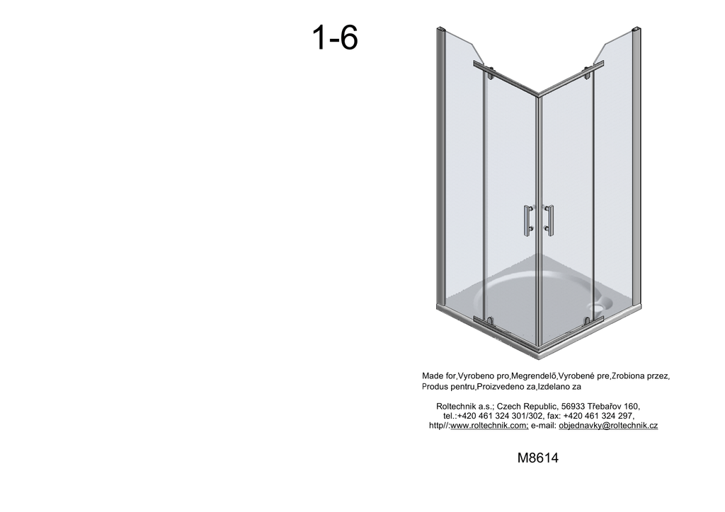 1-6 Made for,Vyrobeno pro,Megrendelő,Vyrobené pre,Zrobiona przez, Produs pentru,Proizvedeno za,Izdelano za Roltechnik a.s.; Czech Republic, 56933 Třebařov 160, tel.:+420 461 324 301/302, fax: +420 461 324 297, http//:www.roltechnik.com; e-mail: [email protected] M8614 BUILDING OPERATION-STAVEBNÍ PŘIPRAVENOST-ÉPÍTÉSZETI ELŐKÉSZÍTÉS STAVEBNÁ PRIPRAVENOSŤ-PRACE BUDOWLANE-OPERATIUNE DE CONSTRUIRE PRIPREMLJENOST ZA GRADNJU-PRIPRAVLJENOST ZA GRADNJO BUILDING OPERATION-STAVEBNÍ PŘIPRAVENOST-ÉPÍTÉSZETI ELŐKÉSZÍTÉS STAVEBNÁ PRIPRAVENOSŤ-PRACE BUDOWLANE-OPERATIUNE DE CONSTRUIRE PRIPREMLJENOST ZA GRADNJU-PRIPRAVLJENOST ZA GRADNJO Atentie! Inaintea achizitionarii verificati produsul cu atentie sa nu aiba defecte mecanice sau de alt fel. Nicio reclamatie nu va fi acceptata daca aceasta va fi facuta dupa instalare. • Cabina de dus (sau Cabina cu hidromasaj) se poate instala doar intr- baie cu faianta si gresie deja montata. • Produsul trebuie sa fie demontabila fara nicio lucrare de constructie in prealabil. • Toate zonele de contact trebuie siliconizate inainte de punerea in operatie. Beware! Before purchase check the product carefully for mechanical or other damage. No claims of this kind will be accepted after the installation. • Shower enclosure (or hydromassage cabin) is possible to be installed only to the fully finished bathroom with installed tiles on the walls and with finished flooring. • Product has to be moveable without any construction work. • All contact areas are to be siliconized prior setting in operation. RO GB Pozor!!! - při koupi výrobku a před jeho instalací jej pečlivě překontrolujte, zda není mechanicky nebo jiným způsobem poškozen. Po instalaci již nebude brán ohled na poškození tohoto typu. • Sprchový kout instalujte do předem stavebně připraveného prostoru. Tento kout musí být instalován do prostoru kompletně obloženého obklady a dlažbou. • Výrobek musí být vyjímatelný bez násilných stavebních zásahů!!! • Před uvedením koutu do provozu je nutné všechny styčné plochy řádně zasilikonovat. CZ Figyelem!!! A termék megvásárlásakor ill. a beépítés előtt ellenőrizzük, hogy a termék mechanikailag nem károsodott. Az installálás után az ilyen típusú károsodásokért a gyártó sem a forgalmazó nem vállal felelősséget. • A zuhanykabint építészeti szempontból előkészített térbe építsük be. Ezt a kabint olyan helységbe telepítsük, ahol a falak és padló is tökéletesen burkolt állapotban van. • A terméket úgy kell beépíteni, hogy az bármikor kiemelhető legyen építészeti beavatkozások nélkül. • Mielőtt a kabint üzembe helyeznénk, az összes érintkező felületet kenjük be szilikonnal H Pažnja!!! - proizvod pažljivo prekontrolirajte prilikom kupovine, te prije njegove instalacije da ne bi bio oštećen mehanički ili nekako drugačije. Nakon instaliranja više se neće uzimati u obzir oštećenja ovog tipa. • Kabinu za tuširanje instalirajte u prostor koji je građevinski unaprijed pripremljen. Ova kabina mora se instalirati u prostor koji je u potpunosti obložen podnim i zidnim pločicama. • Proizvod mora biti moguće izvaditi bez nasilnih građevinskih intervencija!!! • Prije upotrebe tuša potrebno je sve dodirne površine dobro osigurati silikonom. HR SL • Kabino za prhanje namestite v vnaprej gradbeno pripravljen prostor. Kabino je treba namestiti v prostor, ki je kompletno opremljen z oblogo in s ploščicami. • Pred oporabo kabine je treba s silikonom temeljito zatesniti vse stične ploskve ter priviti vse spoje razdelilnih cevi. • Preden vstavite kabino v ogradni prostor, je treba pregledati tesnost vseh razdelilnih cevi. POZOR!!! - pri kúpe výrobku a pred jeho inštaláciou výrobok dôkladne či nie je mechanicky alebo iným spôsobom poškodený. SK prekontrolujte, Po nainštalovaní výrobku, v prípade poškodenia, už nebude uznaná reklamácia na výrobok. • Sprchový kút inštalujte do vopred stavebne pripraveného priestoru. Tento kút musí byť inštalovaný do priestoru kompletne obloženého obkladmi a dlažbou. • Výrobok musí byť vyberateľný bez násilných stavebných zásahov!!! • Pred uvedením kúta do prevádzky je nutné všetky styčné plochy riadne zasilikónovať. Uwaga! Przy zakupie produktu oraz przed jego instalacją należy dokładnie sprawdzić, czy nie został on mechanicznie lub w inny sposób PL uszkodzony. Po zainstalowaniu produktu tego typu, uszkodzenia nie będą uwzględniane. • Kabiny prysznicowe(lub kabiny do hydromasażu)należy instalować w łazienkach w pełni wykończonych, muszą być wyłożone płytkami na ścianach i wykończoną posadzką. • Produkt musi być zdolny do przemieszczeń bez wykonywania jakichkolwiek prac budowlanych. • Do niewypełnionych przestrzeni należy użyć silikonu. POZOR! OB NAKUPU IN PRED MONTAŽO IZDELKA PREVERITE, DA BLAGO NI MEHANSKO POŠKODOVANO. PO MONTAŽI NE MOREMO PRIZNATI REKLAMACIJE MEHANSKIH POŠKODB . 2-6 8x A B A 3-6 4 9 7 C 3 X 800 900 11 8 8 D D 4x Y 770 - 785 870 - 885 10 4 11 10 3 1 1 C 8x B 8x 5 4 5 6 4-6 E H 12 F 12 E F G 13 13 H G 2 2 J K 14 J K 5-6 L 4x M M L N N 16 17 O O 15 15 18 6-6 1. 2x 2. 2x 3. 2x 4. 2x 5. 8x 10. 12x 6. 8x 11. 12x 13. 2x 3,9x35 7. 12x 16. 6x 12. 2x 8. 4x 17. 6x 14. 2x 9. 4x 15. 2x 3,9x11 18. 6x