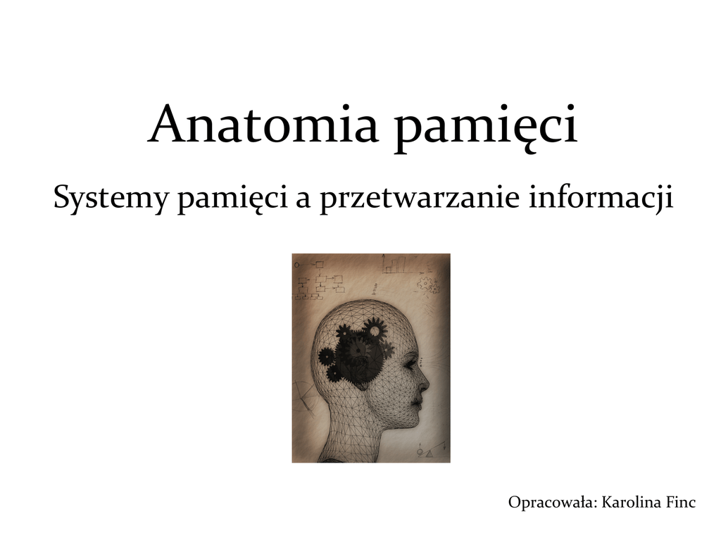 Anatomia pamięci Systemy pamięci a przetwarzanie informacji Opracowała: Karolina Finc