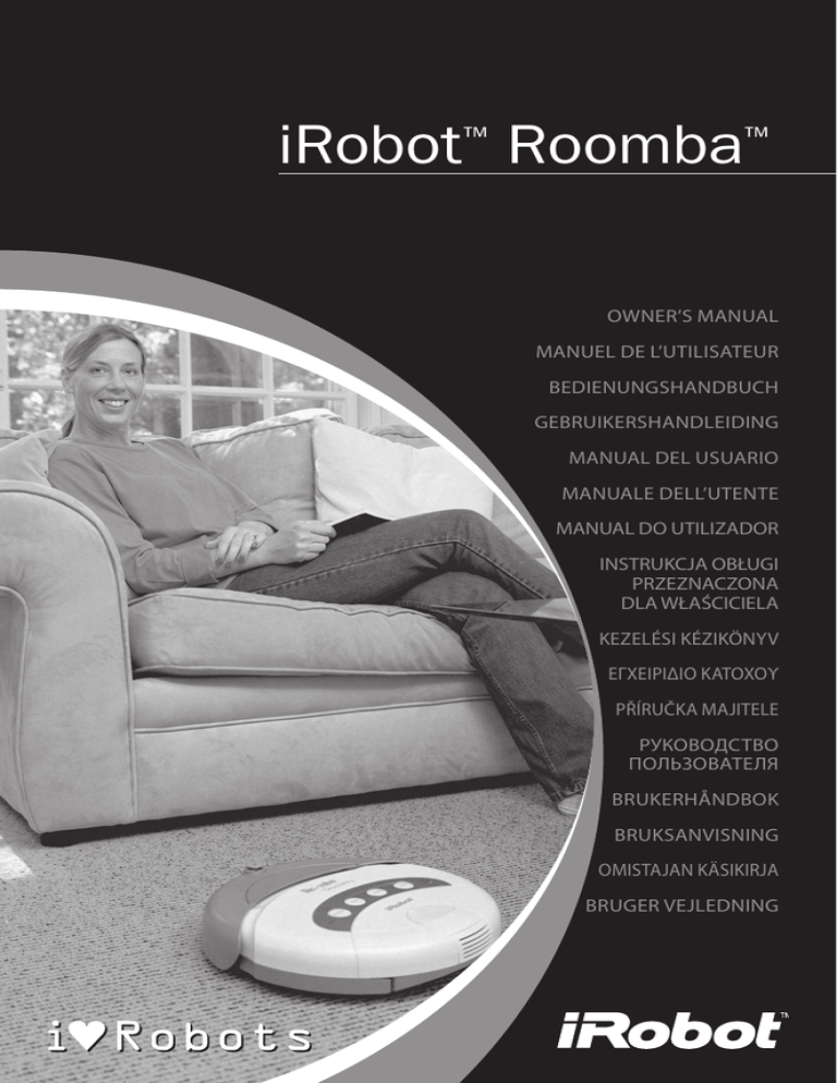 iRobot™ Roomba™ OWNER’S MANUAL MANUEL DE L’UTILISATEUR BEDIENUNGSHANDBUCH GEBRUIKERSHANDLEIDING MANUAL DEL USUARIO MANUALE DELL’UTENTE MANUAL DO UTILIZADOR INSTRUKCJA OBŁUGI PRZEZNACZONA DLA WŁAŚCICIELA KEZELÉSI KÉZIKÖNYV ΕΓΧΕΙΡΙΔΙΟ ΚΑΤΟΧΟΥ PŘÍRUČKA MAJITELE РУКОВОДСТВО ПОЛЬЗОВАТЕЛЯ BRUKERHÅNDBOK BRUKSANVISNING OMISTAJAN KÄSIKIRJA Bruger vejledning Table of Contents English.............................................................................................3 Français............................................................................................9 Deutsch............................................................................................15 NederLands......................................................................................21 Español.............................................................................................27 Italiano..............................................................................................33 Portugués........................................................................................39 Polski................................................................................................45 Magyar..............................................................................................51 ΕΛΛΗΝΙΚΑ...........................................................................................57 Türkçe ..............................................................................................63 ČESKY . ...............................................................................................69 РУССКИЙ.............................................................................................75 Norsk................................................................................................81 Svenska............................................................................................87 Suomi................................................................................................93 Dansk................................................................................................99 Budowa Model 5105 Model 5210 Czujnik wirtualnej ściany Czujnik wirtualnej ściany Rączka Port szeregowy Zwalnianie pojemnika. Rączka Zwalnianie pojemnika. Port szeregowy Gniazdo ładowarki akumulatora Gniazdo ładowarki akumulatora Przyciski i wskaźniki Aktywne reagowanie na zabrudzenia (Dirt Detect™) Wskaźnik stanu (Status) Przycisk zasilania (Power) Przycisk czyszczenia plam (Spot) Przycisk czyszczenia (Clean) Wskaźnik naładowania Przycisk maksymalnego czyszczenia (Max) Wskaźnik stanu (Status) Aktywne reagowanie na zabrudzenia (Dirt Detect™) Przycisk czyszczenia Przycisk Przycisk (Clean) zasilania plam Przycisk (Power) (Spot) maksymalnego czyszczenia (Max) Kolor wskaźnika akumulatora Stan baterii Wskaźnik stanu (Status) Status misji sprzątania Pulsujący bursztynowy Ładuje się Zielony Misja zakończona Zielony Pełna Bursztynowy Bursztynowy Częściowo naładowana Misja przerwana lub wyczerpana bateria Czerwony Prawie pełna Migający czerwony Całkowicie rozładowana 45 Działanie W jaki sposób sprząta Roomba Odkurzacz Roomba jest robotem pracującym odmiennie, niż większość ludzi czyszczących podłogi. Roomba wykorzystuje system wykrywania iRobot’s AWARETM do określenia najlepszego sposobu przejścia i wyczyszczenia każdej części podłogi. Podczas sprzątania, Roomba oblicza optymalną ścieżkę czyszczenia i decyduje kiedy użyć jednego z różnych trybów sprzątania: Wzdłuż ścian: Sprząta po obwodzie pokoju i przemieszcza się wokół mebli oraz przeszkód. Po linii spirali: Czyści obszar w kształcie koła. Poruszanie się po powierzchni pomieszczenia: Zapewnia wyczyszczenie całej powierzchni. Aktywne reagowanie na zabrudzenia (Dirt Detect™): Wykrywa brud i dokładniej czyści w takich miejscach.. PORADA: R oomba potrzebuje około 45 minut na sprzątnięcie pokoju średniej wielkości. Czyści tę samą powierzchnię podłogi kilka razy, aby zapewnić jej całkowite oczyszczenie. PORADA: A by przyspieszyć czyszczenie, sprzątnij śmieci z podłogi i użyj wirtualnej ściany (Virtual Wall), aby ograniczyć pracę Roomby tylko do jednego pokoju. PORADA: P rzewody należy podnieść z podłogi , frędzle od dywanu włożyć pod dywan, aby robot Roomba nie stanął na nich. 46 Instrukcja obsługi przeznaczona dla właściciela zautomatyzowanego odkurzacza iRobot Roomba Rozpoczęcie użytkowania 1 Włóż akumulator do odkurzacza Roomba. 4 U staw wirtualną ścianę (Virtual Wall®), aby trzymać odkurzacz Roomba tam, gdzie chcesz. Potrzebne są 2 baterie „D”, nie dołączone Pokrywa baterii 2 Ustaw zasięg wirtualnej ściany na zakres od 1 do 3 metrów. U staw stację samoczynnego ładowania odkurzacza Roomba (Self-Charging Home Base™) (Dołączona do modelu 5210) 3 N aładuj odkurzacz Roomba w jeden z dwóch sposobów: Lub Zasięg Pokrywa baterii Ustaw wirtualną ścianę w drzwiach lub w innym miejscu, które chcesz zablokować. Kształt wiązki 5 Sprzątaj z odkurzaczem Roomba Naciśnij zasilanie (Power), a następnie wybierz tryb czyszczenia. K iedy odkurzacz Roomba nie jest używany, musi być zawsze włączony do gniazdka lub umieszczony na stacji samoczynnego ładowania. Model Czas ładowania: 5105 7 godzin 5210 3 godzin 47 Tryby czyszczenia (Clean) Odkurzacz Roomba będzie czyścił zgodnie z wybranym trybem. Odkurzacz Roomba, w zależności od modelu, ma maksymalnie cztery tryby czyszczenia: Tryb czyszczenia (Clean) Odkurzacz Roomba automatycznie oblicza wymiar pomieszczenia i odpowiednio dostosowuje czas czyszczenia. Odkurzacz Roomba może sprzątać do 60 minut. Tryb plam (Power) Odkurzacz Roomba będzie poruszał się po spirali, w zasięgu obszaru o średnicy około 1 metra, a następnie wróci do miejsca skąd rozpoczął, czyszcząc intensywnie zlokalizowany obszar