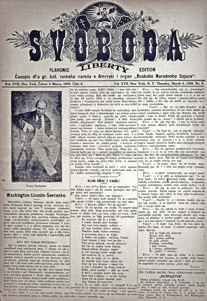 Rok XV II. New York, Cetver 4 Marca, 1909. Cislo 8.