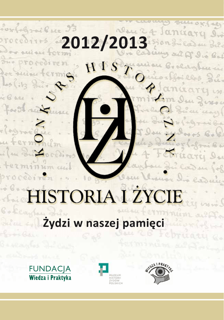 2012/2013 Żydzi w naszej pamięci TEMATY POPRZEDNICH KONKURSÓW I. 2002/2003 Moja mała ojczyzna we wspólnej Europie II. 2003/2004 Czy potrafimy rządzić się sami? Społeczność lokalna dawniej i dziś III. 2004/2005 Buntownicy czy konformiści? Doświadczenia pokoleń IV. 2008/2009 Polacy i Niemcy – wczoraj, dziś i jutro V. 2009/2010 Rzeczpospolita wielu narodów. Dziedzictwo przeszłości, szansa na przyszłość VI. 2010/2011 Prace i dnie – praca jako zawód i powołanie w doświadczeniach pokoleń VII. 2011/2012 Usłyszane przy stole, znalezione w szufladzie, czyli przeszłość w rodzinnej pamięci 2012/2013 Żydzi w naszej pamięci Patroni honorowi MINISTER EDUKACJI NARODOWEJ, Krystyna Szumilas Profesor Władysław Bartoszewski Partnerzy naukowi MUZEUM HISTORII ŻYDÓW POLSKICH UNIWERSYTET w BIAŁYMSTOKU Partnerzy DOM SPOTKAŃ Z HISTORIĄ CENTRUM EDUKACJI OBYWATELSKIEJ MUZEUM WOJSKA POLSKIEGO MUZEUM PAŁAC W WILANOWIE Partner medialny TVP HISTORIA Sponsorzy SPOŁECZNY INSTYTUT WYDAWNICZY „ZNAK” STOWARZYSZENIE WSPÓLNOTA KULTUROWA „BORUSSIA” WYDAWNICTWO LEKTORKLETT DANUTA KOSIM-KRUSZEWSKA NOTARIUSZ Konkurs historyczny „Historia i Życie” dla młodzieży licealnej Edycja VIII – 2012/2013 Żydzi w naszej pamięci Organizatorzy FUNDACJA WIEDZA I PRAKTYKA Prezes Zarządu Witold Olejnik WYDAWNICTWO WIEDZA I PRAKTYKA Prezes Zarządu Grzegorz Giza Rada programowa Witold Konieczny, Roman Kruszewski, Wojciech Łukowski, Witold Olejnik, Maria Prosińska-Jackl, Krystyna Szelągowska, Wanda Tycner Jury Krzysztof Bielawski, Wojciech Łukowski, Krystyna Szelągowska, Jerzy Urwanowicz, Wanda Tycner Warszawa 2013 Copyright © by Fundacja Wiedza i Praktyka, 2013 ISBN 978-83-933782-1-0 Opracowanie redakcyjne – Maria Prosińska-Jackl Opracowanie graficzne – Piotr Fedorczyk Skład broszury – 6AN Studio PR – Robert Wierzbicki Druk – Drukarnia MILLER Informacja edytorska Prace laureatów znajdujące się w publikacji konkursowej przedstawiamy Czytelnikom w kształcie bardzo zbliżonym do tego, w jakim czytali je jurorzy. Nie zmieniamy ich ani pod względem konstrukcji, ani słownictwa. Przed opublikowaniem dokonano w tekstach prac adiustacji redakcyjnej, aby wyeliminować drobne usterki, co jest obowiązkiem Wydawnictwa. Poprawiono oczywiste literówki i – w niewątpliwych miejscach – interpunkcję i ortografię. Przypisy końcowe oraz wstawione w tekst zmieniono na dolne. Poprawiono błędy gramatyczne oraz pisownię (np. „lata 30-te, 50-te” na „lata 30., 50.”). Nadano tytuły tabelom i mapom tam, gdzie ich brakowało. Uzupełniono i ujednolicono zapisy bibliograficzne oraz podpisy pod ilustracjami. Drobne niejasności objaśniono w przypisach; uzupełnienia zaznaczono nawiasami kwadratowymi. Każda praca po adiustacji została przesłana Autorce/Autorowi do sprawdzenia i uzyskała akceptację do druku. Cechą charakterystyczną wielu prac nagrodzonych w tegorocznym konkursie jest duża liczba ilustracji dołączonych przez Autorów. Do publikacji wybrano te, które spełniają minimum norm technicznych i – zdaniem redakcji – są najściślej związane z tekstem. Wyeliminowano motywy powtarzające się (np. liczne fotografie macew). W związku z tym liczba fotografii i zeskanowanych dokumentów towarzyszących pracom jest z reguły mniejsza niż w wersjach oryginalnych, znanych jurorom. W wypadku dwóch prac dotyczących Staszowa, zawierających kilka takich samych ilustracji, dobór przeprowadzono tak, aby zdjęcia się nie powtarzały. MPJ Żydzi w naszej pamięci PODSUMOWANIE VIII Konkurs historyczny z cyklu „Historia i Życie” Żydzi w naszej pamięci Podsumowanie Tegoroczny konkurs z cyklu „Historia i Życie” poświęcony był problematyce tysiącletniego współistnienia społeczności polskiej i społeczności żydowskiej. Organizatorom zależało nie tylko na poszerzeniu wiedzy historycznej uczestników, ale też o ich własny wkład w przywracanie pamięci o lokalnej historii Żydów i ich kulturze. Podobnie jak poprzednio, zachęcaliśmy nauczycieli i ich uczniów do samodzielnych poszukiwań śladów przeszłości w bliskim otoczeniu. Zdawaliśmy sobie sprawę, że temat „Żydzi w naszej pamięci” to poważne wyzwanie dla młodych uczestników. Zniszczenia wojenne spowodowały nieodwracalne straty w zakresie budowli, przedmiotów, pamiątek. W pamięci zbiorowej dotyczącej Żydów nastąpiło przerwanie ciągłości spowodowane Zagładą dokonaną podczas II wojny światowej, a także wymazywaniem z pamięci żydowskiego dziedzictwa w latach Polski komunistycznej. Wszystko to – przy jednoczesnym międzypokoleniowym przekazywaniu stereotypów – nie ułatwiało zadania uczestnikom. Ponadto prawda o przeszłości wyzwala ogromne emocje, ból i poczucie krzywdy, ponieważ fakty wydobywane dziś na światło dzienne często dotyczą wydarzeń traumatycznych. Skąd zatem dzisiejsza młodzież ma czerpać wiedzę przydatną w konkursie poświęconym Żydom? Czy w ogóle można stawiać takie zadanie w sytuacji, gdy wydaje się, że pamięć przeszłości odeszła wraz ze starszymi pokoleniami? Pragnęliśmy ożywić zainteresowanie tematem, pobudzając dociekliwość i spostrzegawczość w poszukiwaniu judaików, a przede wszystkim w poszukiwaniu świadków historii – osób, które dużo pamiętają i potrafią to przekazać. Pragnęliśmy, aby uczestnicy konkursu spróbowali uświadomić sobie, co sami wiedzą o Żydach, i spróbowali samodzielnie poszerzyć tę wiedzę. Zorganizowaliśmy nasz konkurs we współpracy z Muzeum Historii Żydów Polskich; we Wprowadzeniu do konkursu zachęciliśmy młodzież do korzystania z zasobów portali internetowych MHŻP i Centralnej Bazy Judaików. Na konkurs przysłano 98 prac. Choć jest ich mniej niż w zeszłym roku, to pochodzą z większej niż dotychczas liczby miejscowości (39) i większej liczby szkół (50). Prace napłynęły ze wszystkich stron Polski, przy czym większość prac