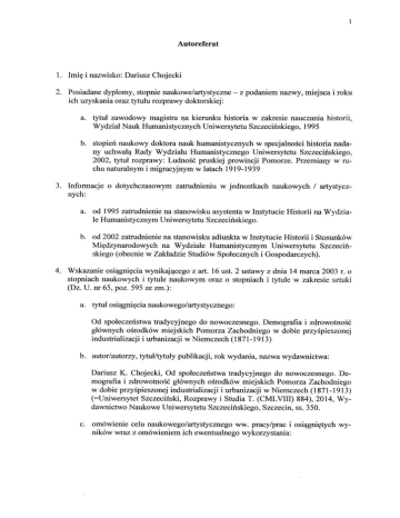 b. stopień naukowy doktora nauk humarristycziych w specjalnościhistoda nadany uchwałąRady Wydziału Humanistyczrego Uniwersytefu Szczecifskiego,