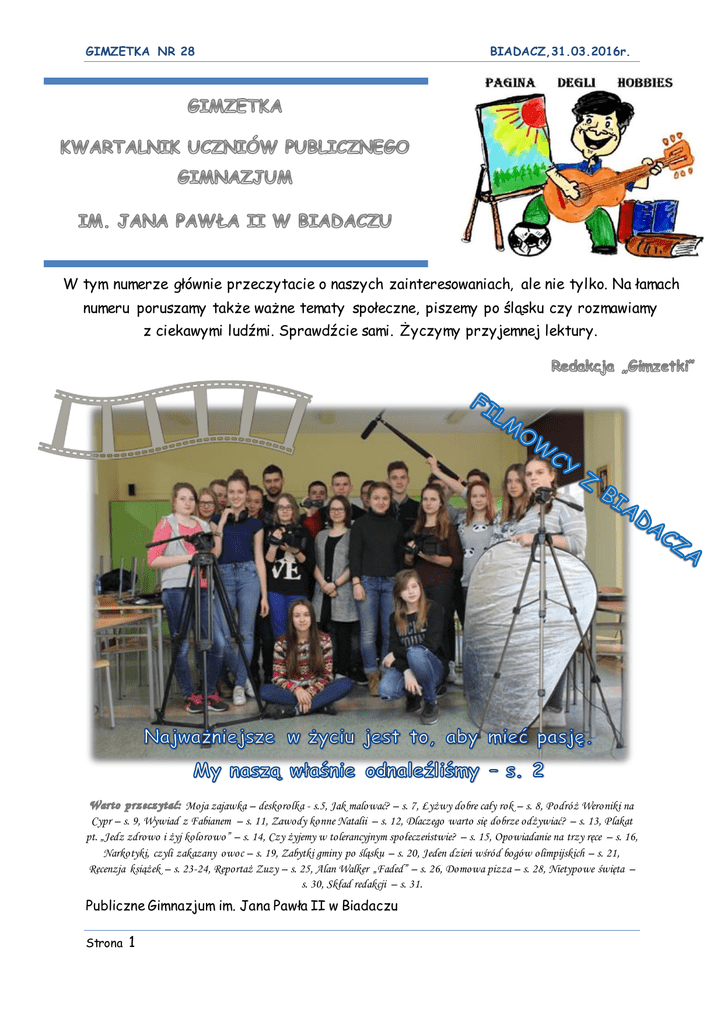 zapraszamy do lektury. - Publiczne Gimnazjum im. Jana Pawła II w
