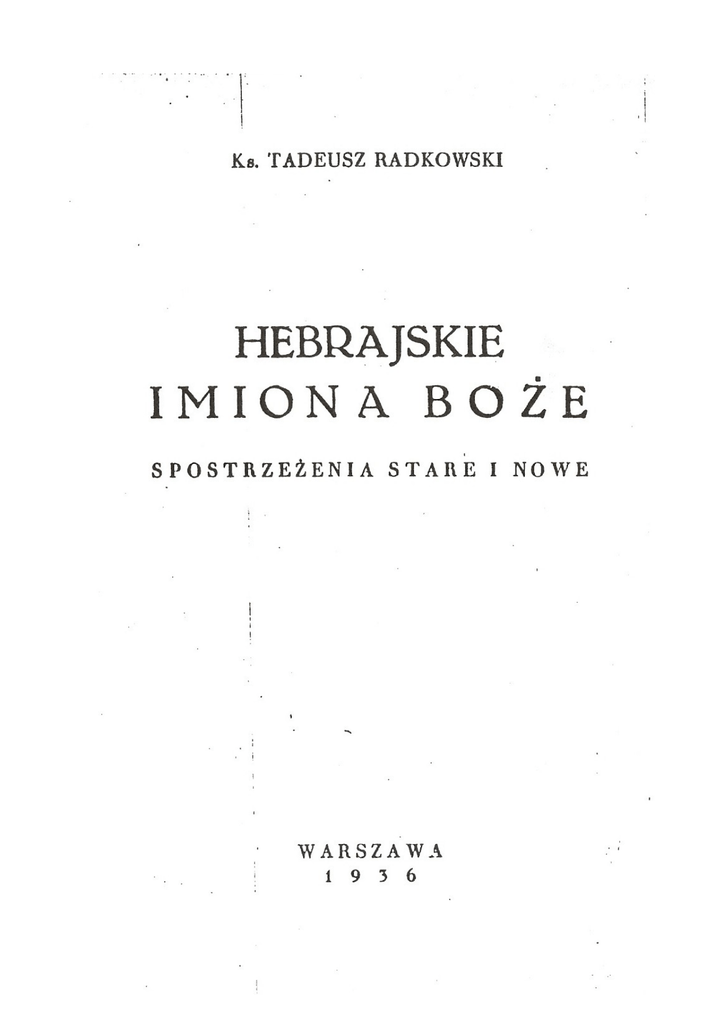 Uwagi: Skany zostały wykonane na podstawie wcześniejszych kserokopii, być może kilkukrotnych. Spis pojęć omówionych przez Tadeusza Radkowskiego w niniejszej pracy: – – – – – – str. 6 – Jhvh (Jehowa) str. 12 – Eloah i Elohim (Bóg) str. 15 – El (Bóg) str. 16 – Adonaj (Pan) str. 17 – Eljon (Najwyższy) str. 17 – Szaddaj (Wszechmocny)
