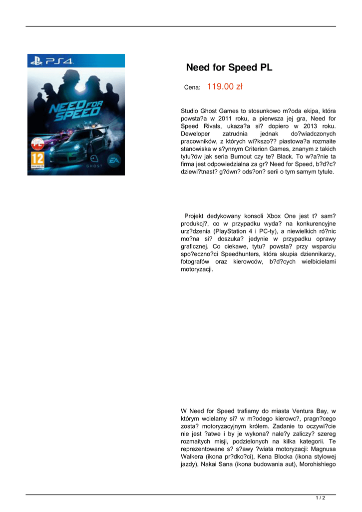 Need for Speed PL Cena: 119.00 zł Studio Ghost Games to stosunkowo m?oda ekipa, która powsta?a w 2011 roku, a pierwsza jej gra, Need for Speed Rivals, ukaza?a si? dopiero w 2013 roku. Deweloper zatrudnia jednak do?wiadczonych pracowników, z których wi?kszo?? piastowa?a rozmaite stanowiska w s?ynnym Criterion Games, znanym z takich tytu?ów jak seria Burnout czy te? Black. To w?a?nie ta firma jest odpowiedzialna za gr? Need for Speed, b?d?c? dziewi?tnast? g?ówn? ods?on? serii o tym samym tytule. Projekt dedykowany konsoli Xbox One jest t? sam? produkcj?, co w przypadku wyda? na konkurencyjne urz?dzenia (PlayStation 4 i PC-ty), a niewielkich ró?nic mo?na si? doszuka? jedynie w przypadku oprawy graficznej. Co ciekawe, tytu? powsta? przy wsparciu spo?eczno?ci Speedhunters, która skupia dziennikarzy, fotografów oraz kierowców, b?d?cych wielbicielami motoryzacji. W Need for Speed trafiamy do miasta Ventura Bay, w którym wcielamy si? w m?odego kierowc?, pragn?cego zosta? motoryzacyjnym królem. Zadanie to oczywi?cie nie jest ?atwe i by je wykona? nale?y zaliczy? szereg rozmaitych misji, podzielonych na kilka kategorii. Te reprezentowane s? s?awy ?wiata motoryzacji: Magnusa Walkera (ikona pr?dko?ci), Kena Blocka (ikona stylowej jazdy), Nakai Sana (ikona budowania aut), Morohishiego 1/2 Sana (ikona wyj?tych spod prawa) oraz grup? Risky Devil (ikona ekipy). Rozgrywka w Need for Speed na platform? Xbox ONE nawi?zuje do wcze?niejszych ods?on serii, w tym Need for Speed: Carbon czy Need for Speed: Underground. Jest to wi?c produkcja zr?czno?ciowa, w której zabawa opiera si? na przemierzaniu otwartego ?wiata. W nim na ch?tnych czeka nie tylko emocjonuj?ca fabu?a, ale tak?e mnóstwo ró?nych form aktywno?ci. Need for Speed oferuje szereg rozmaitych trybów single i multiplayer. Podstaw? s? oczywi?cie szybkie, szalone i nielegalne wy?cigi, w których liczy si? miejsce na mecie, ale to nie wszystko. Oprócz tego mo?emy bawi? si? w zawodach polegaj?cych na driftowaniu, uciekaniu przed policj? i nie tylko. Ca?o?? uzupe?nia znany ju? fanom serii system AllDrive, który odpowiada za aspekty sieciowe i spo?eczno?ciowe. W najnowszej ods?onie powróci? on w ulepszonej formie, oferuj?c m.in. ?atwiejsz? mo?liwo?? zabawy ze znajomymi. Zobacz wideo: 2/2 Powered by TCPDF (www.tcpdf.org)