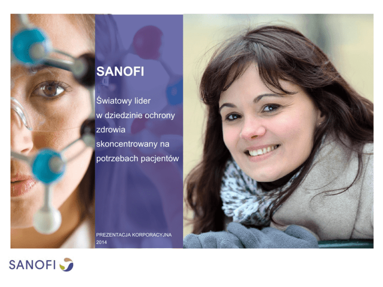 SANOFI Światowy lider w dziedzinie ochrony zdrowia skoncentrowany na potrzebach pacjentów PREZENTACJA KORPORACYJNA 2014 SPIS TREŚCI GRUPA SANOFI PLATFORMY WZROSTU INNOWACJE W OBSZARZE BADAŃ I ROZWOJU NASZA ODPOWIEDZIALNOŚĆ NAJWAŻNIEJSZE DANE LICZBOWE PREZENTACJA KORPORACYJNA 2014 2 GRUPA SANOFI PREZENTACJA KORPORACYJNA 2014 3 GRUPA SANOFI NASZE DZIEDZICTWO Długa tradycja w sektorze ochrony zdrowia BMP Sunstone, Medley, Merial, Nepentes, Zentiva, Kendricks, Oenobiol, Chattem, Acambis, Symbion, Shantha Biotechnics 2008-2010 Genzyme 2011 Sanofi-aventis 2004 Aventis 1999 Hoechst Marion Roussel 1997 Marion 1950 Rorer 1910 Connaught 1922 Roussel 1911 Hoechst 1863 Sanofi Pasteur 2004 Sanofi-Synthélabo 1999 Synthélabo 1970 Rhône-Poulenc Rorer 1990 Sanofi 1973 Delagrange 1931 Delalande 1924 Robert & Carrière 1901 Dausse 1834 Sterling 1901 Chinoin 1919 Clin Midy 1971 Institut Mérieux 1897 Midy 1718 Wittman & Poulenc 1860 PREZENTACJA KORPORACYJNA 2014 4 sprzedaż na poziomie GRUPA SANOFI SANOFI W SKRÓCIE Jesteśmy międzynarodową firmą farmaceutyczną, prowadzącą badania, rozwój, produkcję oraz sprzedaż produktów stosowanych w ochronie zdrowia. 33 mld euro* W 2013 * 32.951 mld euro Jedna z głównych firm biofarmaceutycznych • 45% przychodów wygenerowanych przez leki biologiczne • 80% projektów obecność w ponad badawczo-rozwojowych dotyczy leków biologicznych 100 krajach Zróżnicowana oferta 112 zakładów produkcyjnych w 41 krajach R&D ponad 110 000 pracowników leków, szczepionek oraz innowacyjnych rozwiązań terapeutycznych Według stanu na 31 grudnia 2013 PREZENTACJA KORPORACYJNA 2014 5 GRUPA SANOFI NASZE ZOBOWIĄZANIE I NASZA AMBICJA Wraz ze swoimi partnerami podejmujemy działania na rzecz ochrony zdrowia, poprawy jakości życia i realizacji potencjalnych potrzeb zdrowotnych 7 mld ludzi na całym świecie. Dzięki globalnej skali działalności i zobowiązaniu na rzecz poprawy dostępu do leków i opieki zdrowotnej, pracujemy wytrwale, aby każdego dnia poprawiać jakość życia ludzi i przekształcać innowacje naukowe w rozwiązania terapeutyczne dla pacjentów. PREZENTACJA KORPORACYJNA 2014 6 GRUPA SANOFI NASZA STRATEGIA OSIĄGANIE TRWAŁEGO DŁUGOFALOWEGO WZROSTU WZROST ŚWIATOWY LIDER W DZIEDZINIE OCHRONY ZDROWIA, POSIADAJĄCY ZINTEGROWANE OBSZARY DZIAŁALNOŚCI ROZWÓJ INNOWACJI W OBSZARZE BADAŃ I ROZWOJU WYKORZYSTANIE ZEWNĘTRZNYCH MOŻLIWOŚCI WZROSTU ADAPTACJA GRUPY POD KĄTEM PRZYSZŁYCH WYZWAŃ I MOŻLIWOŚCI PREZENTACJA KORPORACYJNA 2014 7 NASZE PLATFORMY WZROSTU PREZENTACJA KORPORACYJNA 2014 8 NASZE PLATFORMY WZROSTU Rynki wschodzące Rozwiązania dla diabetyków Szczepionki Consumer Healthcare (CHC) Produkty weterynaryjne Genzyme Inne produkty innowacyjne PREZENTACJA KORPORACYJNA 2014 9 NASZE PLATFORMY WZROSTU Silna obecność Sanofi na rynkach wschodzących przyczynia się do poprawy Ameryka Łacińska dostępu do opieki zdrowotnej Azja poprzez oferowanie szerokiego Afryka i Bliski wachlarza leków w przystępnych Wschód cenach. Europa Wschodnia Rosja Turcja RYNKI WSCHODZĄCE 1. miejsce wśród firm farmaceutycznych na rynkach wschodzących w 2013 (1) (1) IMS Midas 03/2013 PREZENTACJA KORPORACYJNA 2014 10 NASZE PLATFORMY WZROSTU ROZWIĄZANIA DLA DIABETYKÓW Obecnie na cukrzycę choruje 382 mln ludzi(1) na świecie. Lantus numer 1 wśród insulin na świecie(2) DZIŚ Rozwiązania globalne (3) Do 2030 r. liczba ta ma wzrosnąć do Łatwe w użyciu wstrzykiwacze 552 Inteligentne urządzenia monitorujące stężenie glukozy we krwi (4) mln osób. JUTRO Nowa insulina U300(5) Źródło: IDF Diabetes Atlas Sixth Edition, International Diabetes Federation (1)IMS sales 2013 (2)IMS sales 2013 (3)Autoryzacja Marketingowa nadana w Europie w lutym 2013 (4)Wprowadzone w Indiach w 2012 (5) U300 to nowa, eksperymentalna insulina glagrine. PREZENTACJA KORPORACYJNA 2014 11 NASZE PLATFORMY WZROSTU SZCZEPIONKI DLA LUDZI DZIŚ Sanofi Pasteur światowym liderem szczepionki przeciw 20 chorobom zakaźnym Hexaxim® (na rynkach wschodzących) 1mld dawek szczepionek do zaszczepienia ponad 500 mln osób JUTRO NOWA FALA INNOWACJI W fazie przygotowań szczepionki przeciwko gorączce denga i zakażeniom Clostridium Difficile (zakażenia szpitalne) PREZENTACJA KORPORACYJNA 2014 12 NASZE PLATFORMY WZROSTU CONSUMER HEALTHCARE (CHC) Rozwiązania ułatwiające codzienne dbanie o zdrowie Top 3 Zdywersyfikowane portfolio innowacyjnych marek konsumenckich. największych firm w sektorze CHC na świecie(1) (1) IMS MAT wrzesień 2013, Nicholas Hall & Company Alergie: Allegra® Nasacort® Choroby przewodu Maalox® pokarmowego: Essentiale® Leczenie bólu: Enterogermina® Doliprane® No Spa® Dorflex® Higiena kobiet: Rolaids® Icy Hot® Lactacyd® Przeziębienie i grypa: Rhinathiol® Bronchicum® Witaminy i minerały: Cenovis® Haowawa® Nature’s Own® Magné Vie® PREZENTACJA KORPORACYJNA 2014 13 NASZE PLATFORMY WZROSTU ZWIERZĘTA DOMOWE ZDROWIE ZWIERZĄT: MERIAL Jedna z największych na świecie firm sektora weterynaryjnego dostarczająca szeroką gamę produktów przyczyniających się do poprawy zdrowia, dobrostanu oraz wydajności wielu różnych gatunków zwierząt Psy i koty Konie ZWIERZĘTA HODOWLANE Świnie Nr 1 Nr 2 Zwierzęta domowe PARVORUVAX Przeżuwacze Ptaki Ptactwo AVINEW PREZENTACJA KORPORACYJNA 2014 14 NASZE PLATFORMY WZROSTU GENZYME: CHOROBY RZADKIE ORAZ STWARDNIENIE ROZSIANE DZIŚ JUTRO CHOROBY RZADKIE CHOROBY RZADKIE Choroba Gauchera Choroba Gauchera Choroba Pompego Choroba Fabry’ego Homozygotyczna rodzinna hipercholesterolemia Mukopolisacharydoza Typ I STWARDNIENIE ROZSIANE 7 000 chorób rzadkich na świecie, z których 400 można leczyć PREZENTACJA KORPORACYJNA 2014 15 NASZE PLATFORMY WZROSTU ONKOLOGIA INNE PRODUKTY INNOWACYJNE Rak prostaty Rak krwi Rak jelita grubego ALERGIE PREZENTACJA KORPORACYJNA 2014 16 INNOWACJE W OBSZARZE BADAŃ I ROZWOJU PREZENTACJA KORPORACYJNA 2014 17 INNOWACJE W OBSZARZE BADAŃ I ROZWOJU SZYBSZE INNOWACJE DLA PACJENTÓW Musimy 