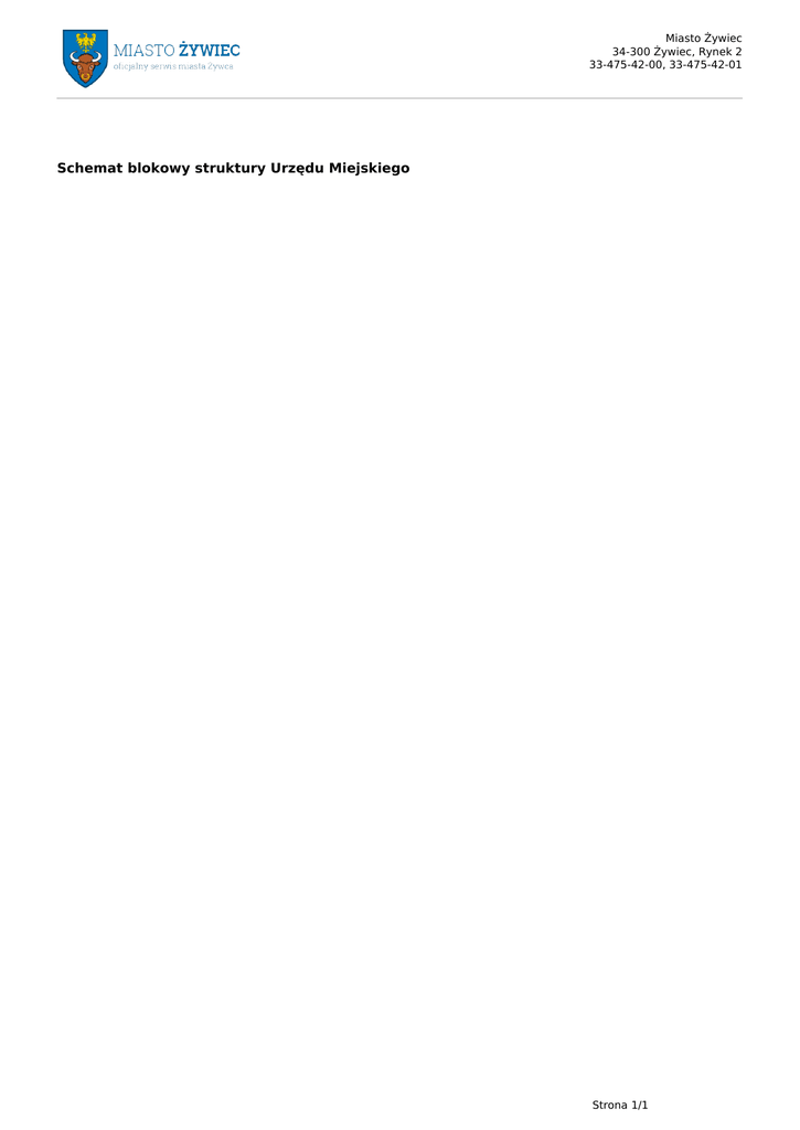 Miasto Żywiec 34-300 Żywiec, Rynek 2 33-475-42-00, 33-475-42-01 Schemat blokowy struktury Urzędu Miejskiego Strona 1/1 Powered by TCPDF (www.tcpdf.org)