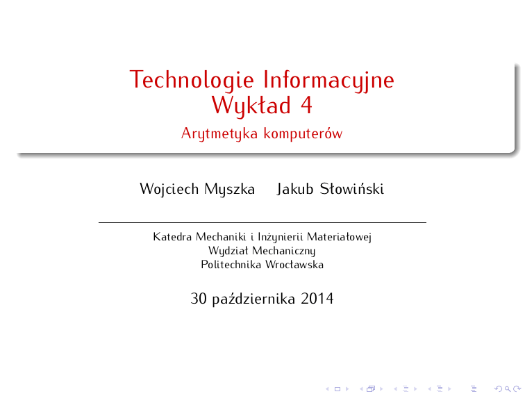Arytmetyka komputerów - Katedra Mechaniki i Inżynierii Materiałowej