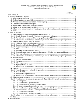 1 MALTA SPIS TREŚCI 1. Informacje ogólne o Malcie