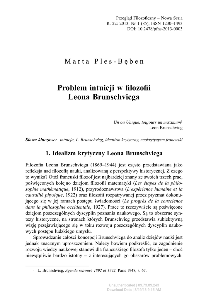 Problem intuicji w filozofii Leona Brunschvicga