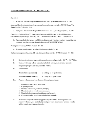 KORTYKOSTERYDOTERAPIA PRENATALNA Zgodnie z: 1