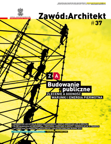 OGÓLNOPOLSKIE CZASOPISMO IZBY ARCHITEKTÓW RP / NAKŁAD KONTROLOWANY 13 000 EGZ. egzemplarz bezpłatny dla członków IARP / ISSN 1898-486X / www.zawod-architekt.pl Zawód:Architekt #37 Budowanie publiczne ZLECENIE A GODNOŚĆ WARUNKI I ENERGIA PIERWOTNA • Vademecum architekta międzynarodowego • NORTH American life is brutal • Od Witruwiusza do Archimena • Zwycięski przetarg a koszty • DEREGULACJA: II TRANSZA • Optymalizacja obiektów medycznych • Architektoniczna Budma 2014 • PROJEKTOWANIE ZRÓWNOWAŻONE . • wARUNKI Techniczne Redakcja TYTUŁEM Z:APROSZENIA Dylemat energii pierwotnej Tym razem nie napiszę o zawartości największej części wydania Z:A, w którym obracamy się wokół tematów związanych ze słowem „publiczne”: zamówienia publiczne, budynki użyteczności publicznej, miejsca publiczne... lecz o kilkunastu stronach, które znajdziecie pod koniec numeru. Trwające kilka ostatnich tygodni rozmowy i konsultacje prowadzone przez redakcję Z:A i Komisję ds. Legislacji IARP z gronem ekspertów specjalizujących się w zagadnieniach energooszczędności, owocują publikacją artykułów oznaczonych czarno-żółtą okrągłą ikoną „WT” (patrz: strona 093). Zanim jednak zaproszę Czytelników Z:A, a w szczególności architektów IARP, do lektury tego materiału, chcę zwrócić uwagę na dwie zasadnicze puenty, dotyczące wprowadzonej nowelizacją konieczności spełnienia dwóch warunków łącznie, a nie alternatywnie. Warunek 1: współczynnik izolacyjności termicznej U. Wydaje się, że weryfikacji współczynnika U nikt się nadmiernie nie obawia. Tutaj problemów raczej nie będzie. Większość producentów uwzględniła zmiany przepisów i proponuje produkty/rozwiązania o odpowiednich parametrach. Architekci z tą częścią Warunków sobie radzili i radzą – sami lub z pomocą konsultantów. Nie oznacza to, że nie będziemy pisać o izolacyjności budynków, lecz ze względów praktycznych w piewszej kolejności zajmujemy się trudniejszym warunkiem numer 2. Warunek 2: wskaźnik nieodnawialnej energii pierwotnej EP. Warunek EP budzi wątpliwości i ta kwestia interesuje nas w tym wydaniu Z:A najbardziej. Wielu ekspertów zwraca uwagę, że dla jego spełnienia niezbędne będzie zintegrowane projektowanie i utworzenie modelu energetycznego budynku już na etapie wczesnej koncepcji projektu architektonicznego. Obawy wywołują jednak: a) niejednoznaczne powiązanie parametrów budynku i elementów budynku, które opracowuje zespół projektantów z uzyskiwanym wynikiem zapotrzebowania na energię pierwotną, b) bardzo rygorystycznie ustalone graniczne wskaźniki EP, w szczególności dla budynków użyteczności publicznej, które (oprócz obiektów opieki zdrowotnej) znalazły się w 1 tylko kategorii, z wymaganą cząstkową wartością EP na potrzeby ogrzewania, wentylacji oraz przygotowania ciepłej wody użytkowej EP H+W = 65 kWh/m2rok. Już w 2012 roku Izba Architektów przedstawiła Ministerstwu swoje stanowisko wraz ze szczegółową analizą problemu. Dzisiaj wracamy do tematu. Może on bowiem oznaczać, że w praktyce – nawet pomimo spełnienia warunków izolacyjności przegród, wdrożenia zintegrowanego projektowania oraz zastosowania wszelkich nowoczesnych technologii i nieodnawialnych źródeł energii – nie uda się zaprojektować, czyli nie uda się uzyskać pozwolenia na budowę, np. szkoły, szpitala, przychodni lekarskiej, obiektu handlowego, pływalni. A nawet domu jednorodzinnego opalanego popularnym ekogroszkiem… Zapraszam do lektury i efektywnego energetycznie poszerzania wiedzy. Sebastian Osowski redaktor naczelny 004 Z:A _#37 Redakcja PZP PUB Zamówienia publiczne Obiekty i miejsca publiczne OgólnopolskiE CZASOPISMO Izby Architektów RP wydawca: Izba Architektów RP ul. Stawki 2A, 00-193 Warszawa tel. (22) 827 85 14, faks (22) 827 62 42 Architektoniczna Budma 2014 064 adres redakcji: Zawód:Architekt ul. Długosza 2-6, 51-162 Wrocław tel. (71) 782 87 80, faks (71) 782 87 81 redaktor naczelny: Sebastian Osowski [email protected] redaktor prowadzący: Bartosz Wokan [email protected] redakcja: Anna Gregorczyk, arch. Wojciech Kujawski (korespondent Ottawa, Kanada), Anna Rumińska, arch. Michał Salamonowicz (korespondent Londyn), arch. Piotr Surmiak, arch. Urszula Szabłowska [email protected] komisja wydawnicza IARP: arch. arch. Alicja Bojarowicz, Marek Czuryło, Piotr Glegoła, Izabela Klimaszewska (przewodnicząca), Krzysztof Ozimek, Urszula Szabłowska projekt graficzny: Oria Media dyrektor artystyczny: Ewa Krzywińska serwis foto: mammamia studio dtp: Wojciech Kasprzak korekta: Bartosz Wokan marketing i reklama: Rafał Banasiak [email protected] tel. kom. 695 02 14 46 Spis treści informacje biznes 008Wydarzenia, informacje, 040 Zwycięski przetarg a koszty nowości rynkowe technika w architektur ze izba architektów 014 Vademecum architekta międzynarodowego doświadczenia zawodowe 018 North American life is brutal. druk: CGS 026 Dostać zlecenie i zachować Jesteś tu tylko architektem... godność 030 Uprawnienia a przynależność. Moje 3 grosze w przyziemnych sprawach Redakcja zastrzega sobie prawo do dokonywania w nadsyłanych materiałach skrótów, adjustacji i niepublikowania tych materiałów bez podania przyczyn. Nie zwracamy materiałów niezamówionych. Wszystkie publikowane artykuły objęte są prawem autorskim. Przedruk i udostępnianie materiałów zamieszczanych na łamach pisma wyłącznie po uzyskaniu pisemnej zgody redakcji. felieton Copyright © Izba Architektów RP, Warszawa 2014 032 Od Witruwiusza do Archimena Redakcja nie odpowiada za treść reklam i ogłoszeń. www.zawod-architekt.pl www.izbaarchitektow.pl Nakład 13.000 egzemplarzy Czasopismo bezpłatne dla członków IARP ISSN 1898-486X Numer rejestru 908 Wydanie: Z:A_#37, marzec-kwiecień 2014 Projekt okładki: Oria Media z wykorzystaniem fotografii © iStock.com/mmac72 006 Z:A _#37 obiektów medycznych 054 Akustyka r