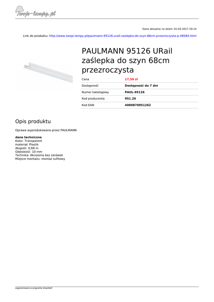 PAULMANN 95126 URail zaślepka do szyn 68cm - Twoje