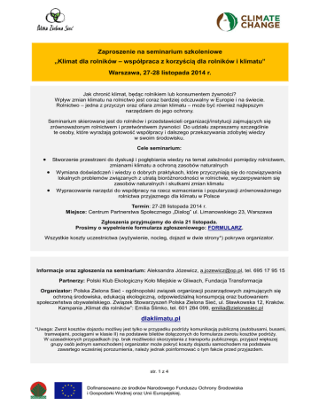 Zaproszenie na seminarium szkoleniowe „Klimat dla rolników