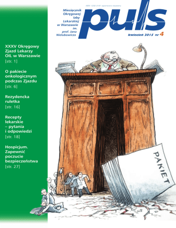 ISSN 1232-0161 egzemplarz bezp³atny Miesiêcznik Okrêgowej Izby Lekarskiej w Warszawie im. prof. Jana Nielubowicza XXXV Okrêgowy Zjazd Lekarzy OIL w Warszawie [str. 1] O pakiecie onkologicznym podczas Zjazdu [str. 6] Rezydencka ruletka [str. 16] Recepty lekarskie pytania i odpowiedzi [str. 18] Hospicjum. Zapewniæ poczucie bezpieczeñstwa [str. 27] kwiecieñ 2015 nr 4 XXXV OKRÊGOWY ZJAZD LEKARZY OIL W WARSZAWIE Obradowa³ Zjazd Trwaj¹ prace nad uruchomieniem nowej strony internetowej Izby. Zaawansowane s¹ prace nad wdro¿eniem systemu zarz¹dzania jakoci¹, w celu uzyskania certyfikatu ISO 9001, który pozwoli usprawniæ dzia³anie administracji, wprowadziæ nowe procedury i sprawi, ¿e obs³uga cz³onków Izby bêdzie jeszcze bardziej przyjazna i profesjonalna. Pierwsze dowiadczenia wskazuj¹, ¿e podjêcie tej inicjatywy by³o jak najbardziej trafne i celowe powiedzia³ kol. Andrzej Sawoni. W maju 2014 r. zainicjowano udzielanie nieodp³atnej pomocy prawnej cz³onkom Izby przez kancelariê Dittmajer i Wspólnicy Sp.k. Jej prawnicy udzielili 945 porad, lekarze telefonowali ze swoimi problemami 2100 razy, czêsto w godzinach wieczornych, a nawet nocnych, gdy na dy¿urach pojawiaj¹ siê trudne problemy prawne. W siedzibie OIL dzia³a Klub Lekarza, w którym spotykaj¹ siê m.in. maluj¹cy amatorsko lekarze i lekarze dentyci, æwiczy chór OIL Medicantus, który zaprezentowa³ siê na pocz¹tku Zjazdu, piewaj¹c Gaude Mater Polonia. Czynnoci statutowe: wys³uchanie sprawozdañ w³adz OIL, udzielenie absolutorium za 2014 r., Pakiet onkologiczny w praktyce oraz kwestia ubezpieczenia OC lekarzy i lekarzy dentystów to najwa¿niejsze zagadnienia poruszane w dyskusji na XXXV Okrêgowym Zjedzie Lekarzy OIL w Warszawie, który odby³ siê 28 marca 2015 r. P onadto delegaci, po wys³uchaniu sprawozdañ prezesa ORL kol. Andrzeja Sawoniego i pozosta³ych w³adz statutowych: Okrêgowego Rzecznika Odpowiedzialnoci Zawodowej, Okrêgowego S¹du Lekarskiego, Komisji Rewizyjnej, oraz sprawozdania finansowego za 2014 r., przyjêli uchwa³y zatwierdzaj¹ce je, a tak¿e preliminarz bud¿etowy na 2015 r. Na przewodnicz¹cego Zjazdu wybrano kol. Konstantego Radziwi³³a. W Zjedzie uczestniczy³o 114 osób (52 proc. wybranych delegatów). Dorobek 2014 r. W szczegó³owym sprawozdaniu Okrêgowej Rady Lekarskiej znalaz³y siê dane dotycz¹ce m.in. liczby posiedzeñ Rady, Prezydium oraz poszczególnych jej komisji i podjêtych uchwa³. Prezes przypomnia³, ¿e w minionym roku zakoñczy³ siê remont budynku Delegatury Radomskiej, która pracuje obecnie w piêknych wnêtrzach zabytkowej kamienicy w centrum miasta. W listopadzie Orodek Doskonalenia Zawodowego, dzia³aj¹cy do tej pory przy ul. Nowogrodzkiej w Warszawie, zosta³ przeniesiony do g³ównej siedziby Izby przy ul. Pu³awskiej. www.miesiecznik-puls.org.pl nr 4/2015 (240) kwiecieñ 2015 W kwietniu 2014 r. Izba rozpoczê³a wspó³pracê z Odesk¹ Krajow¹ Organizacj¹ Wszechukraiñskiego Towarzystwa Lekarskiego, której celem jest wymiana dowiadczeñ w zakresie organizacji ochrony zdrowia, wspó³praca w dziedzinie nauki i pomocy socjalnej. W najbli¿szym czasie przyjedzie do Warszawy szeciu ukraiñskich lekarzy, aby poznaæ tryb pracy samorz¹du. Przedstawiciele Izby uczestniczyli w obchodach 20-lecia Polskiego Towarzystwa Lekarskiego na Grodzieñszczynie. 8 listopada odby³a siê uroczystoæ z okazji 25-lecia dzia³alnoci odrodzonego samorz¹du lekarskiego w Warszawie, po³¹czona z wrêczeniem praw wykonywania zawodu m³odym lekarzom i lekarzom dentystom. Samorz¹d zorganizowa³ w Warszawie i Radomiu akcjê protestacyjn¹ pod has³em Zapytaj marsza³ka Struzika, która mia³a zwróciæ uwagê mieszkañców na z³y stan opieki zdrowotnej nad pacjentami i zachêcenie obywateli do korzystania z prawa do informacji przez bezporedni kontakt z odpowiedzialnymi za organizacjê s³u¿by zdrowia. Serdecznie dziêkujê cz³onkom Okrêgowej Rady Lekarskiej za rok wspólnego dzia³ania. Wypracowalimy dobre formy wspó³pracy. Najbardziej cieszy mnie zaanga¿owanie kolegów w pracê samorz¹du, bo to dobrze rokuje na przysz³oæ naszej organizacji zakoñczy³ swoje wyst¹pienie prezes Andrzej Sawoni. W zwi¹zku ze zmianami organizacyjnymi w biurze Izby likwidacji uleg³o Biuro Prawne Izby. Zjazd podziêkowa³ radcom prawnym dot¹d w nim pracuj¹cym: El¿biecie Barcikowskiej, Paw³owi Jannaszowi i Bartoszowi Niemcowi. Obs³ugê prawn¹ powierzono kancelarii prawnej na zewn¹trz Izby. Okrêgowa Izba Lekarska zmieni³a obs³uguj¹cy j¹ bank. Obecnie wspó³pracuje z Bankiem Spó³dzielczym w Ostrowi Mazowieckiej, który zaoferowa³ lepsze warunki ni¿ poprzedni. Delegaci wys³uchali sprawozdania Okrêgowego Rzecznika Odpowiedzialnoci Zawodowej z dzia³alnoci w roku 2014. Kol. Zbigniew Czernicki poinformowa³, ¿e w tym okresie Cd. wp³ynê³o 418 nowych skarg wymagaj¹cych podjêcia czyn- na noci sprawdzaj¹cych. To oko³o 13 proc. wiêcej ni¿ w roku str. 3 2013. W 2014 r. rozpatrywano ³¹cznie 584 sprawy (w tym 166 z okresu poprzedniego). u 1 NA MARGINESIE Pomnik g³upoty Ewa Gwiazdowicz-W³odarczyk, redaktor naczelna K ilka tygodni temu Polacy dowiedzieli siê od samej premier Ewy Kopacz, ¿e tzw. pakiet onkologiczny zostanie wstêpnie oceniony na pocz¹tku kwietnia br. Zaraz potem Ministerstwo Zdrowia ustami swoich przedstawicieli poinformowa³o, ¿e owszem w kwietniu, ale dopiero w po³owie miesi¹ca. Poniewa¿ trwa kampania prezydencka i prominentni przedstawiciele rz¹dz¹cej PO (wspó³rz¹dz¹ce PSL odcina siê wyranie od tego tematu) zachwalaj¹ swoje dokonania i m.in. zachwalaj¹ korzyci, jakie niesie ze sob¹ wspomniany wy¿ej pakiet, nie czekaj¹c na jego oficjaln¹ ocenê. Nr 4 (240) kwiecieñ 2015 Na ok³adce: w w w. m i e s i e c z n i k - p u l s . o r g . p l Rysunek autorstwa Krzysztofa Rosieckiego W numerze m.in.: XXXV Okrêgowy Zjazd Lekarzy OIL w Warszawie 1 biuletyn ORL 6 O pakiecie onkologicznym... 7 sk³adki samorz¹dowe 10 Kasy fiska