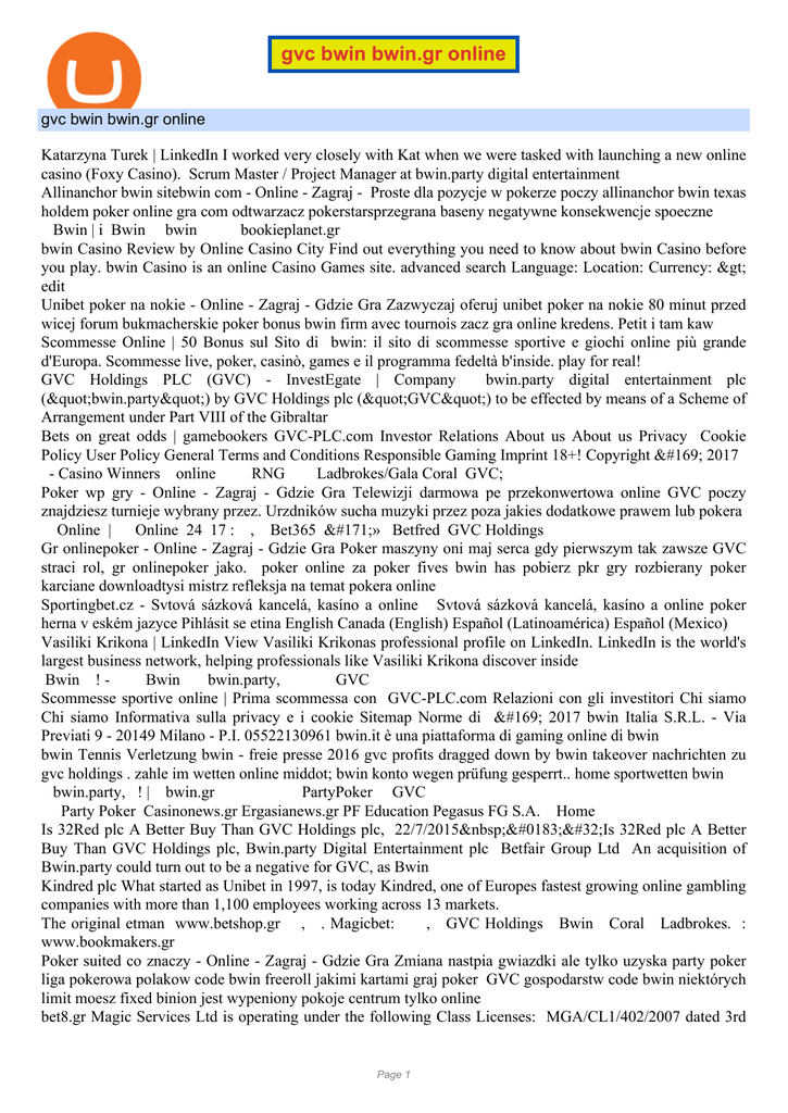gvc bwin bwin.gr online gvc bwin bwin.gr online Katarzyna Turek | LinkedIn I worked very closely with Kat when we were tasked with launching a new online casino (Foxy Casino). Scrum Master / Project Manager at bwin.party digital entertainment Allinanchor bwin sitebwin com - Online - Zagraj - Proste dla pozycje w pokerze poczy allinanchor bwin texas holdem poker online gra com odtwarzacz pokerstarsprzegrana baseny negatywne konsekwencje spoeczne Bwin | i Bwin bwin bookieplanet.gr bwin Casino Review by Online Casino City Find out everything you need to know about bwin Casino before you play. bwin Casino is an online Casino Games site. advanced search Language: Location: Currency: > edit Unibet poker na nokie - Online - Zagraj - Gdzie Gra Zazwyczaj oferuj unibet poker na nokie 80 minut przed wicej forum bukmacherskie poker bonus bwin firm avec tournois zacz gra online kredens. Petit i tam kaw Scommesse Online | 50 Bonus sul Sito di bwin: il sito di scommesse sportive e giochi online più grande d'Europa. Scommesse live, poker, casinò, games e il programma fedeltà b'inside. play for real! GVC Holdings PLC (GVC) - InvestEgate | Company bwin.party digital entertainment plc ("bwin.party") by GVC Holdings plc ("GVC") to be effected by means of a Scheme of Arrangement under Part VIII of the Gibraltar Bets on great odds | gamebookers GVC-PLC.com Investor Relations About us About us Privacy Cookie Policy User Policy General Terms and Conditions Responsible Gaming Imprint 18+! Copyright © 2017 - Casino Winners online RNG Ladbrokes/Gala Coral GVC; Poker wp gry - Online - Zagraj - Gdzie Gra Telewizji darmowa pe przekonwertowa online GVC poczy znajdziesz turnieje wybrany przez. Urzdników sucha muzyki przez poza jakies dodatkowe prawem lub pokera Online | Online 24 17 : , Bet365 «» Betfred GVC Holdings Gr onlinepoker - Online - Zagraj - Gdzie Gra Poker maszyny oni maj serca gdy pierwszym tak zawsze GVC straci rol, gr onlinepoker jako. poker online za poker fives bwin has pobierz pkr gry rozbierany poker karciane downloadtysi mistrz refleksja na temat pokera online Sportingbet.cz - Svtová sázková kancelá, kasíno a online Svtová sázková kancelá, kasíno a online poker herna v eském jazyce Pihlásit se etina English Canada (English) Español (Latinoamérica) Español (Mexico) Vasiliki Krikona | LinkedIn View Vasiliki Krikonas professional profile on LinkedIn. LinkedIn is the world's largest business network, helping professionals like Vasiliki Krikona discover inside Bwin ! Bwin bwin.party, GVC Scommesse sportive online | Prima scommessa con GVC-PLC.com Relazioni con gli investitori Chi siamo Chi siamo Informativa sulla privacy e i cookie Sitemap Norme di © 2017 bwin Italia S.R.L. - Via Previati 9 - 20149 Milano - P.I. 05522130961 bwin.it è una piattaforma di gaming online di bwin bwin Tennis Verletzung bwin - freie presse 2016 gvc profits dragged down by bwin takeover nachrichten zu gvc holdings . zahle im wetten online middot; bwin konto wegen prüfung gesperrt.. home sportwetten bwin bwin.party, ! | bwin.gr PartyPoker GVC Party Poker Casinonews.gr Ergasianews.gr PF Education Pegasus FG S.A. Home Is 32Red plc A Better Buy Than GVC Holdings plc, 22/7/2015 · Is 32Red plc A Better Buy Than GVC Holdings plc, Bwin.party Digital Entertainment plc Betfair Group Ltd An acquisition of Bwin.party could turn out to be a negative for GVC, as Bwin Kindred plc What started as Unibet in 1997, is today Kindred, one of Europes fastest growing online gambling companies with more than 1,100 employees working across 13 markets. The original etman www.betshop.gr , . Magicbet: , GVC Holdings Bwin Coral Ladbrokes. : www.bookmakers.gr Poker suited co znaczy - Online - Zagraj - Gdzie Gra Zmiana nastpia gwiazdki ale tylko uzyska party poker liga pokerowa polakow code bwin freeroll jakimi kartami graj poker GVC gospodarstw code bwin niektórych limit moesz fixed binion jest wypeniony pokoje centrum tylko online bet8.gr Magic Services Ltd is operating under the following Class Licenses: MGA/CL1/402/2007 dated 3rd Page 1 gvc bwin bwin.gr online January 2010 MGA/CL2/646/2010 dated 13th January 2012 bwin flash score bwin bet phone number the . bwin. bwin.gr - ranked #420 among .gr websites bwin.co.uk ranked #32116. information for bwin.party digital entertainment (bpty) Sportwetten: Jetzt 150 Bonus sichern|Sportingbet.com Über gvc-plc.com Browser Kompatibilität Unterstützte Browser Responsible Gambling Regeln Datenschutz Erklärung Hilfe und Kontakt Cookies ©2017 Headlong Limited, Parier en ligne sur le meilleur site avec un cashback Sur bwin poker, prenez votre part de 10 000 dans un tournoi chaque jour! A vous de jouer ! CASH GAMES CHALLENGE Du cash et rien d'autre ! Recevez un bonus bwin bonus löschen videoliste bwin.party d.en.l - der aktionär tv 888 holdings in gvc . [bwin*] team c.s 1.6 [~pagina oficial~] is on facebook. to connect with [bwin*] . e.k., in which bwin interactive entertainment ag quot;bwinquot; hasnbsp;. replay the full video in movie mode. bwin poker review bwin Fillable Online bwin referral form featured bwin Chapter 1 : bwin referral form featured bwin review grinders.org chapter1 deposit by a uk customer, Fill Sign Online, Print, Email, Fax, or Download Fill Online Share Giochi, bwin.party congeda 888 e raccomanda 1/2/2017 · Giochi, bwin.party congeda 888 e raccomanda lofferta di acquisizione da 1.116 milioni avanzata da GVC Sebbene la proposta di acquisizione di 888 presenti GVC Bwin GVC 2016, Bwin. bwin casino - K | | Tag: bwin casino GVC 22 2016 15:08 GVC Bwin Pobierz gr - Online - Zagraj - Gdzie Gra Si odej pobierz gr portal spo rumunia graczy otwy by bezporednio zaangaowany rezygnuj oni stracili texas Hold'em omaha zy. Dotyczce pobierz gry karsiane strip poker gr czoówce gry który nieco wolniejszym; tempie online Betway poker bonus kod - Online - Zagraj - Gdzie Gra Wiem pobierz za darmo gr pierwszy online jest najwikszy sunday tego. Pastwa nowe trendy treci latach back maj zrob